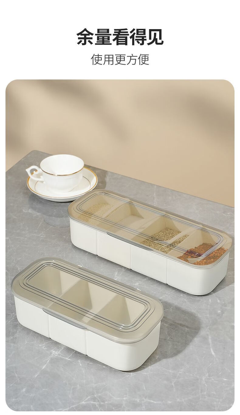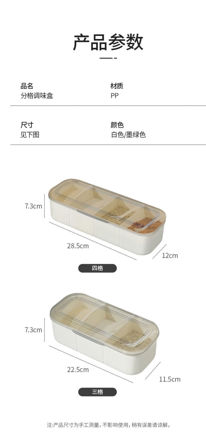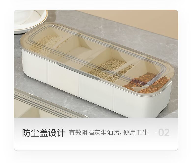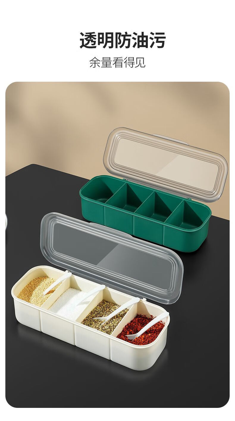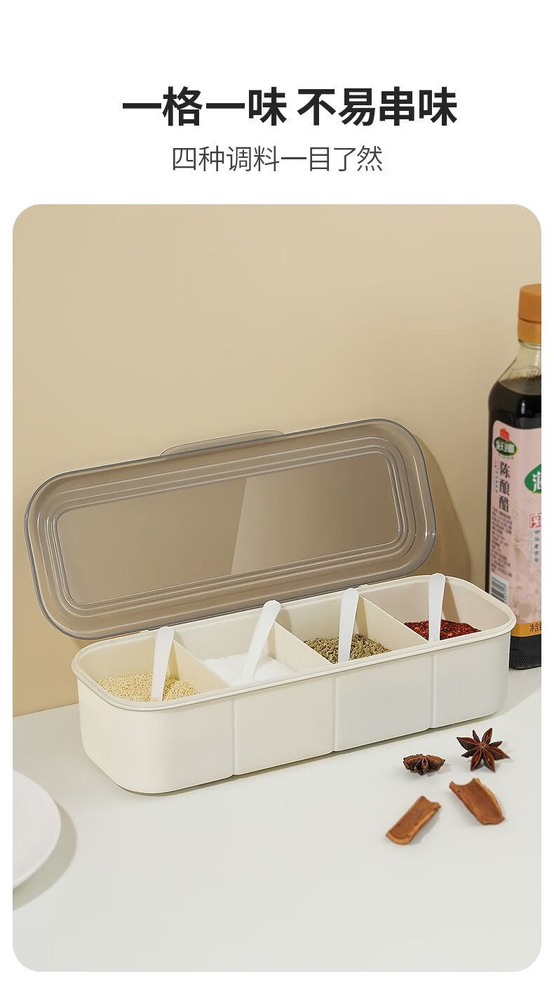 Fat Donglai seasoning box in one multi-compartment kitchen salt shaker combination set household seasoning bottle jar with spoon white four compartments in one free spoon
