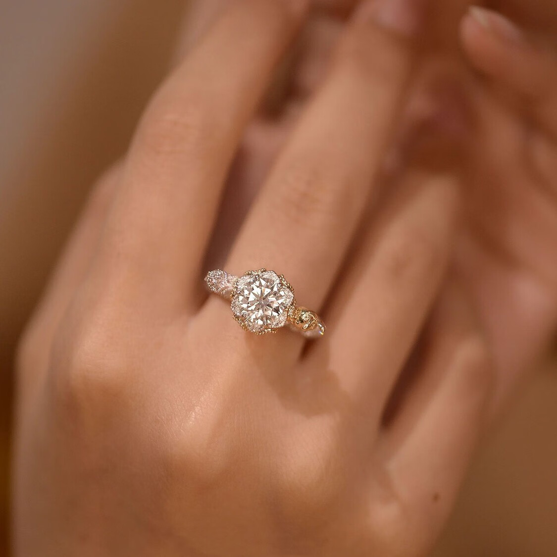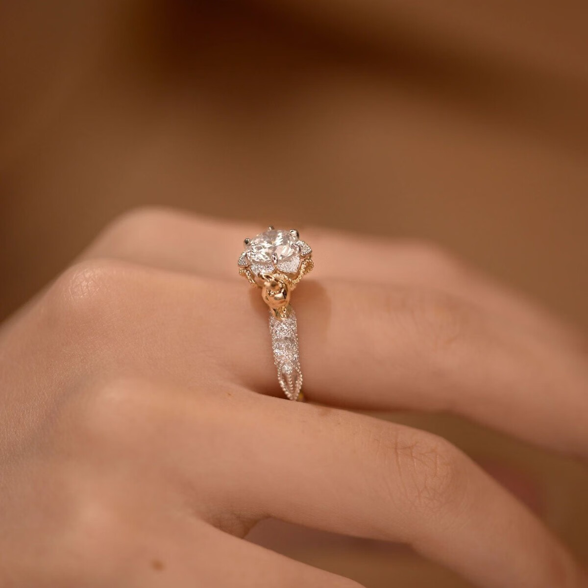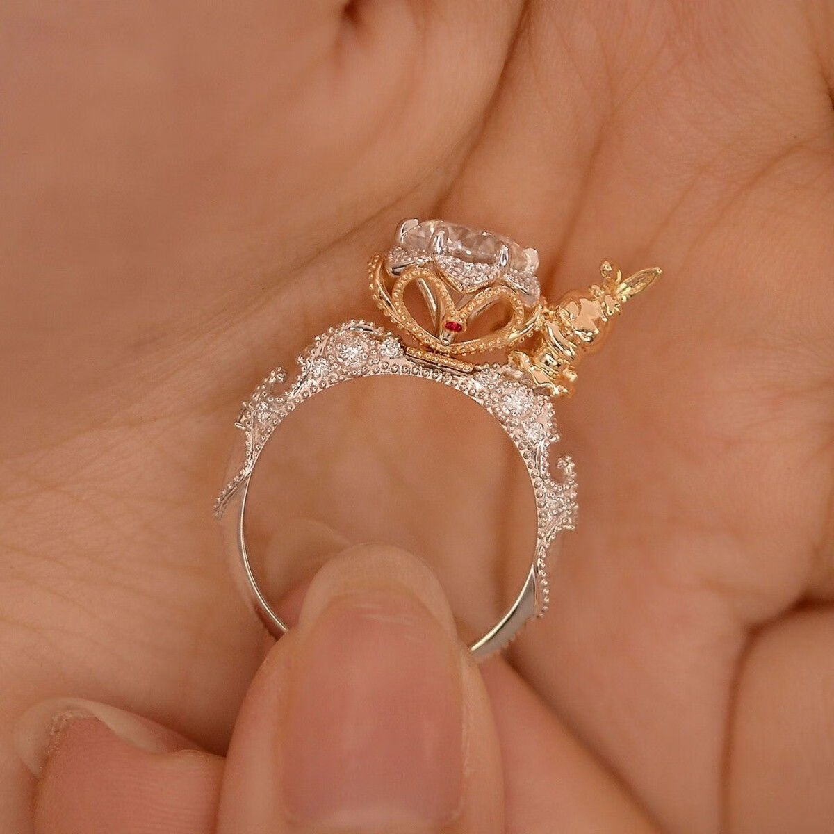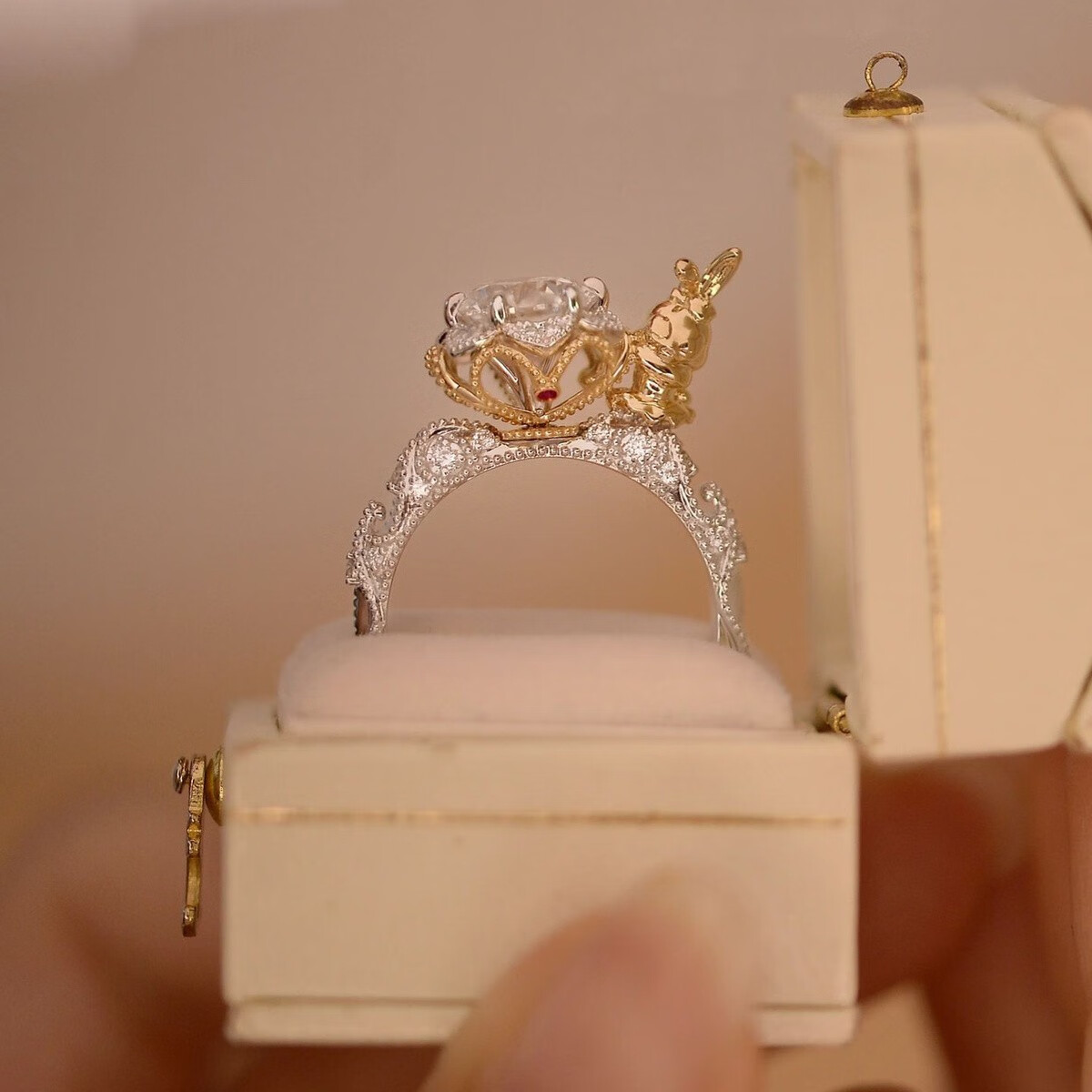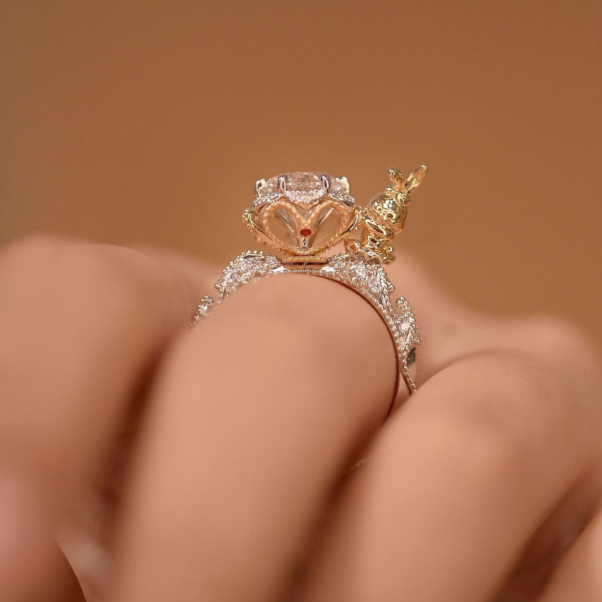 QUAMER rose rabbit inlaid moissanite ring refers to feminine and good-looking hand jewelry, niche and versatile couple Mo rose rabbit ring