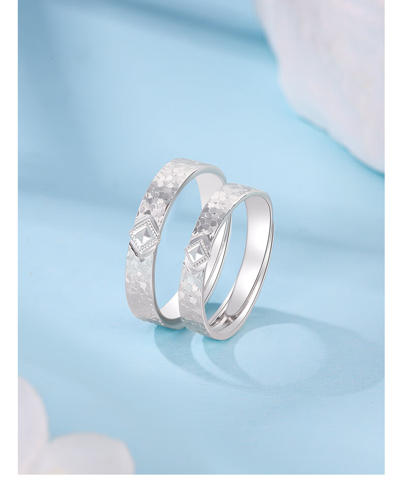 Chow Tai Sang platinum ring PT950 crushed ice pair of rings for men and women, a flash gift for girlfriend and wife as a birthday commemorative gift, crushed ice ring for women, about 3.8g