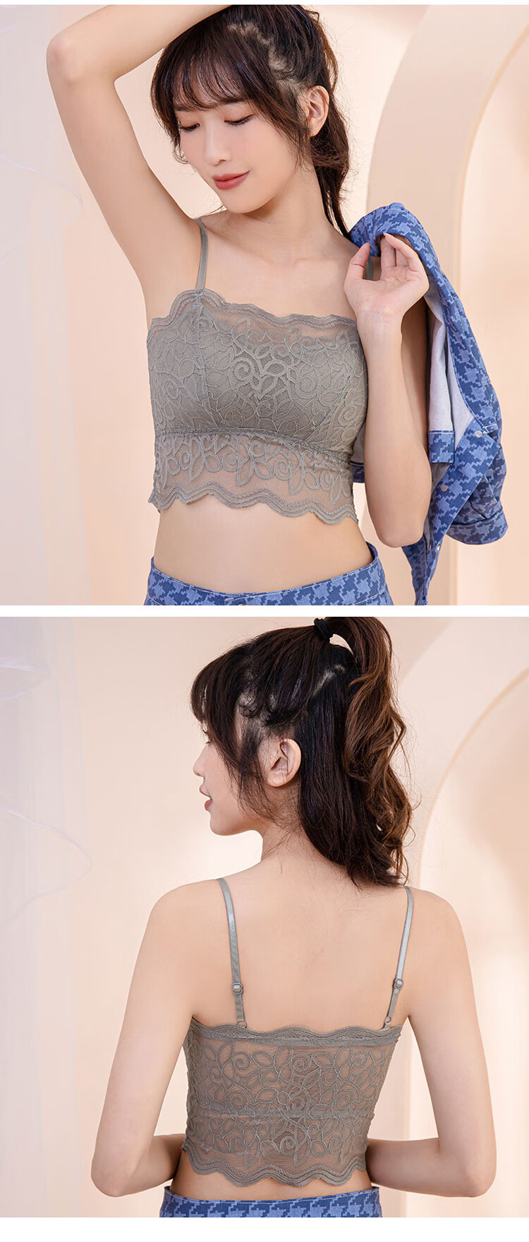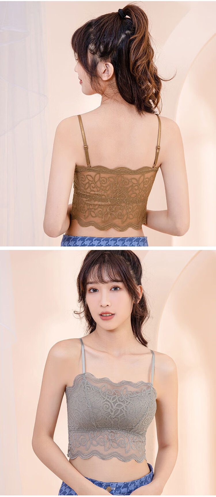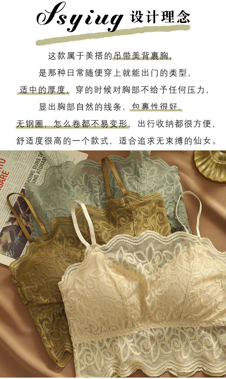 ZOCI beautiful back underwear women's anti-exposure with padded lace tube top gathered chest camisole women's thin sexy underwear black one size (80---115Jin Jin equals 0.5 kg)