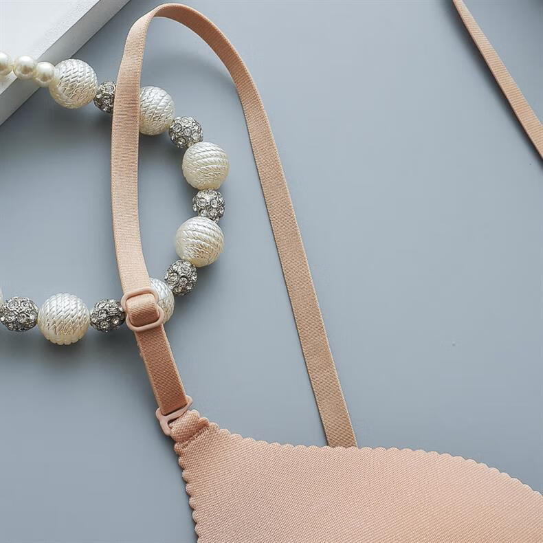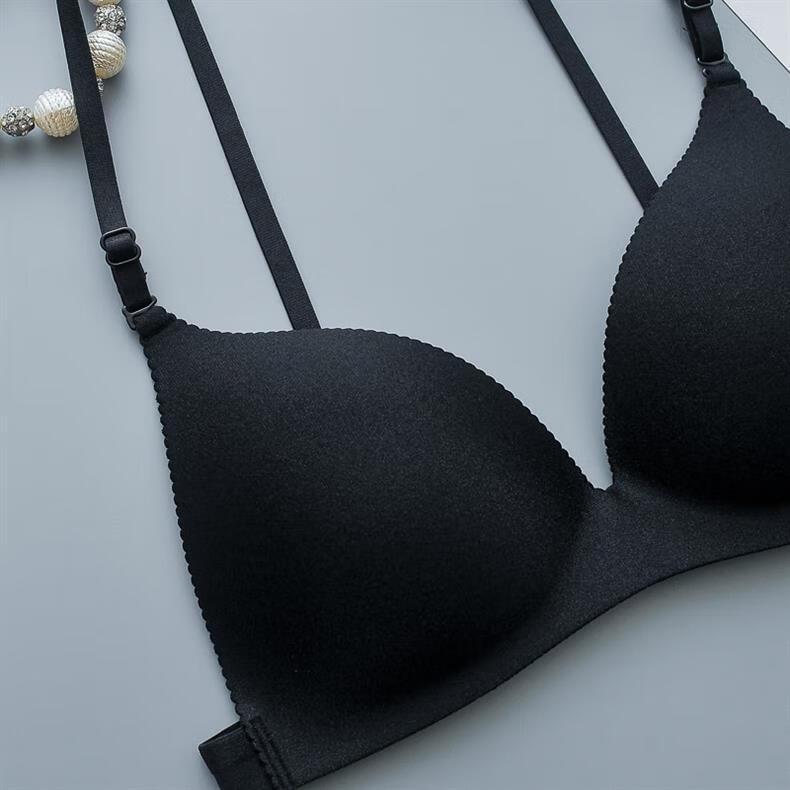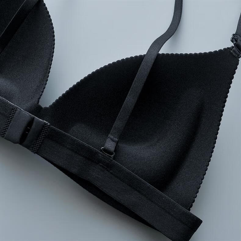 ZOCI Japanese beautiful back bra for women, thin push-up top, seamless anti-exposure straps, sexy triangle cup bra, no rims, black, one size fits all