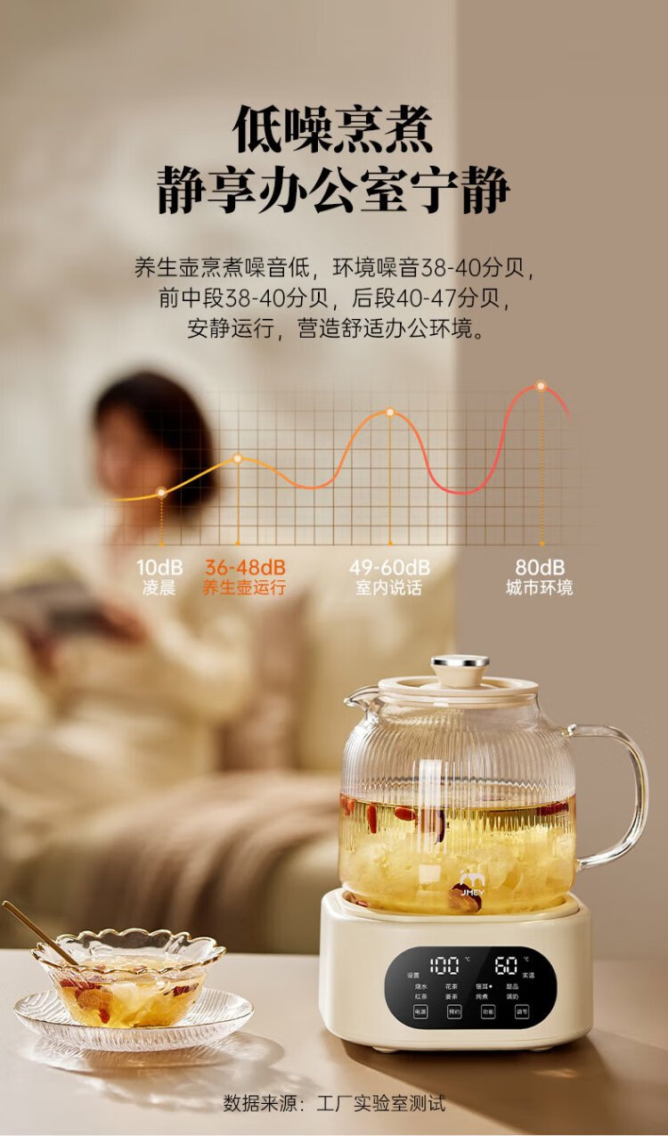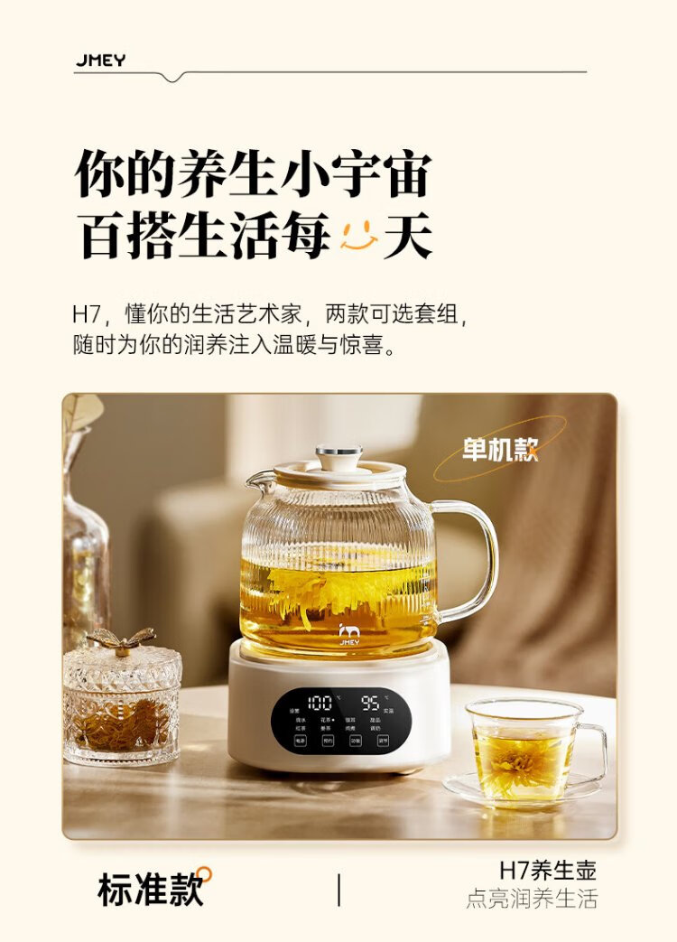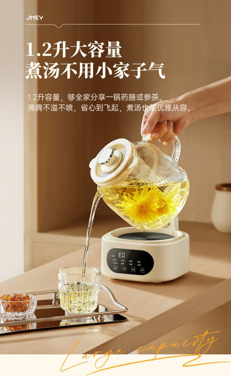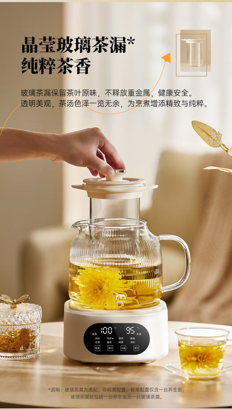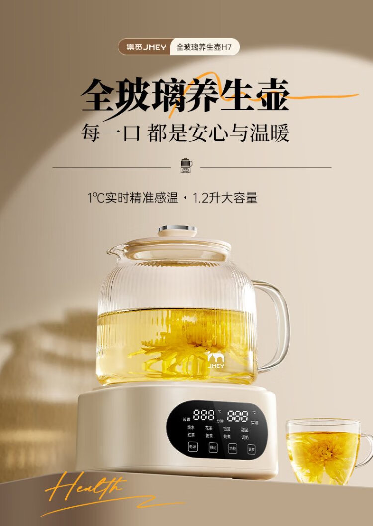 JMEY set all-glass health kettle, large-capacity thermostatic kettle, electric kettle, teapot, kettle, floral teapot, integrated teapot, multi-functional insulation, office, one person, H7 glass tea leakage - 1.2L