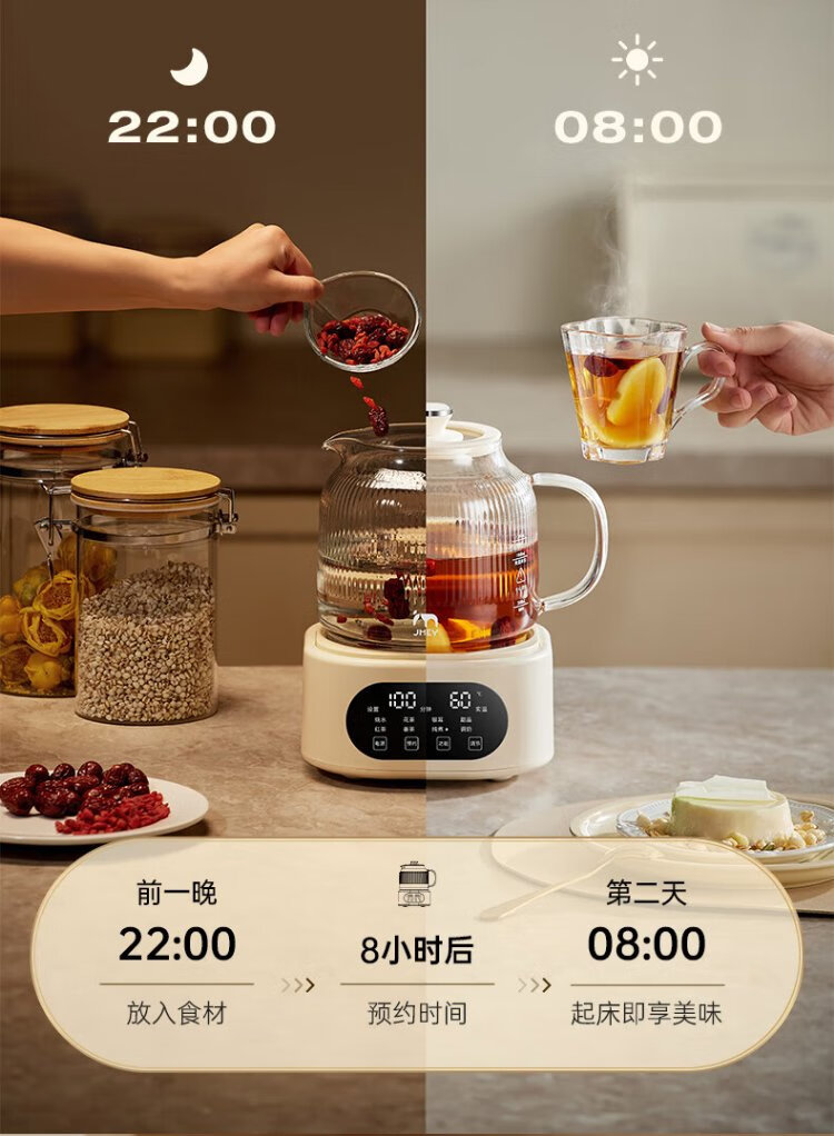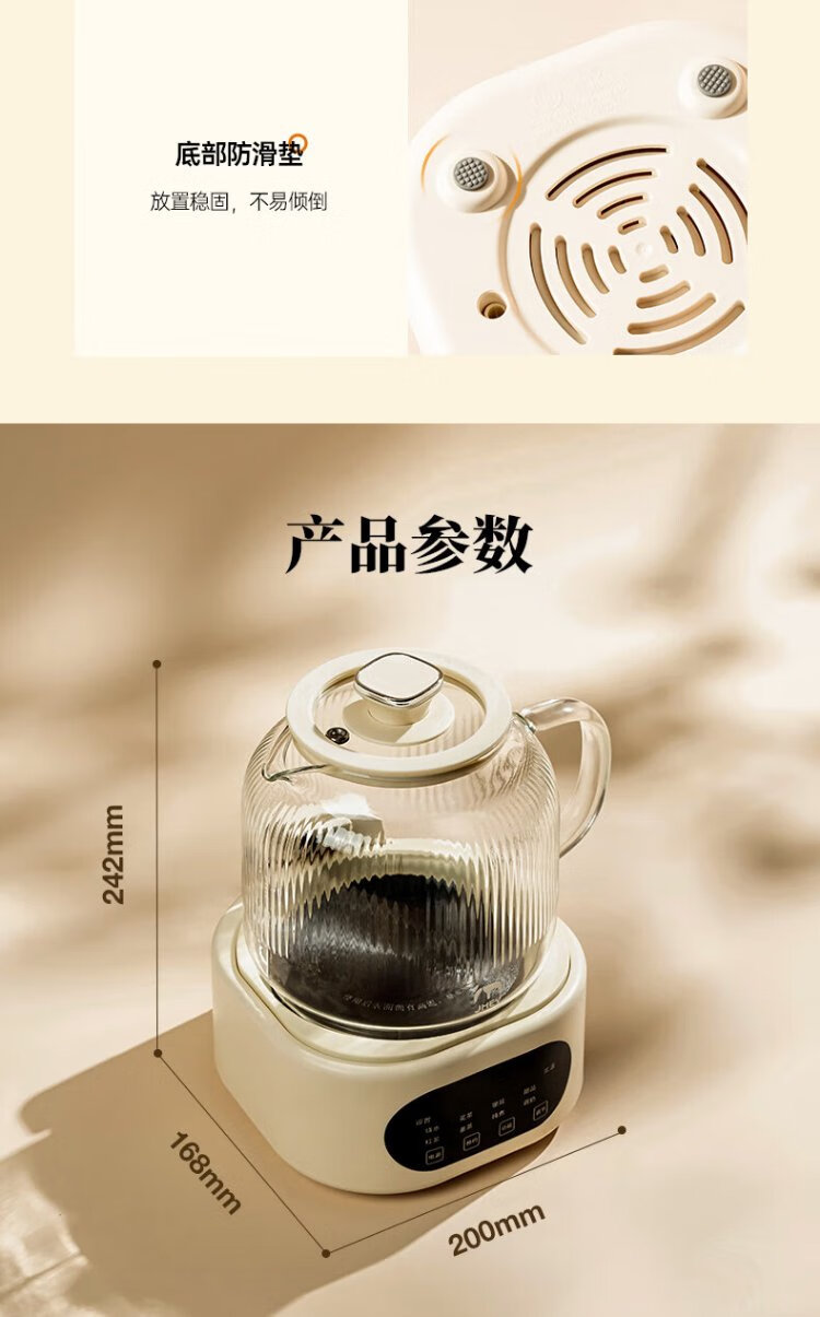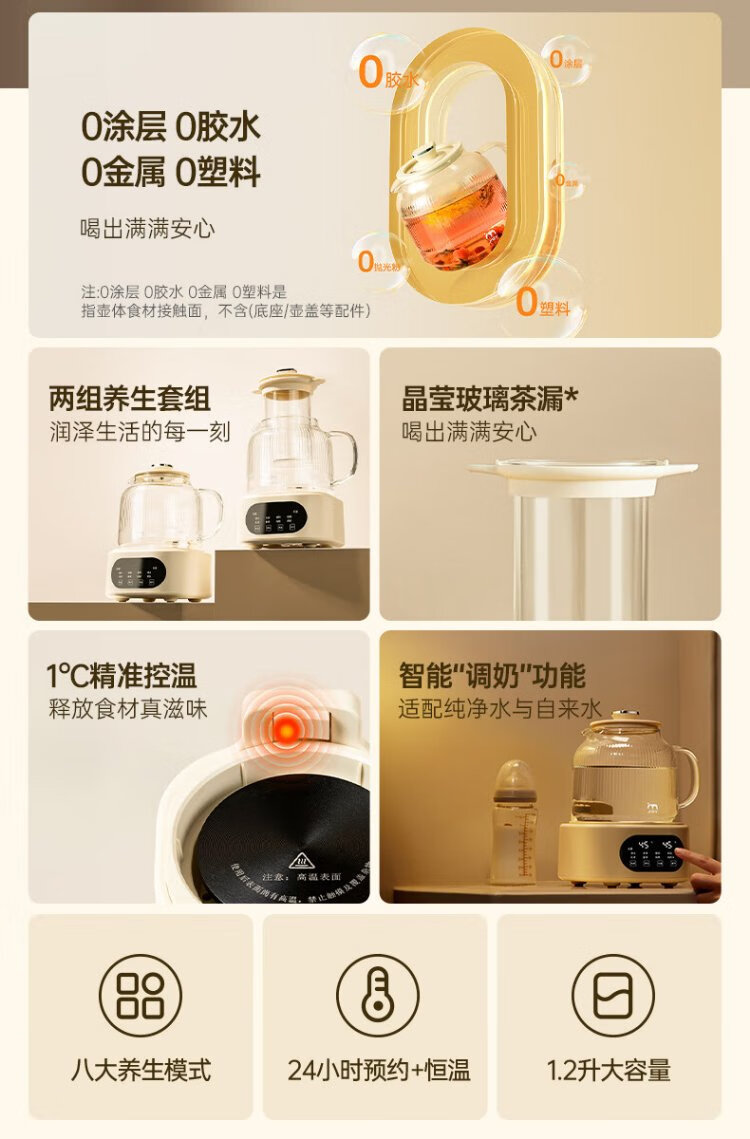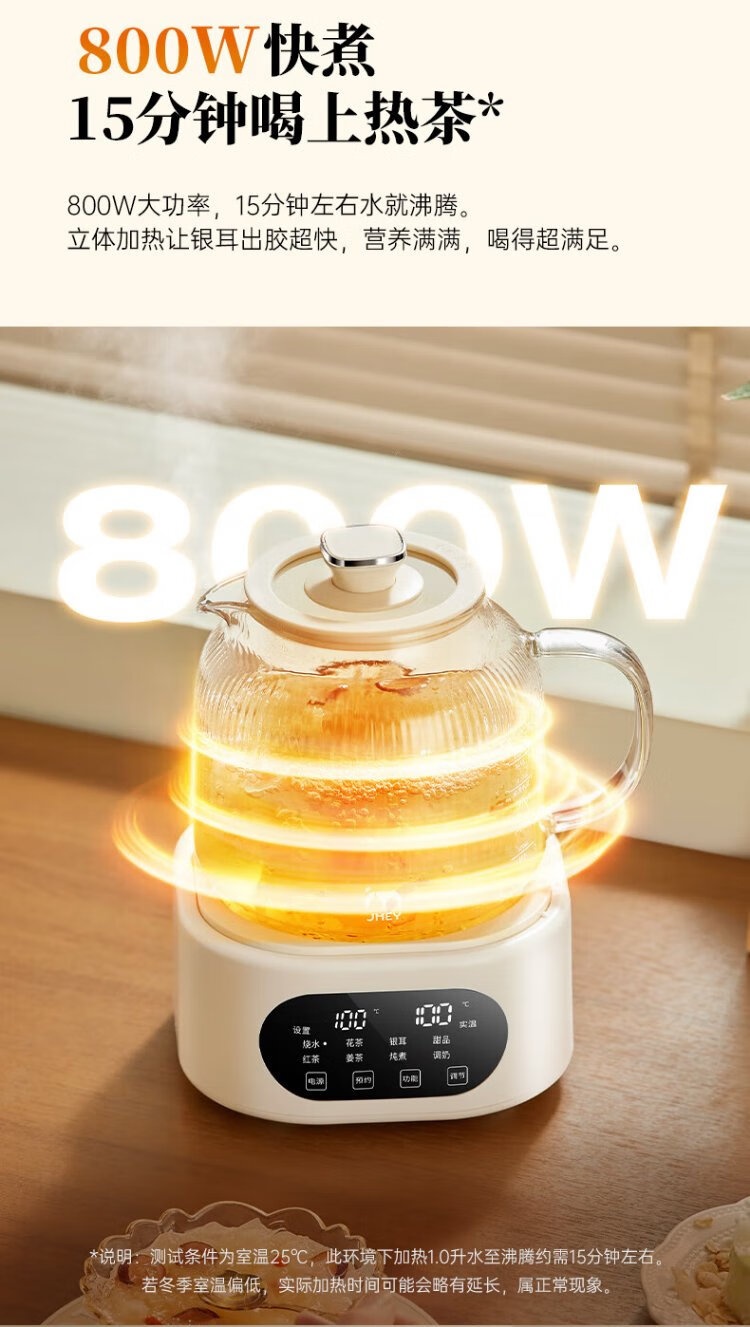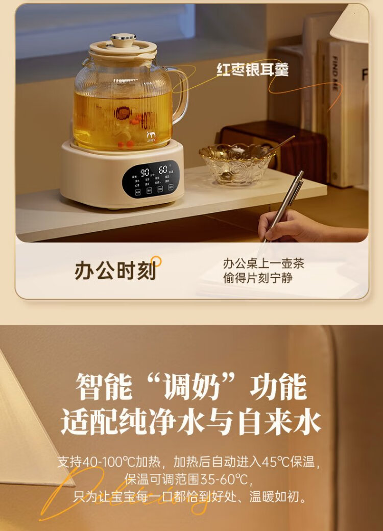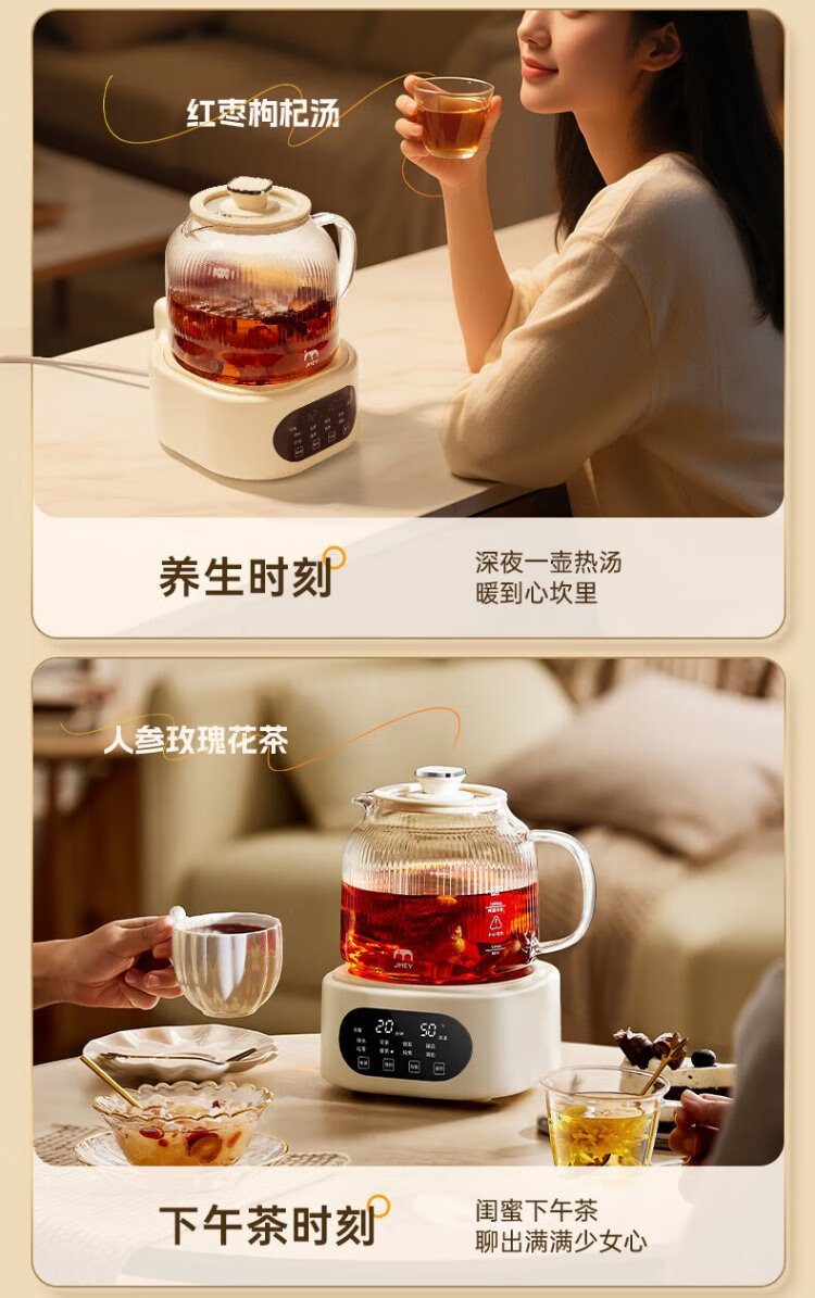 JMEY set all-glass health kettle, large-capacity thermostatic kettle, electric kettle, teapot, kettle, floral teapot, integrated teapot, multi-functional insulation, office, one person, H7 glass tea leakage - 1.2L