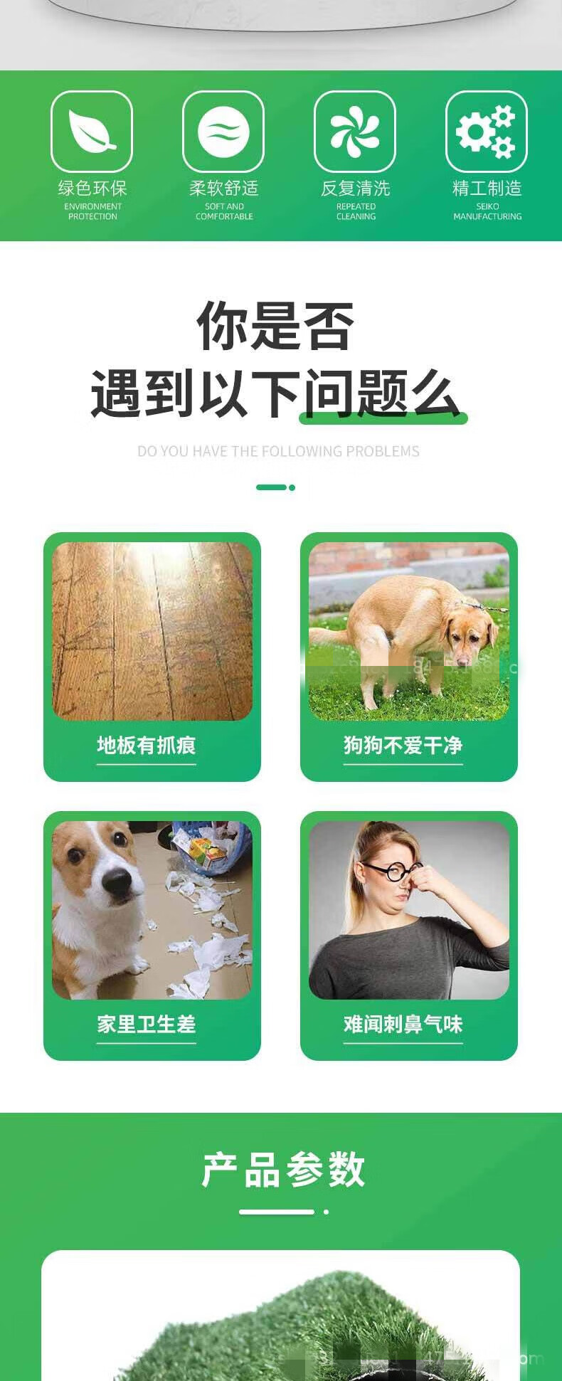 Fake lawn dog toilet lawn mat pet peeing fake turf washable artificial turf mat pet peeing pad 60cm*100cm (white background 2cm tall grass) 1 piece