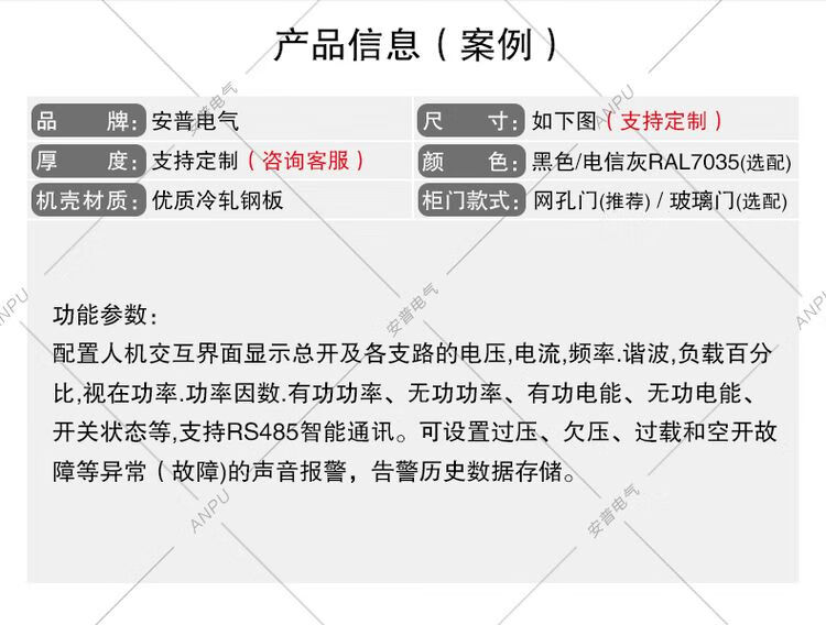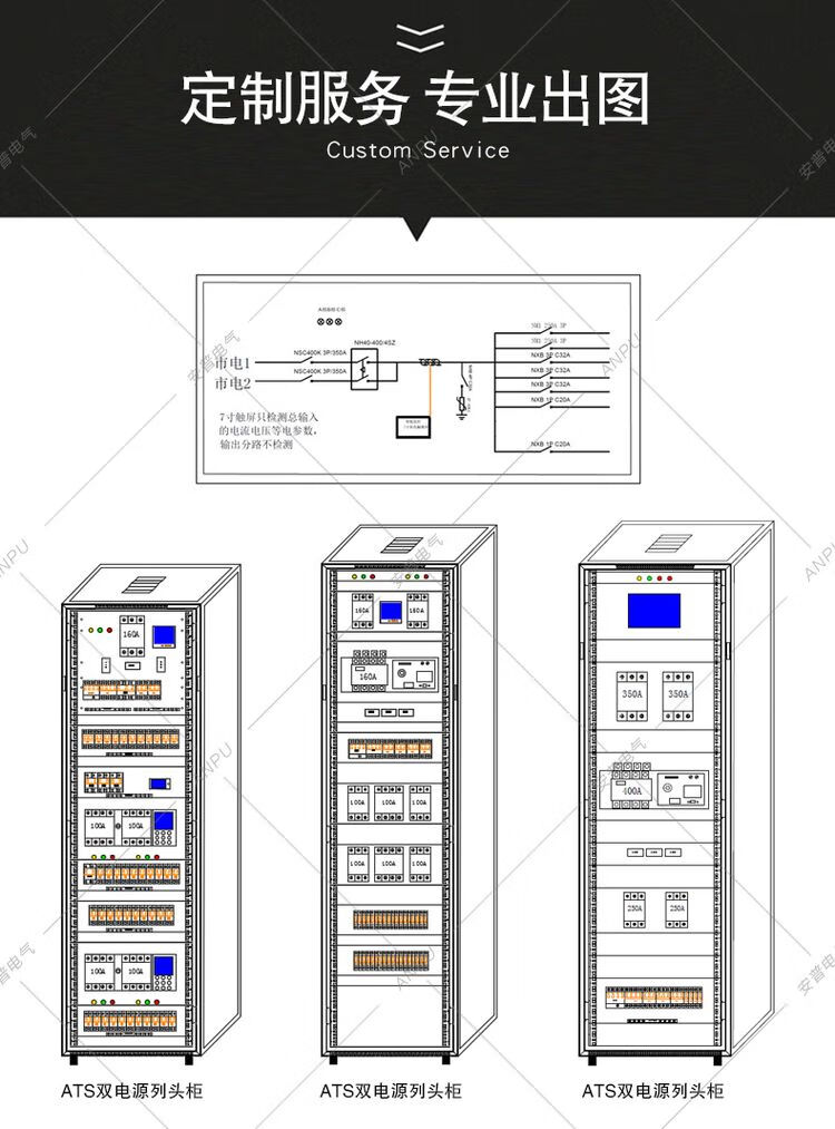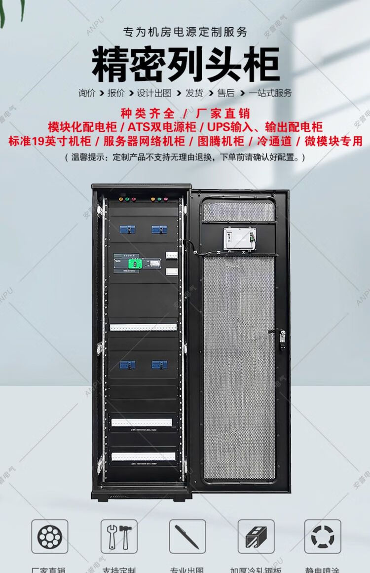 Column head cabinet ats dual power supply intelligent precision power distribution cabinet machine room UPS input and output cabinet rack top open power box black column head cabinet UPS mains