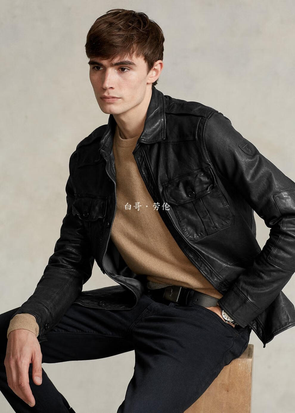 Polo Ralph Lauren Spot Retro Sheepskin Leather Shirt Jacket Men's Polo Ralph Lauren/Ralph Lauren Spot YD057 M