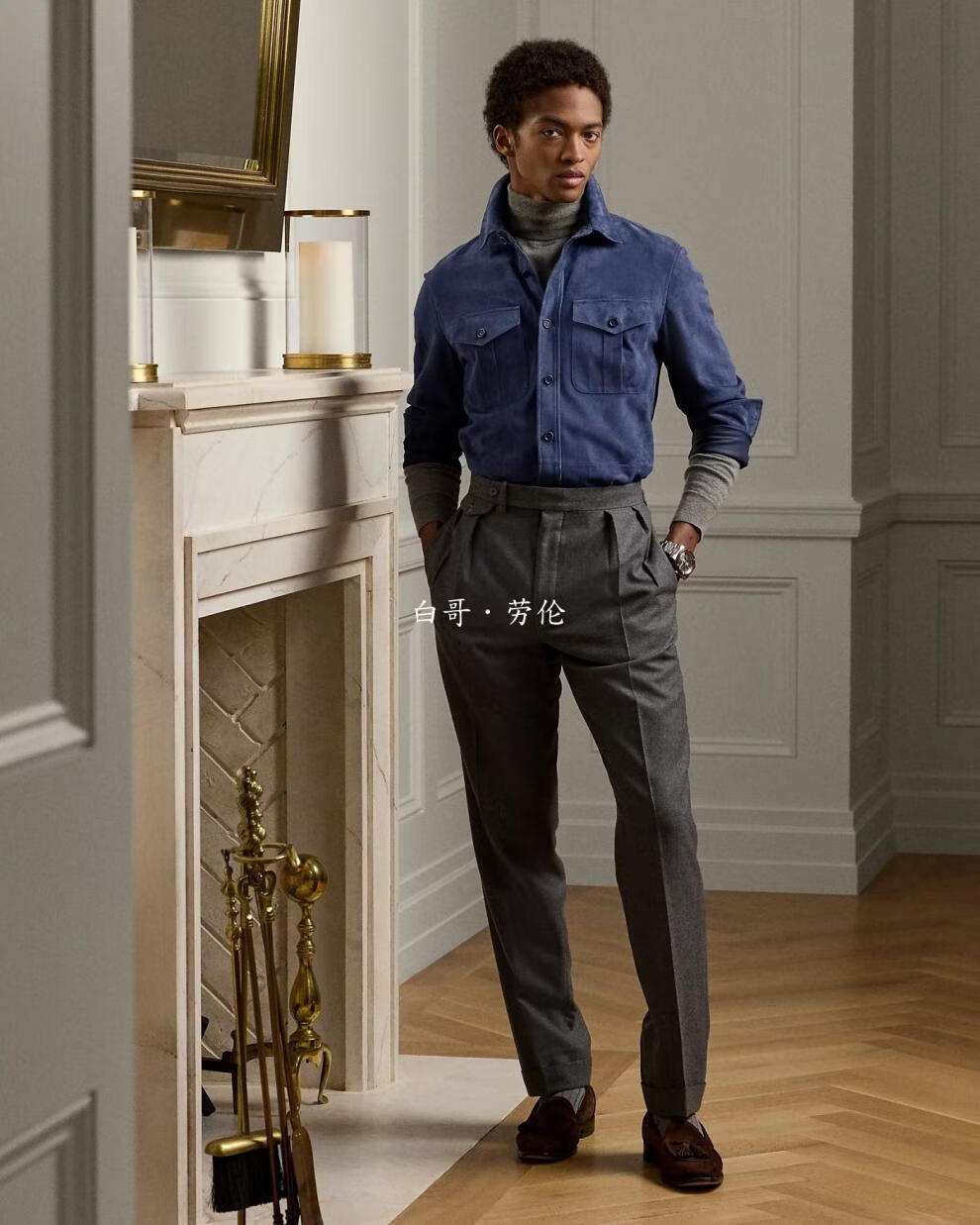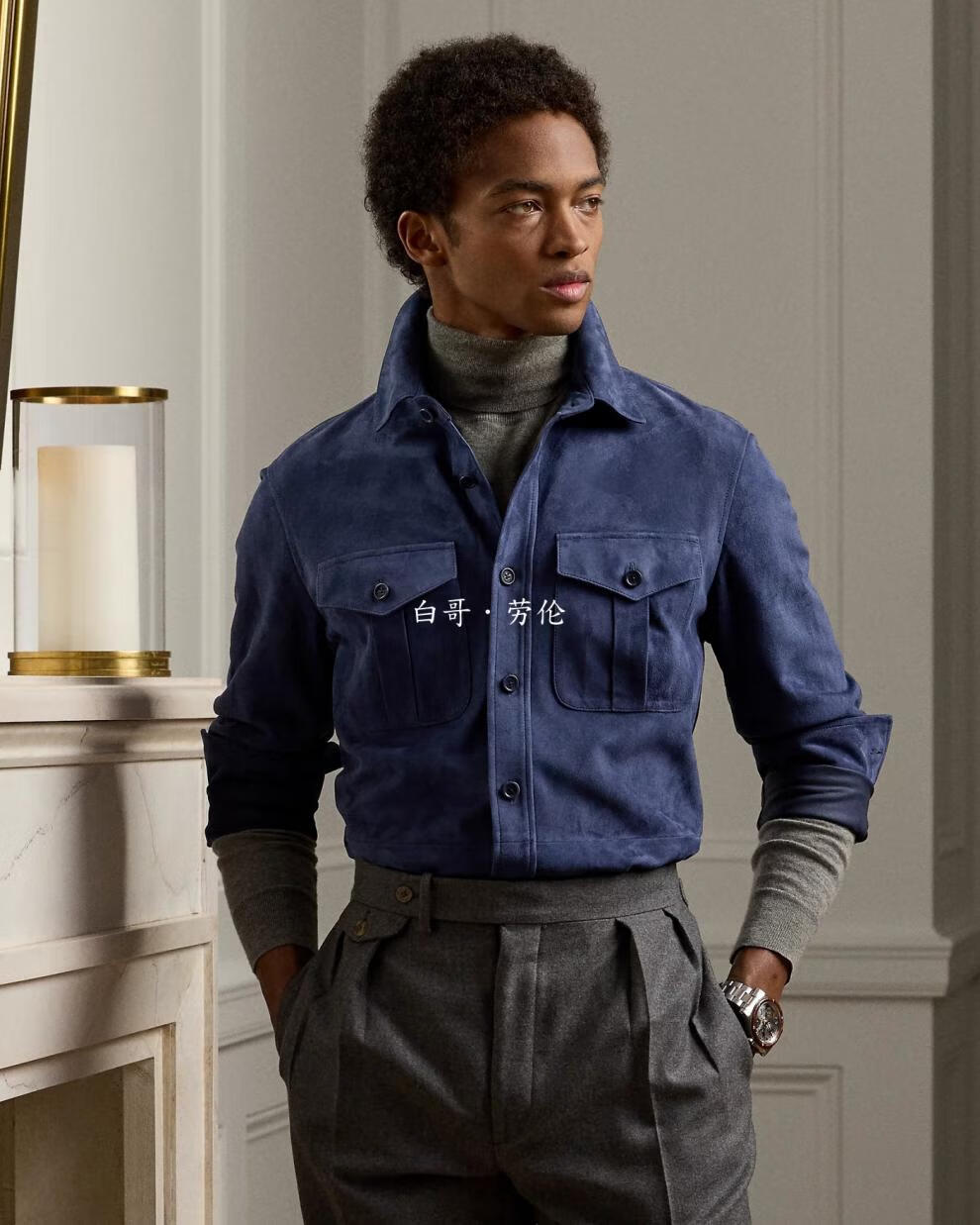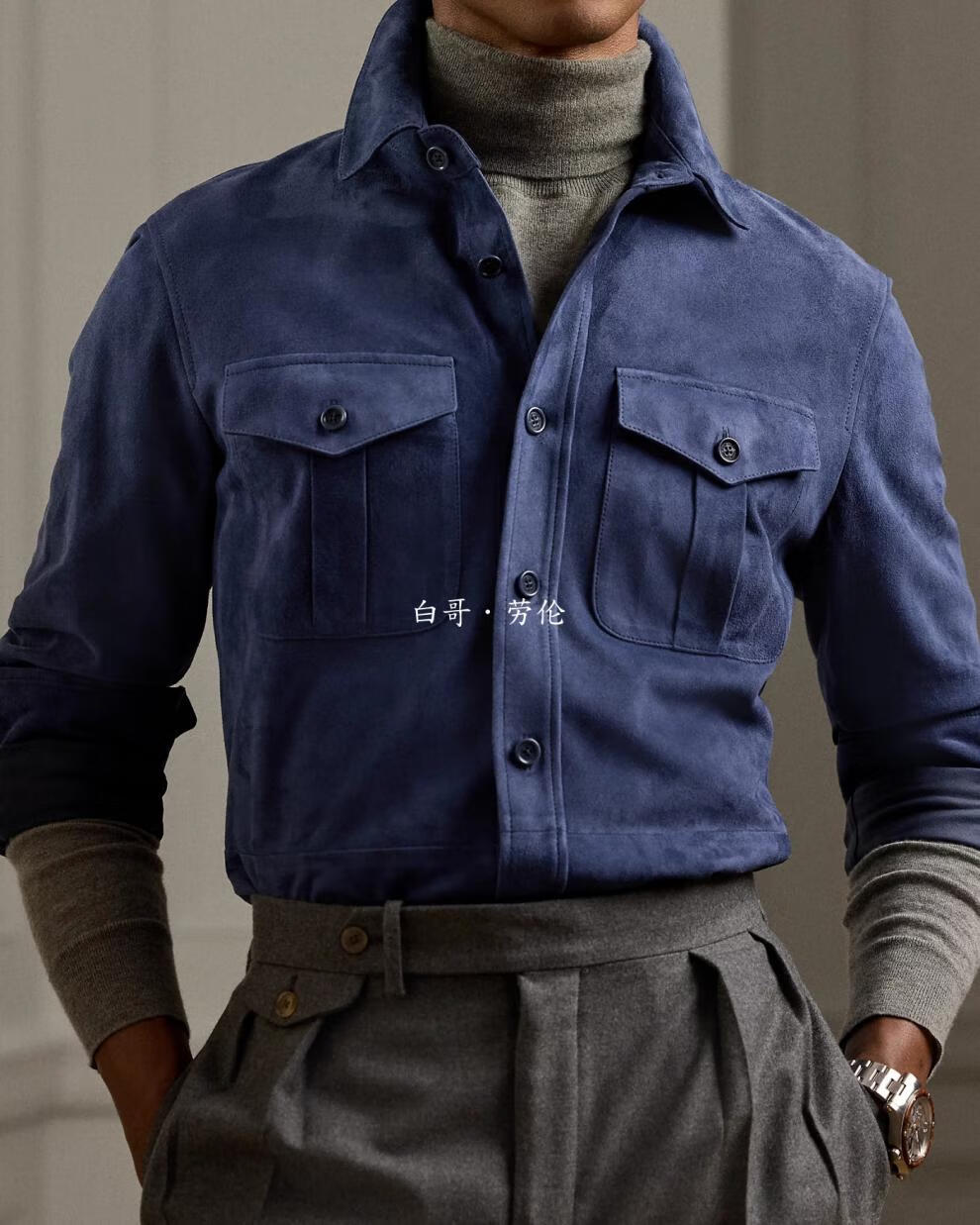 Polo Ralph Lauren现货羊皮翻毛皮衣衬衫外套男装紫标Purple Label/拉夫劳伦 现货 D12 XL
