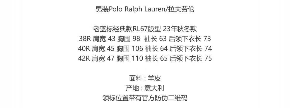 Polo Ralph Lauren老蓝标经典RL67翻毛羊皮衣西服男装Polo Ralph Lauren/拉夫劳伦 现货 D3 M (170)