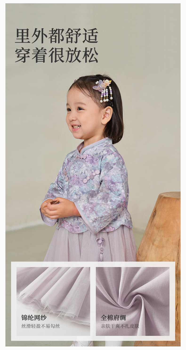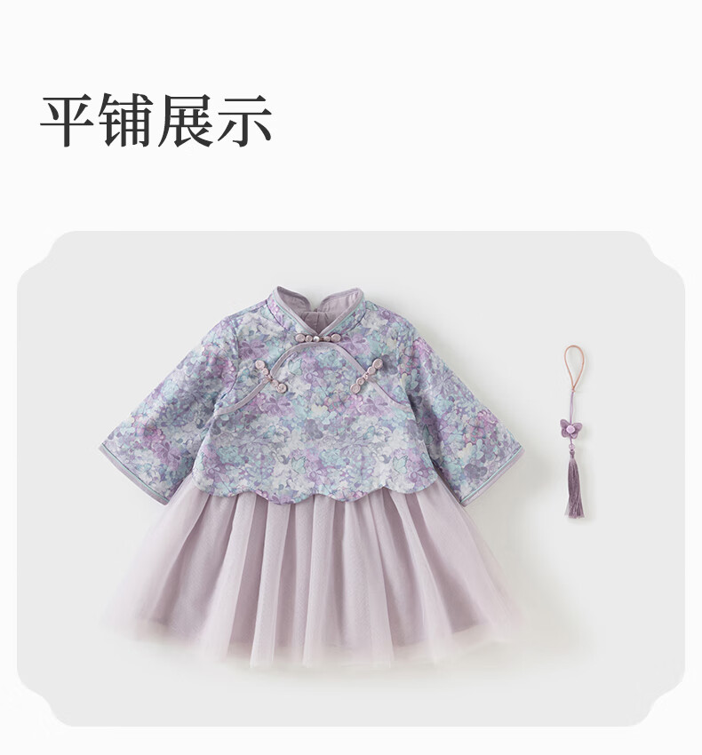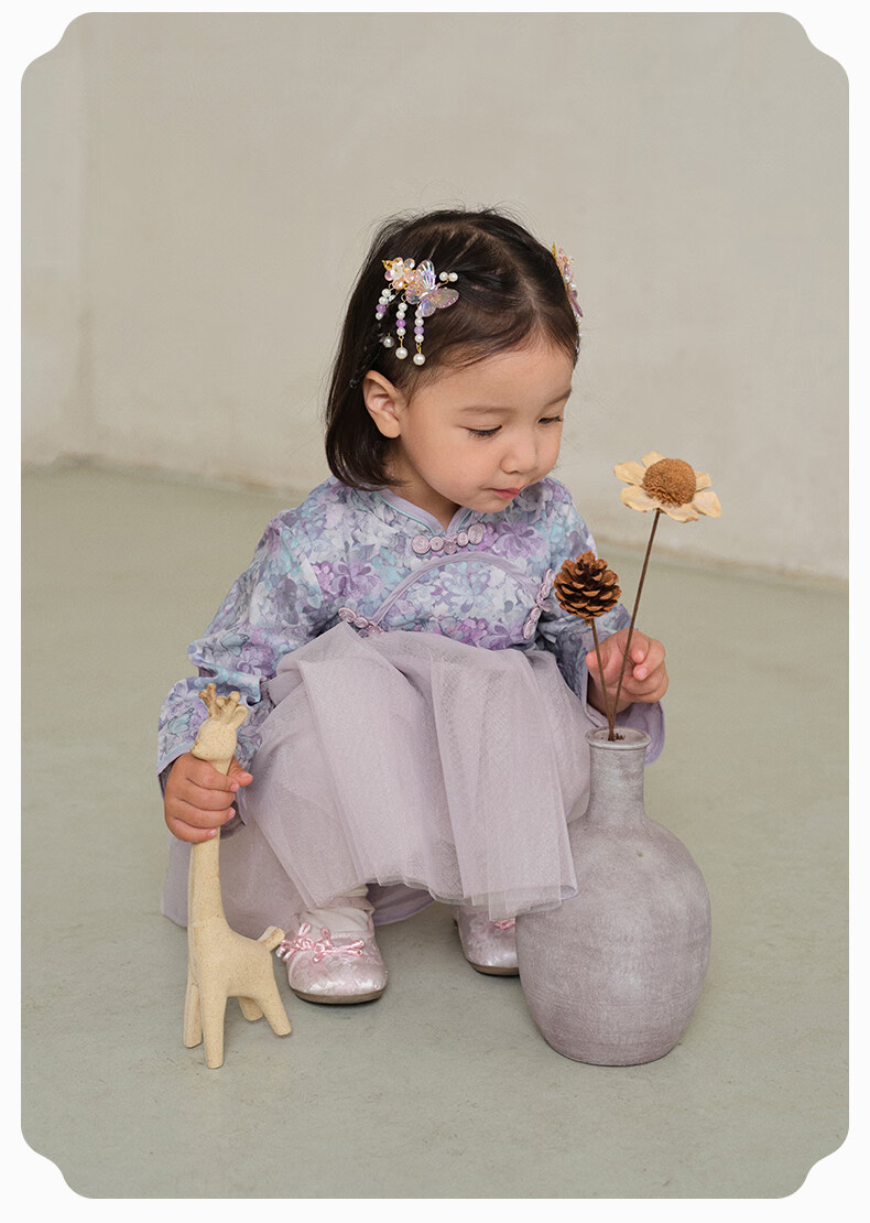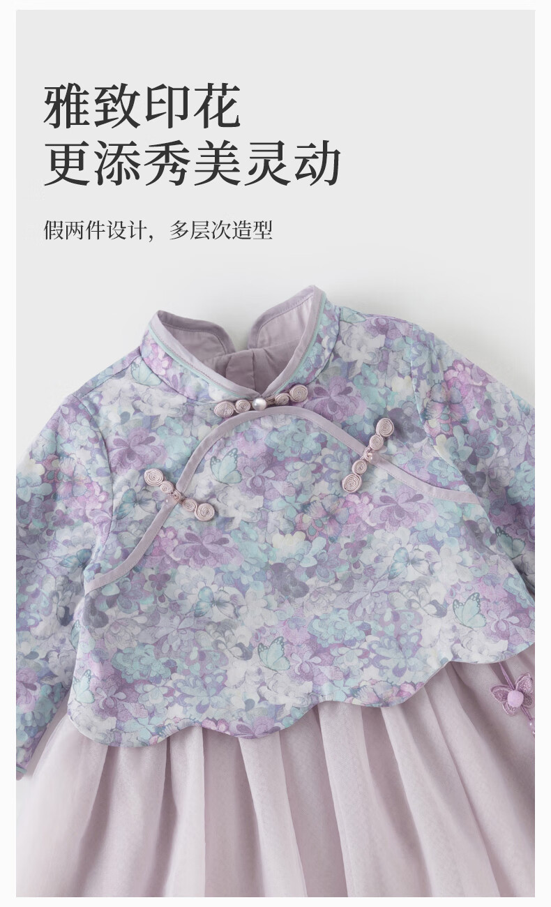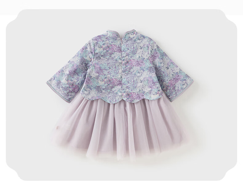 DAVE&BELLA Girls Chinese Style Hanfu Dress New Spring Baby Girl Dress Western Style Children's Mesh Skirt Children's Skirt Flower Print Ready Stock 110 cm (recommended height 100-110cm)