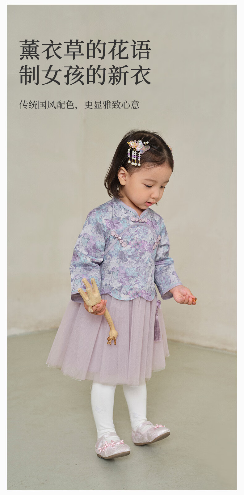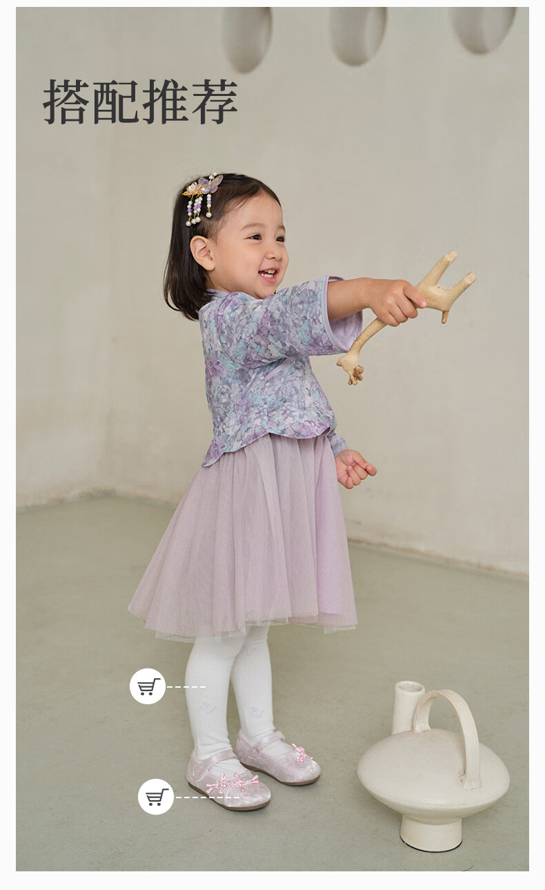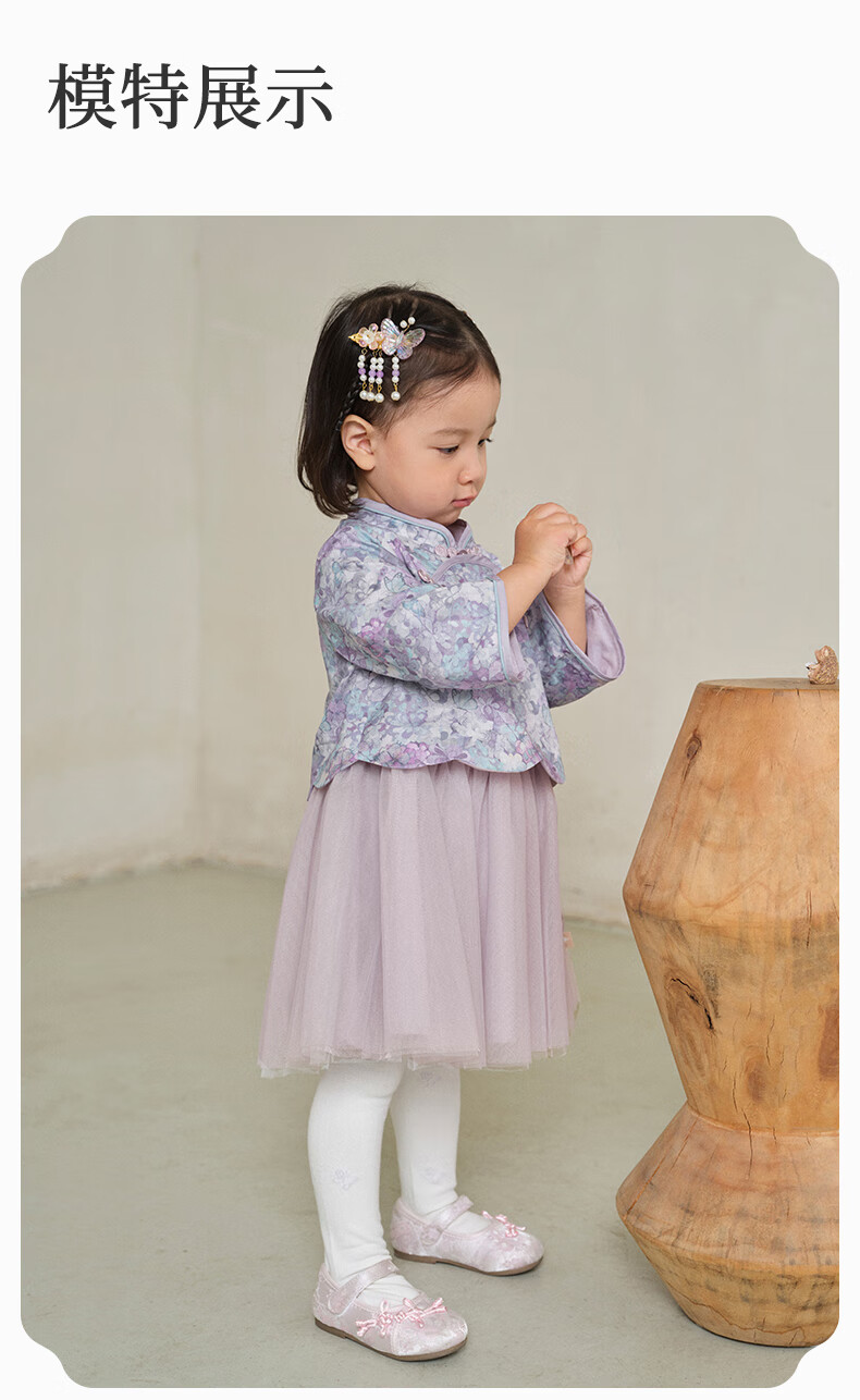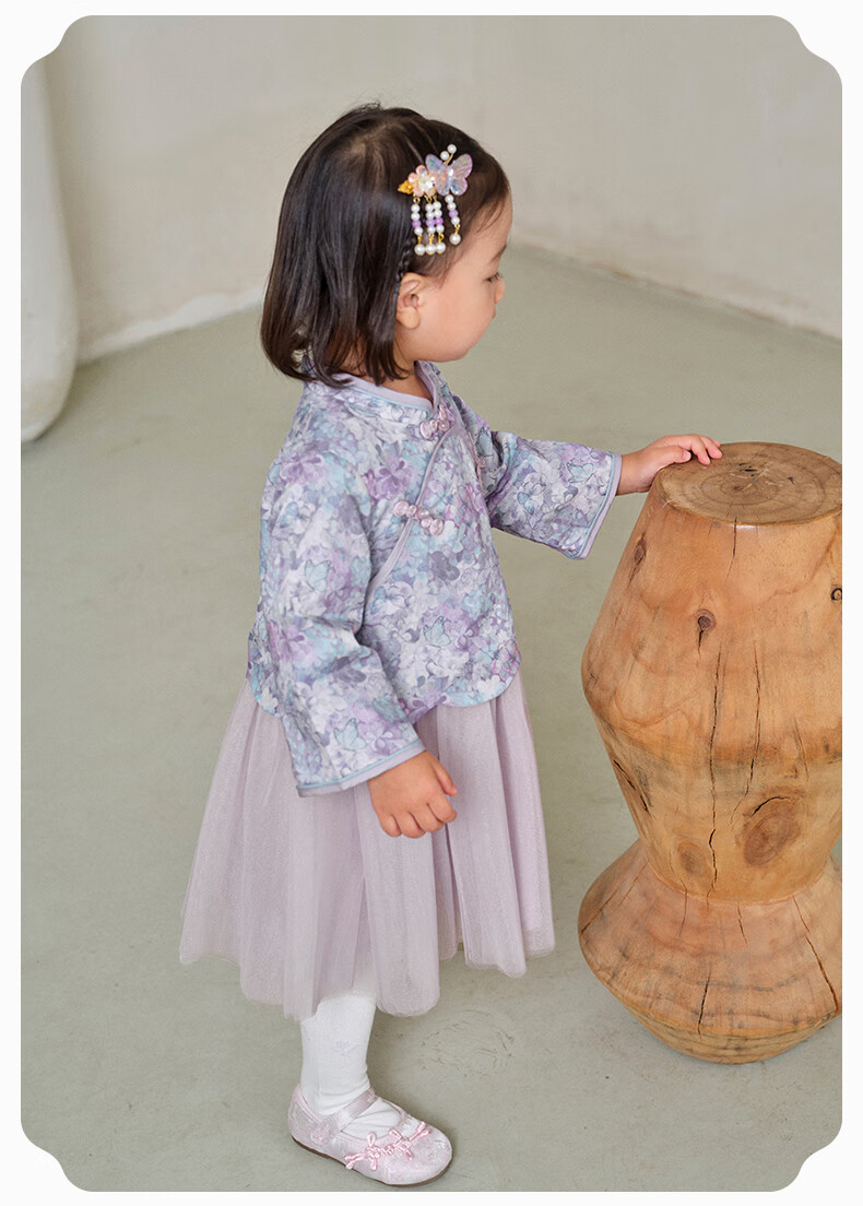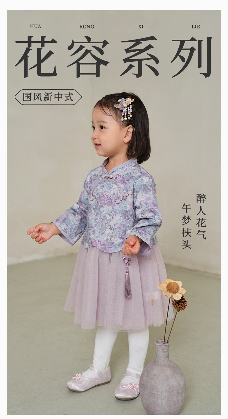 DAVE&BELLA Girls Chinese Style Hanfu Dress New Spring Baby Girl Dress Western Style Children's Mesh Skirt Children's Skirt Flower Print Ready Stock 110 cm (recommended height 100-110cm)