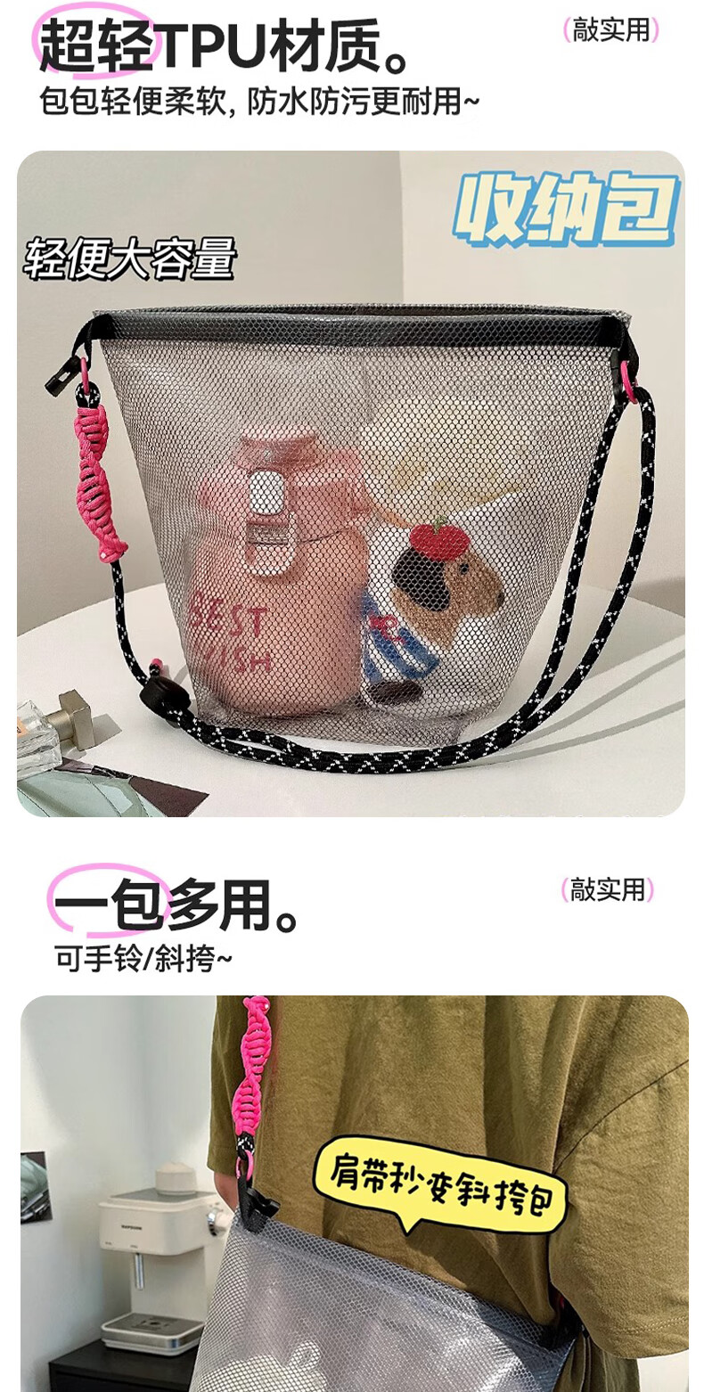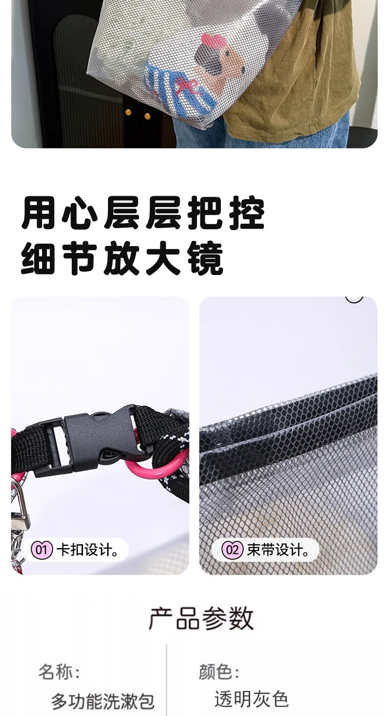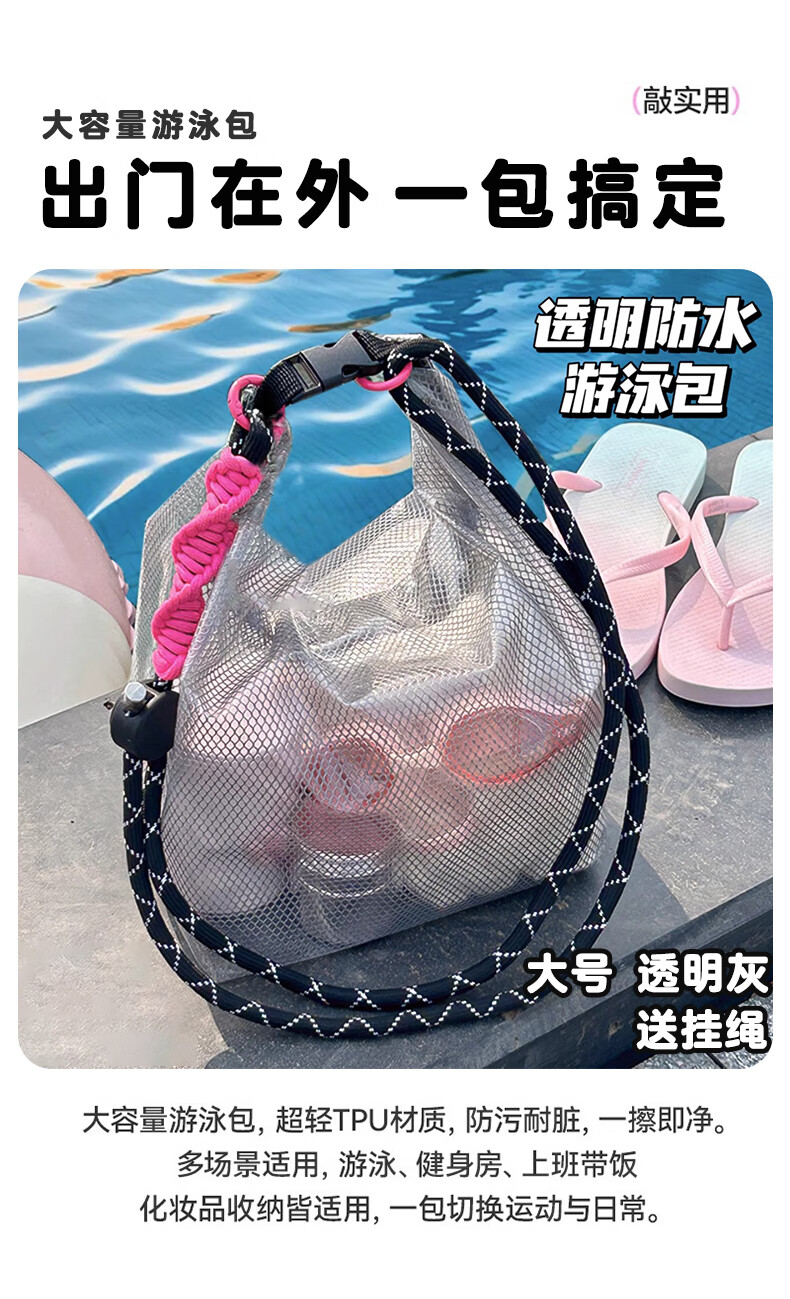 He Jiagong Swimming Fitness Waterproof Storage Bag Dry and Wet Separation Large Capacity Portable Toiletry Bag Travel Swimsuit Storage Bag Waterproof Storage Bag Transparent Gray + Diagonal Rope