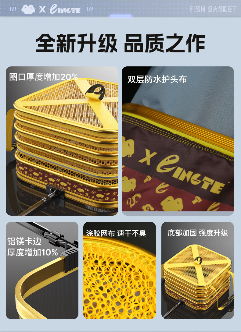 Fish net bag for fishermen, fish bag for fishermen, small fishing equipment, fish net bag, thickened, quick-drying, glued, anti-hanging black pit, 25cm 2.5m, flying gilt gold fish guard, fish guard bag