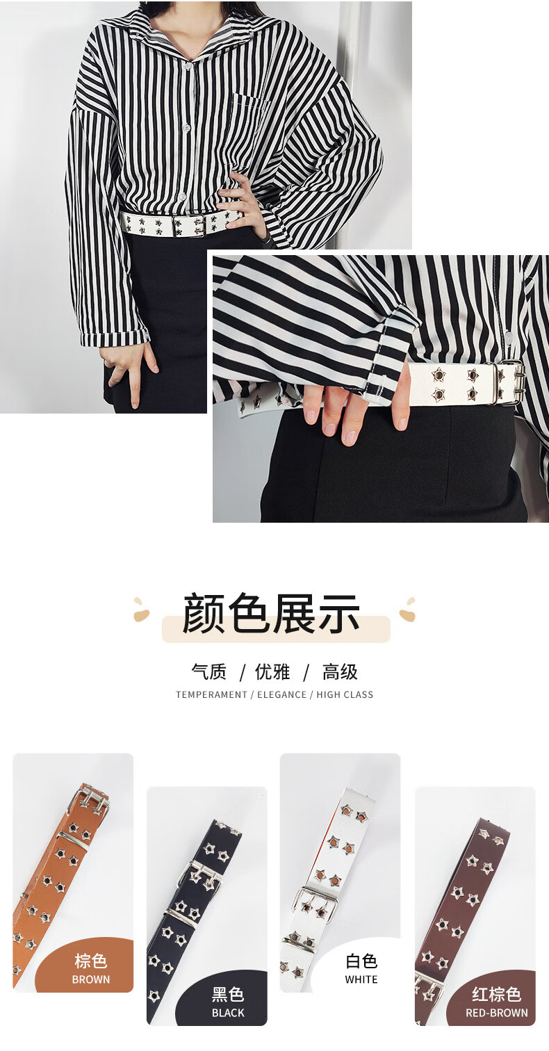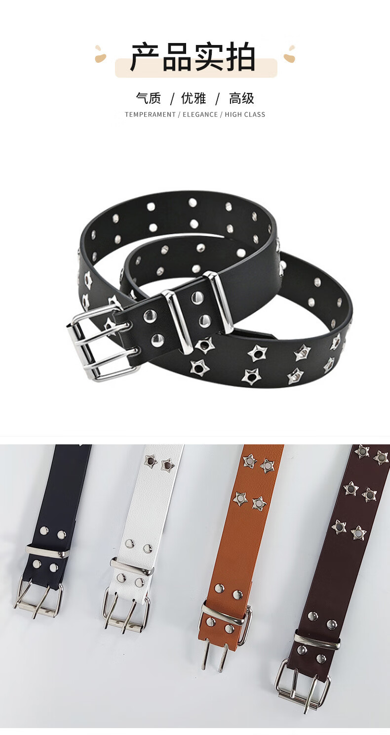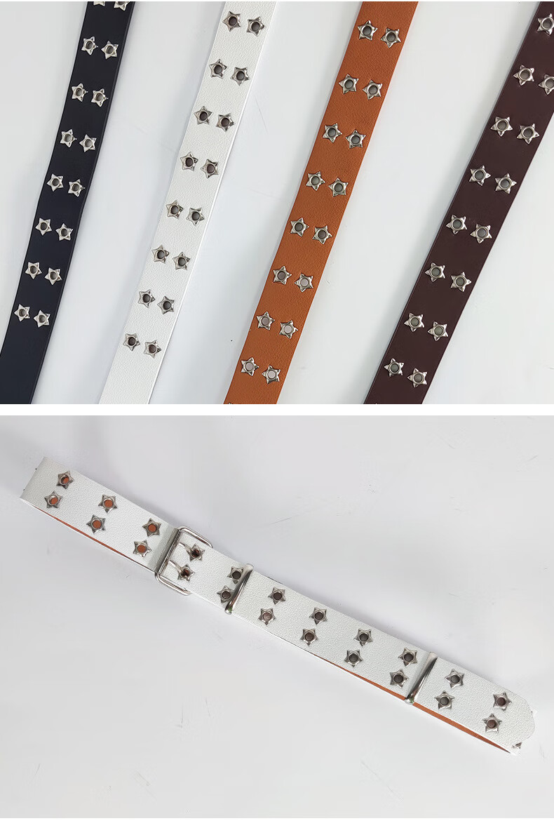 JIOESC White Belt Women's Belt Women's American Pin Buckle Jeans Belt Casual Trend Teenage Students Simple and Versatile Double Row Hole Stars White Upgraded Version Thickened