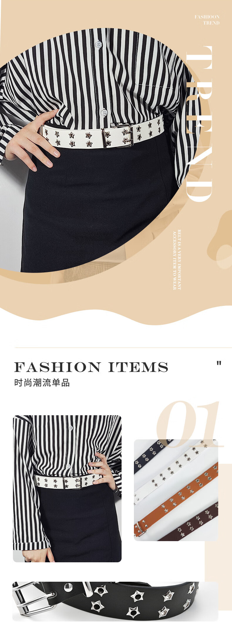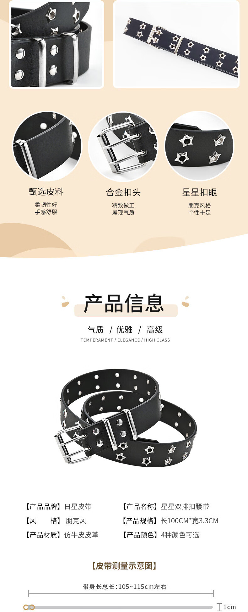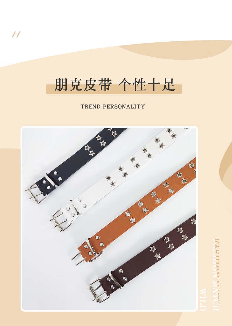 JIOESC White Belt Women's Belt Women's American Pin Buckle Jeans Belt Casual Trend Teenage Students Simple and Versatile Double Row Hole Stars White Upgraded Version Thickened