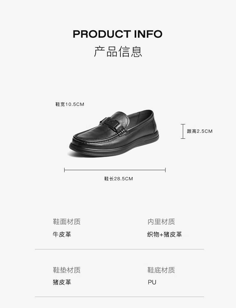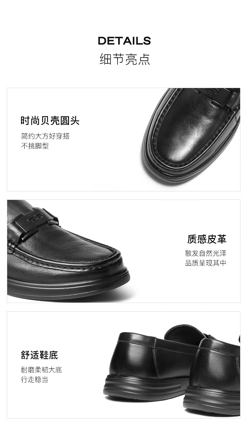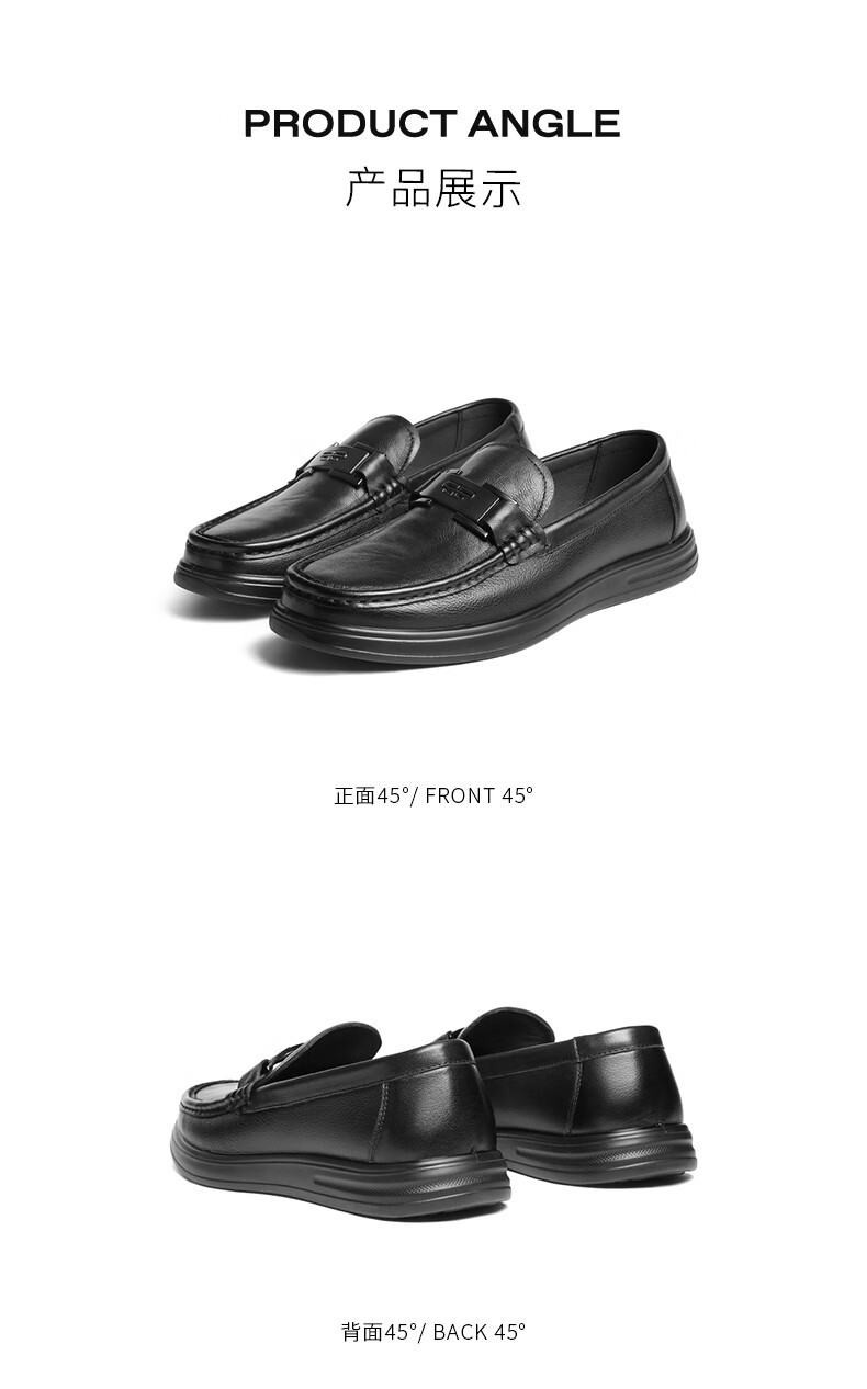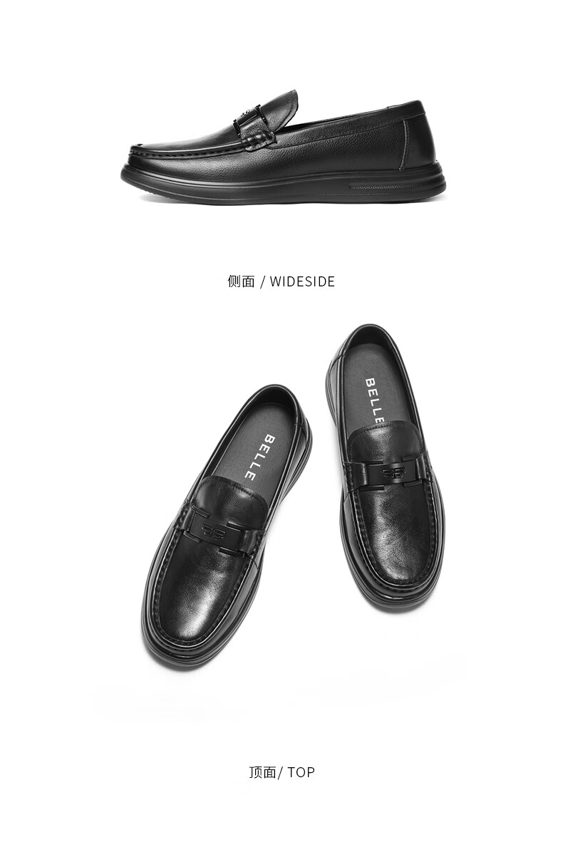 Belle Casual Business Loafers Men's 25 New Autumn Cow Leather Slip-On Peas Shoes A2130CM5 Black 42 (260mm)