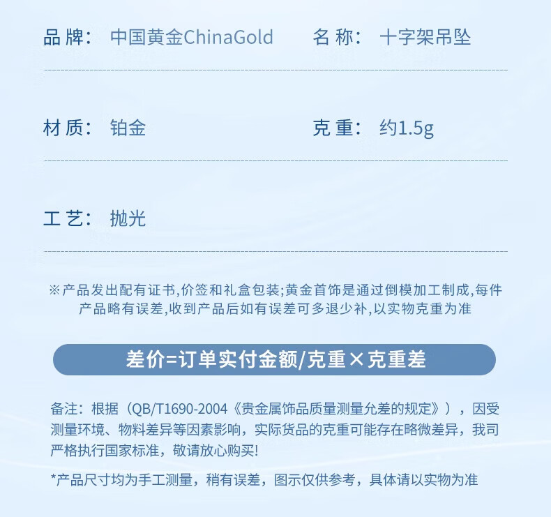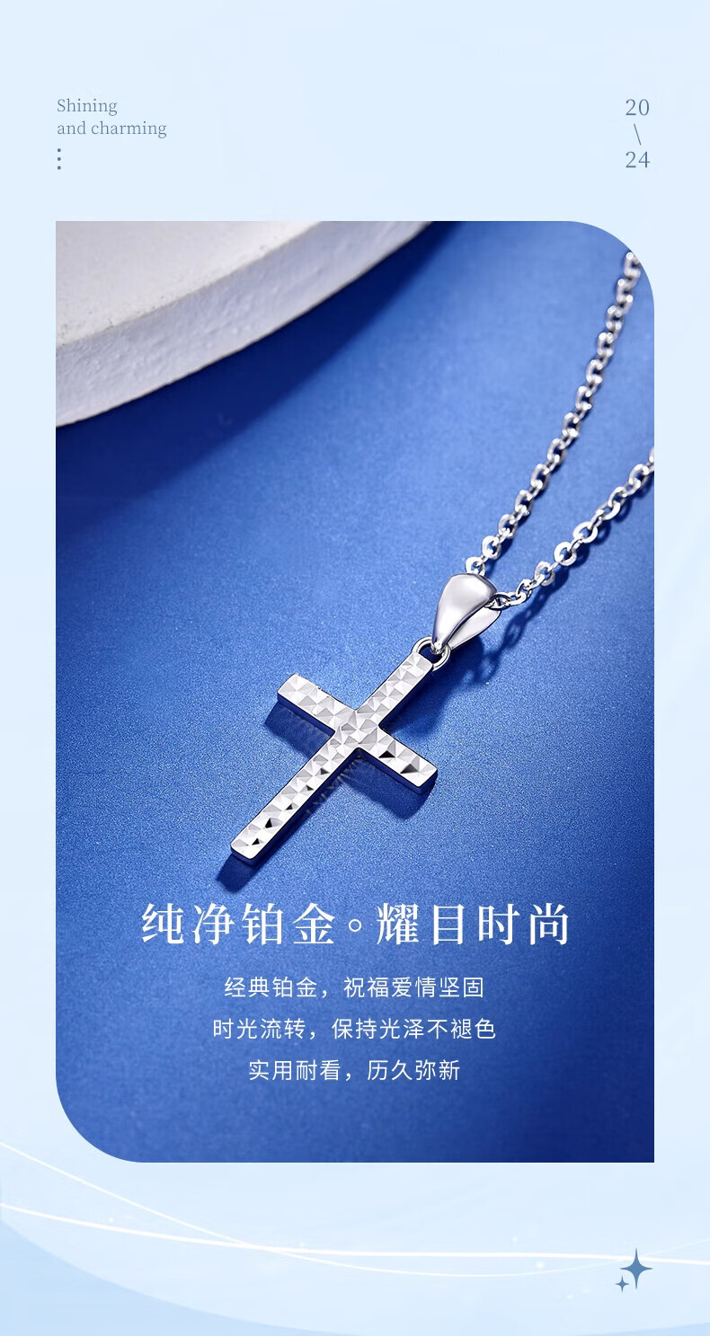 China Gold (CHINA GOLD) PT950 Cross Pendant Platinum Women's New Simple and Fashionable Valentine's Day Birthday Gift for Girlfriend and Wife Platinum Cross Pendant About 1.1g Free Silver Chain + Medium Gold Gift Box