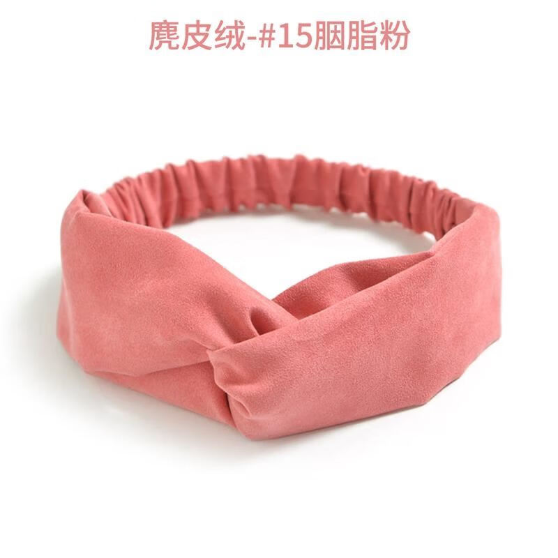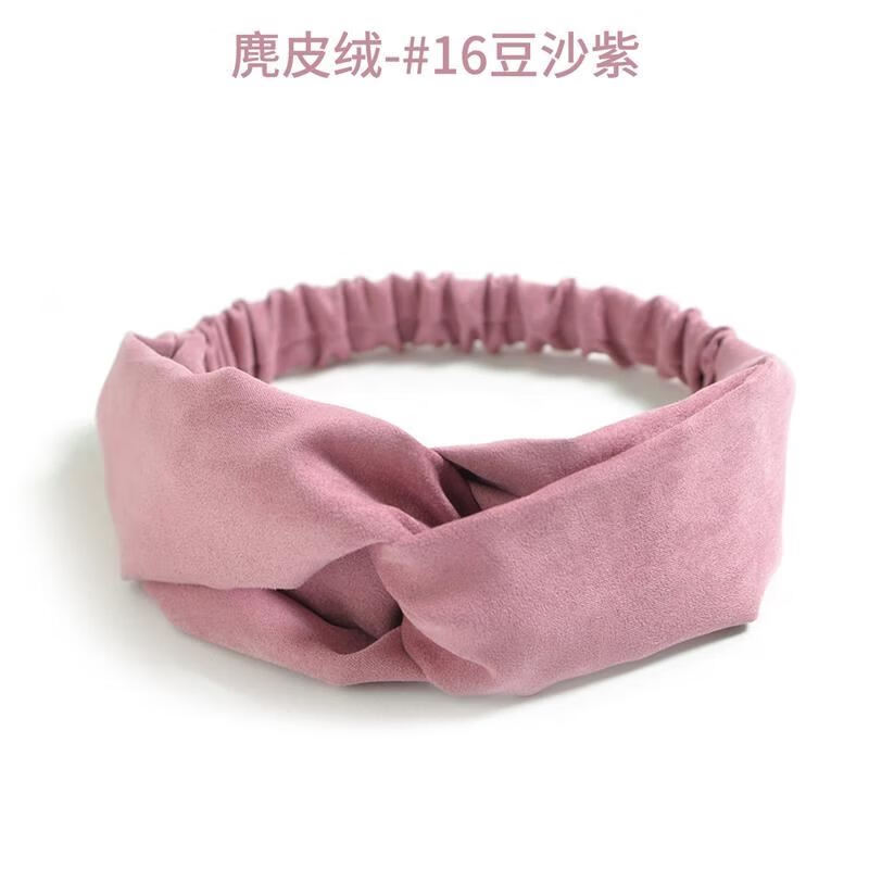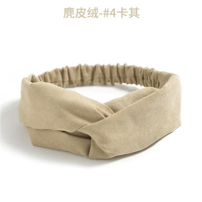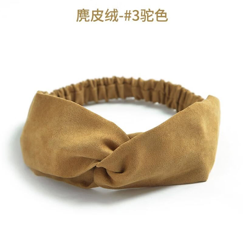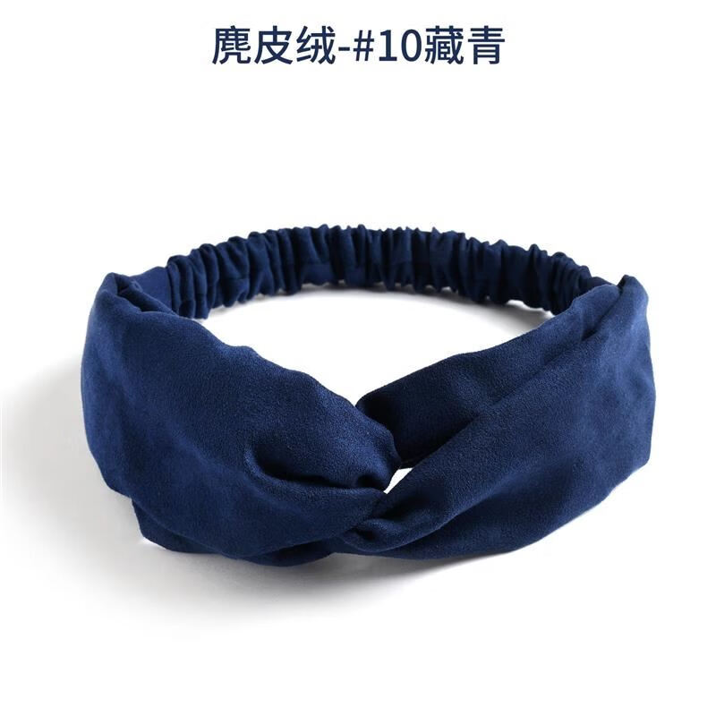 Shiyun headband women's high-end going out headwear 2025 European and American solid color elastic cross short hair knitted headband headband D34-suede-#25 light blue