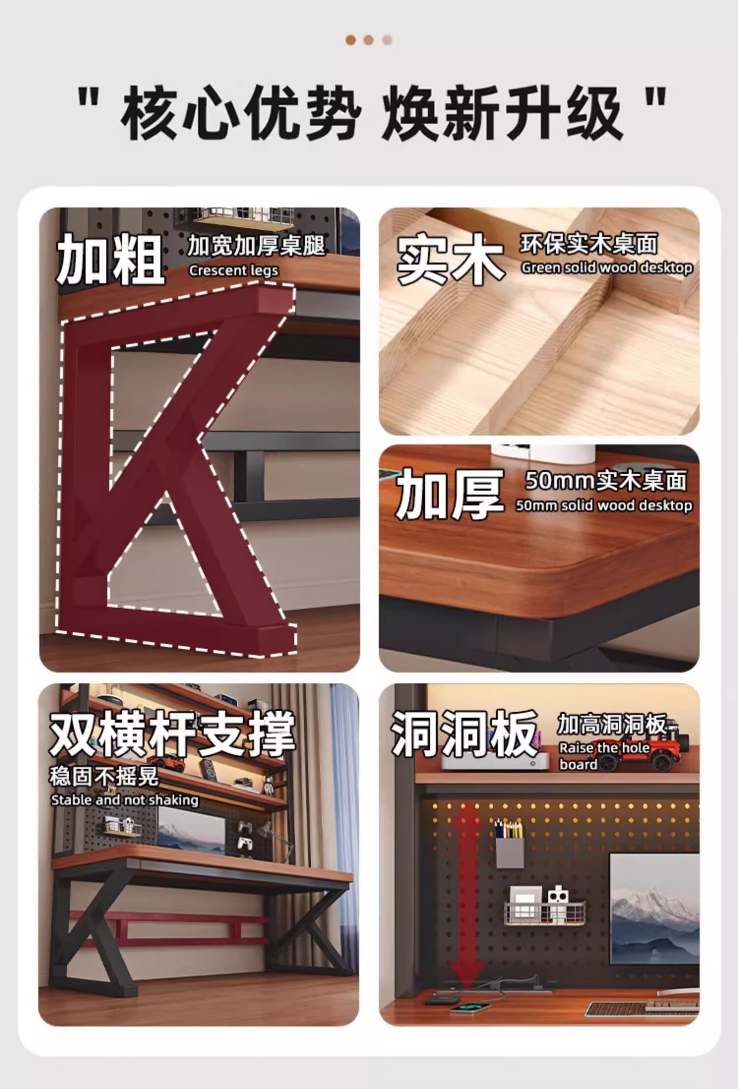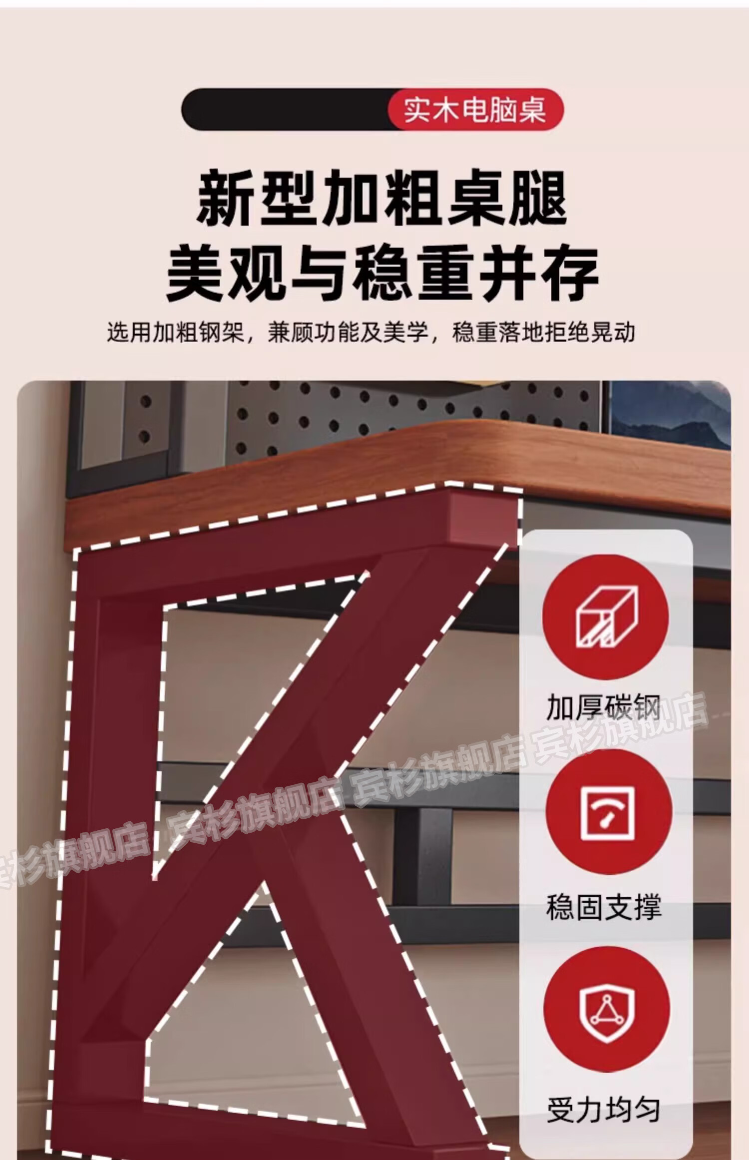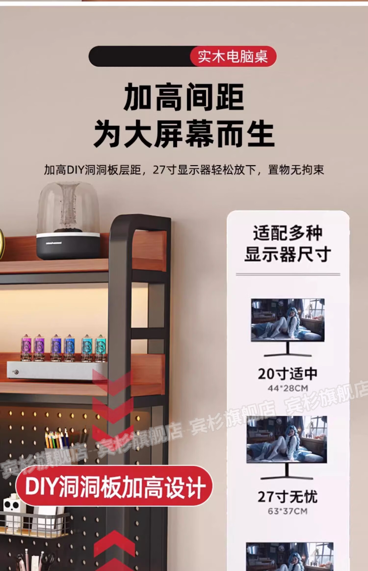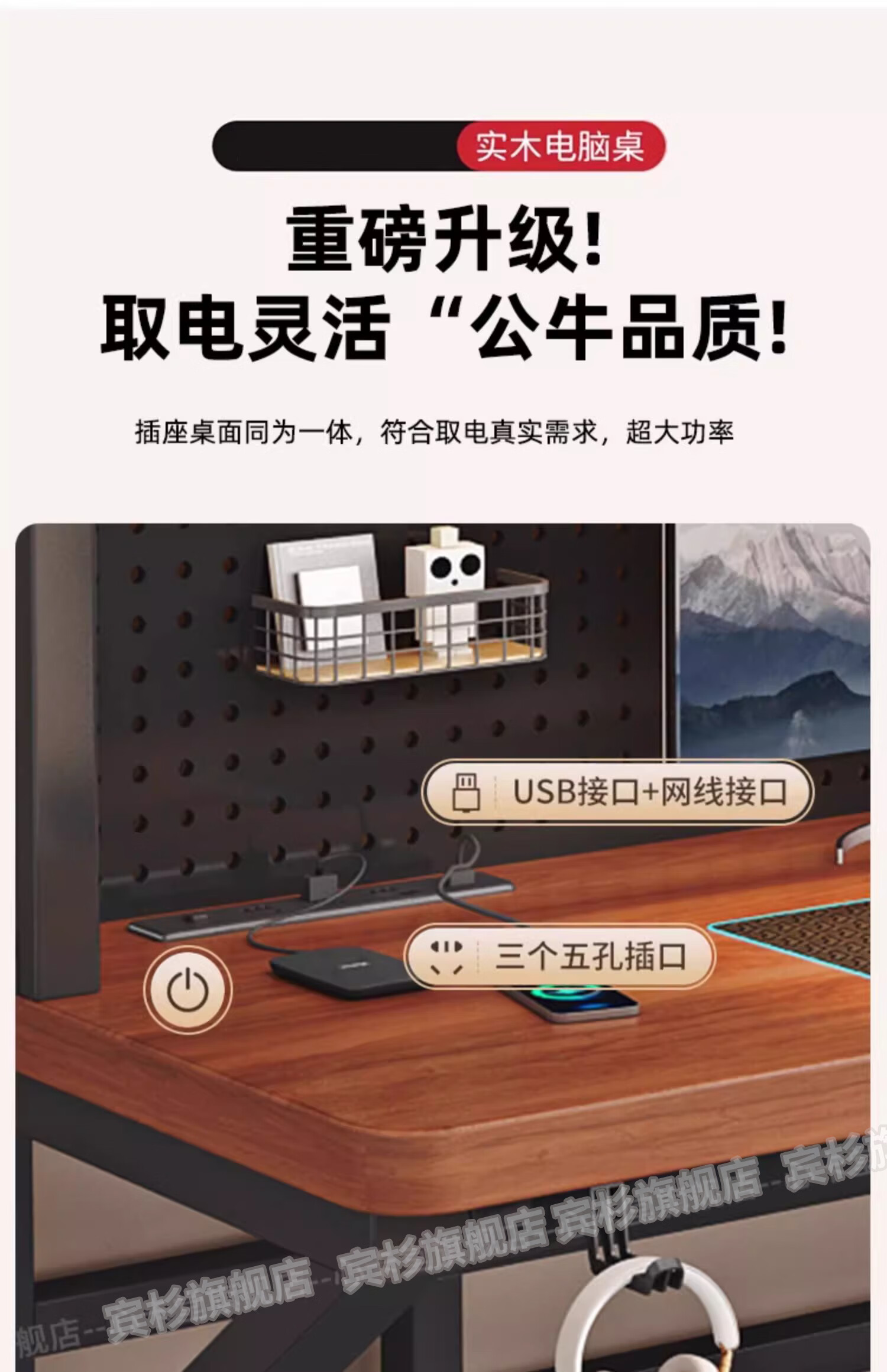 Binshan computer desk desk bookshelf integrated solid wood study table hole board e-sports table desktop desk workbench two layers + black walnut color + black shelf 80*50*75 (50mm solid wood)