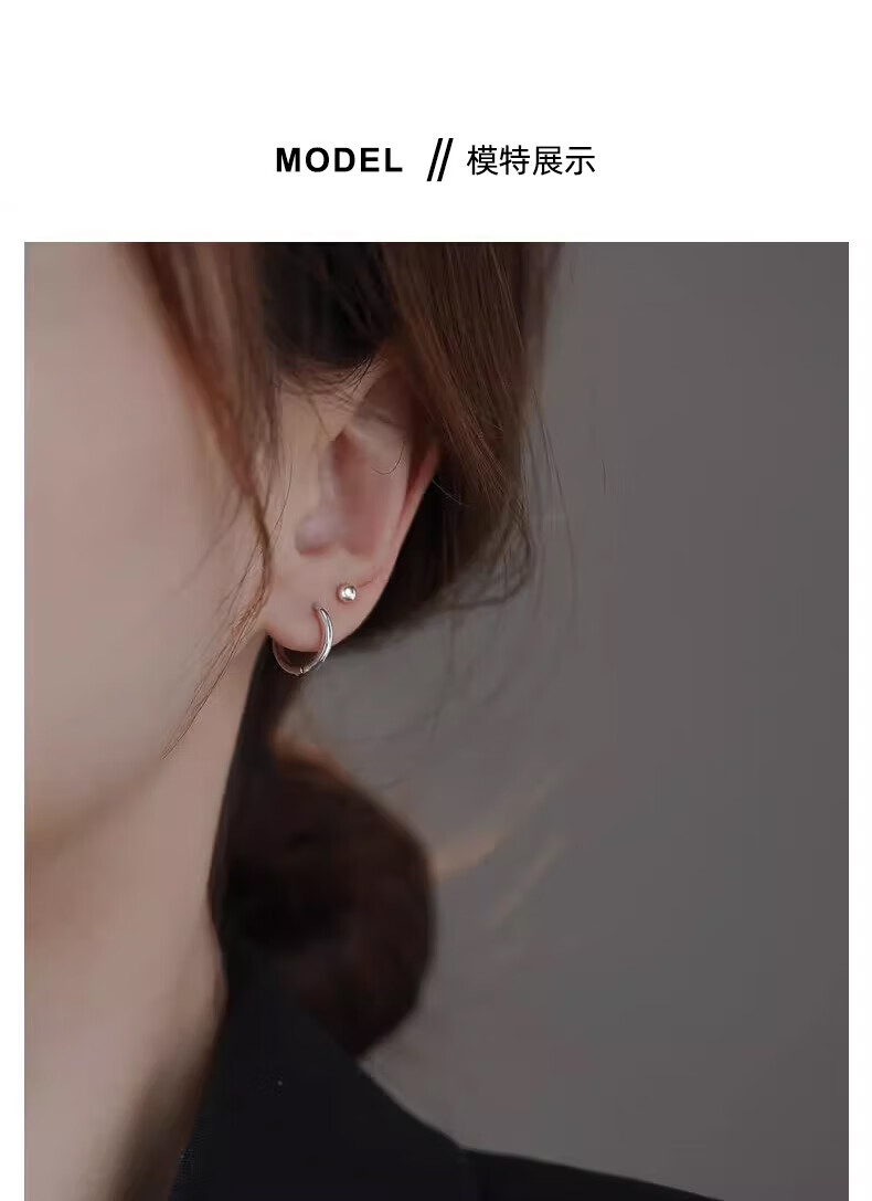 LANSHU Silver Earrings for Women 2025 New Ear Hole Ring Minimalist Bean Earrings Silver Needle Design High-end Earrings Ear Care Combination Kit 10+3mm