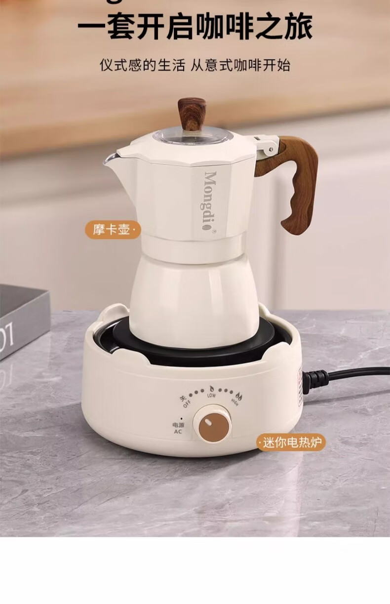 Mongdio electric ceramic stove Moka pot household coffee pot heating stove electric stove heating base kettle 500w electric stove with rim - off-white