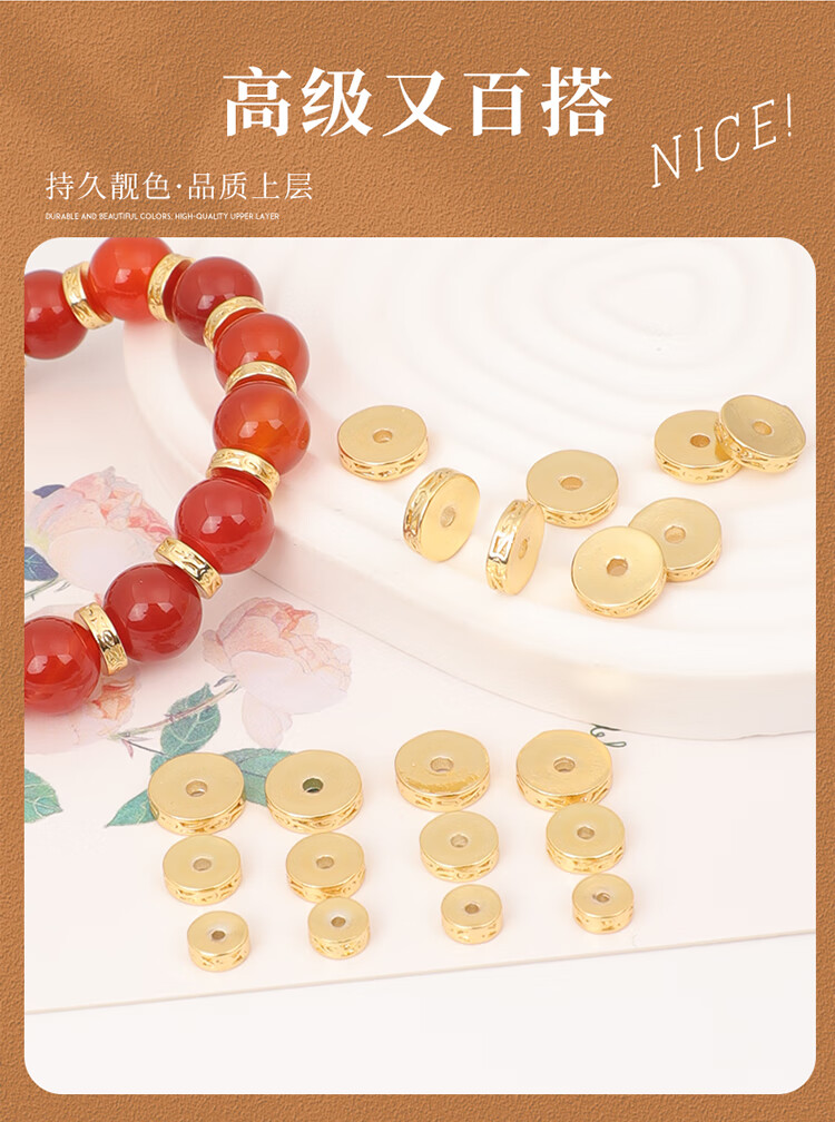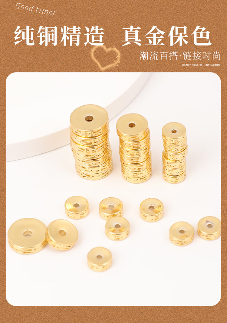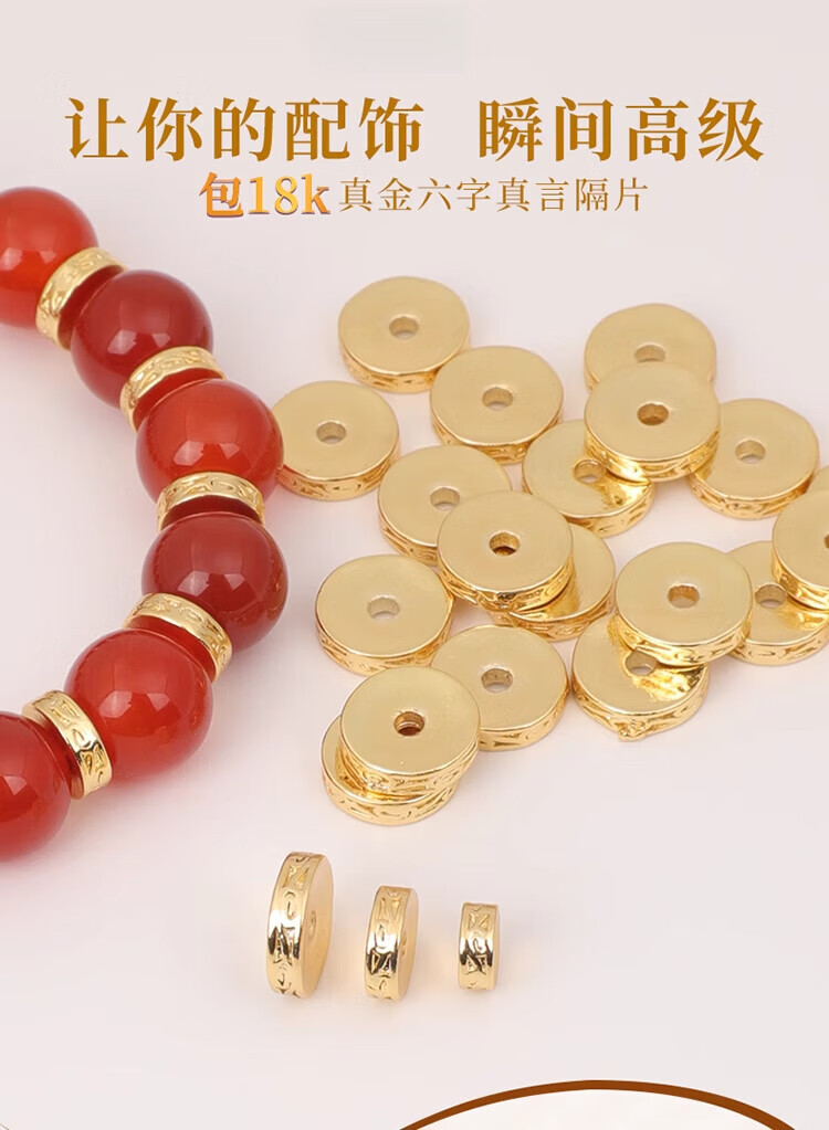 Fat Donglai same style 18k gold separator bag 18k real gold inscription play separator handmade DIY ancient six-character mantra straight cut 18k six-character mantra separator 10mm/50 pieces plated