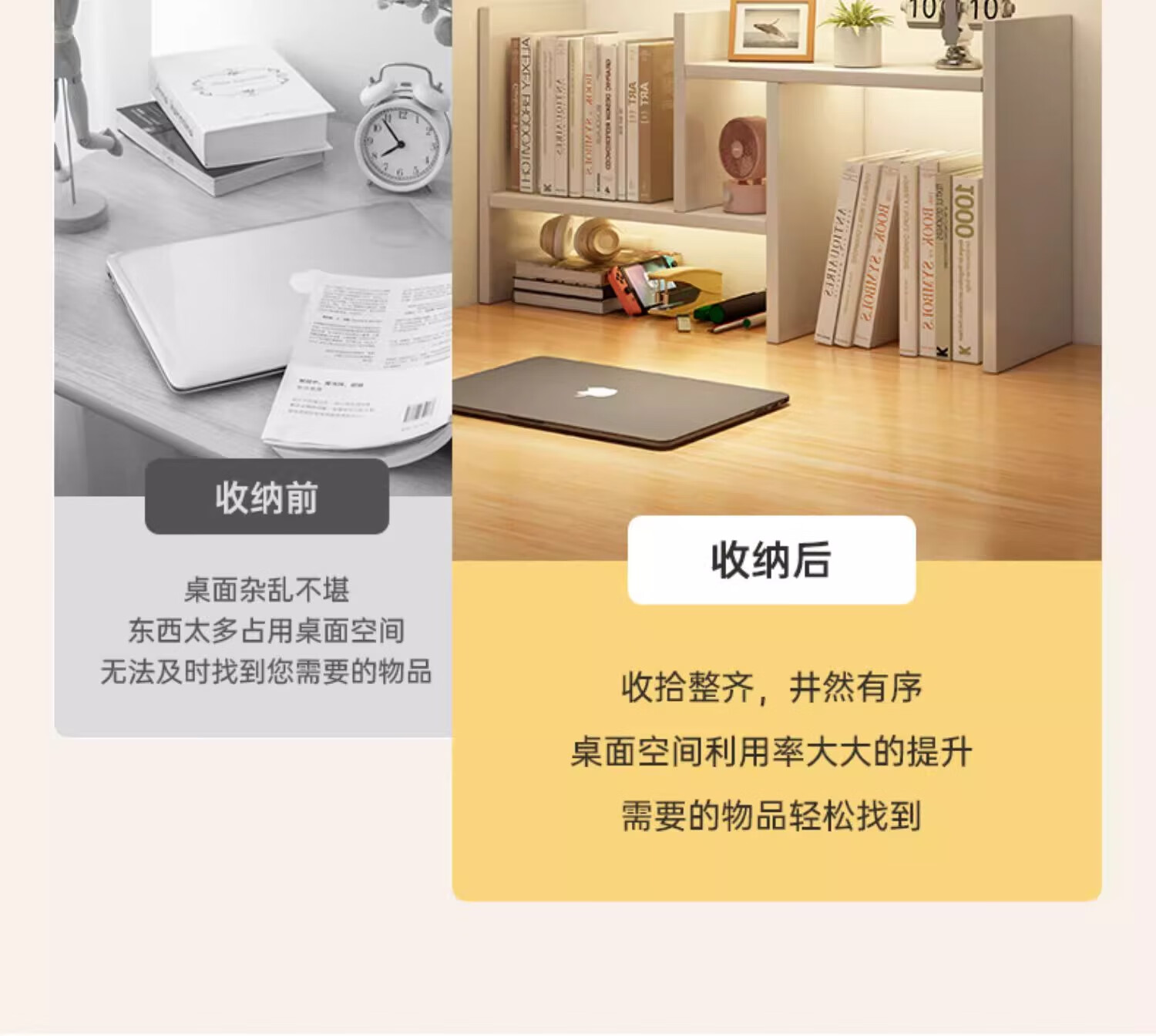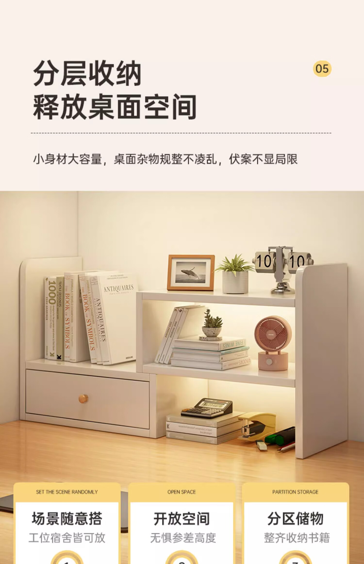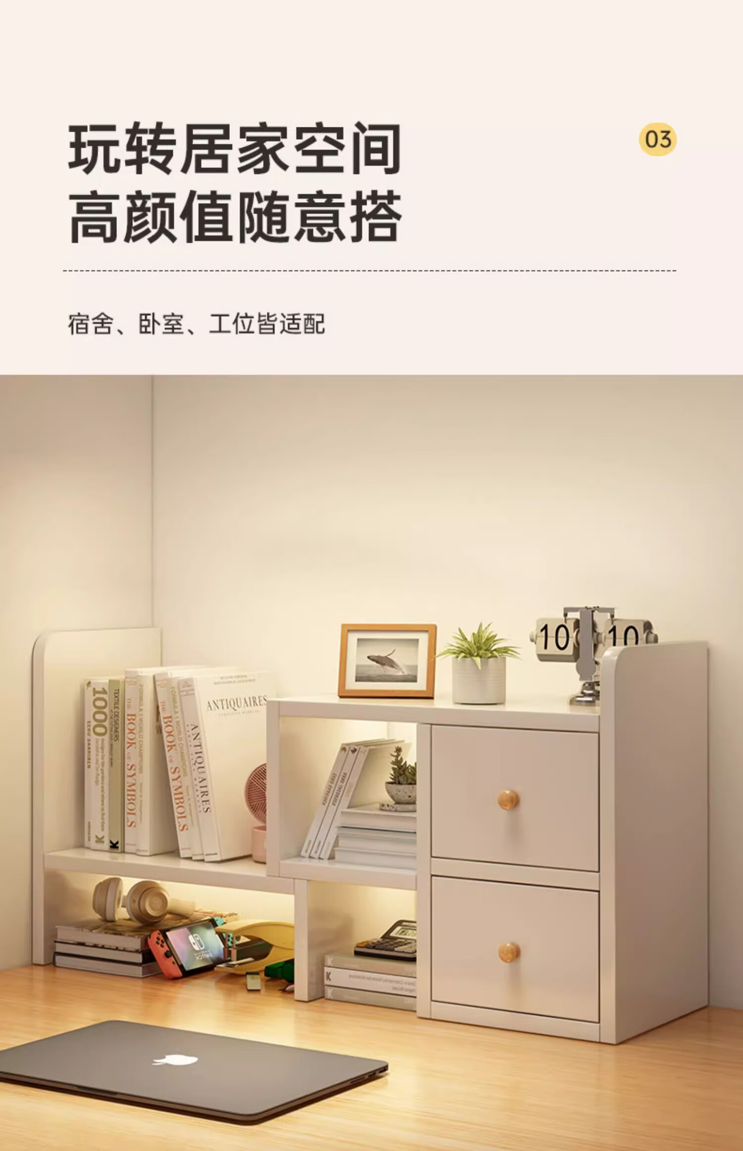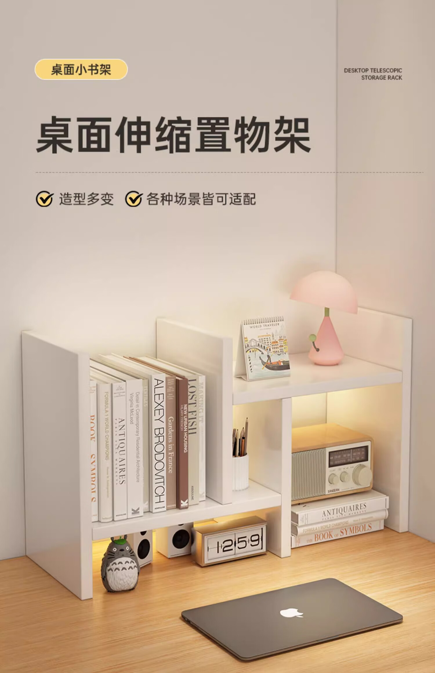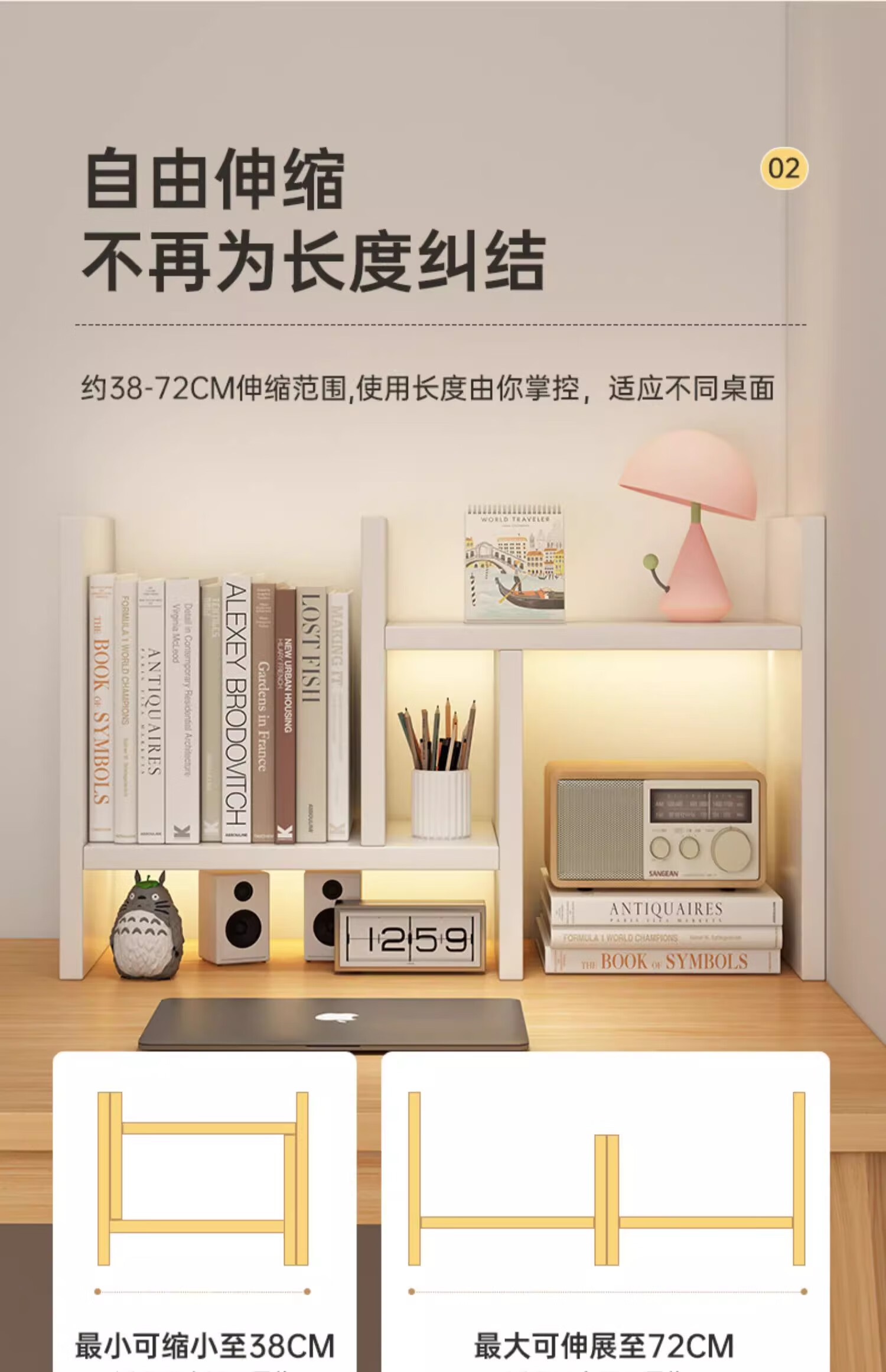 Desktop Bookshelf Desktop Storage Rack Desk Storage Rack Student Dormitory Storage Rack Desk Cosmetics Organizer Rack Retractable | Pastoral Oak Color 30-60cm