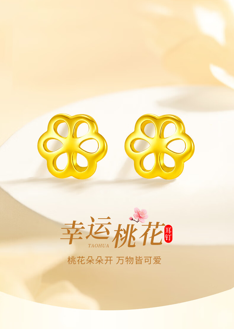 China Gold Peach You Are Happy 18K Gold Earrings Women's Gold Earrings Earrings Girls Birthday Gifts Girlfriend Wife Wedding Anniversary 18k Flower Earrings