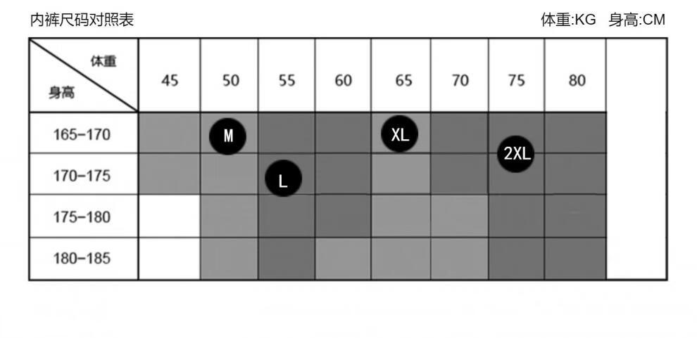 China (cm) 165 / 88-90 170 / 96-98 175 / 108-110 180 / 118-122 185 / 126-130