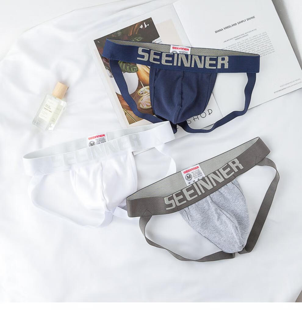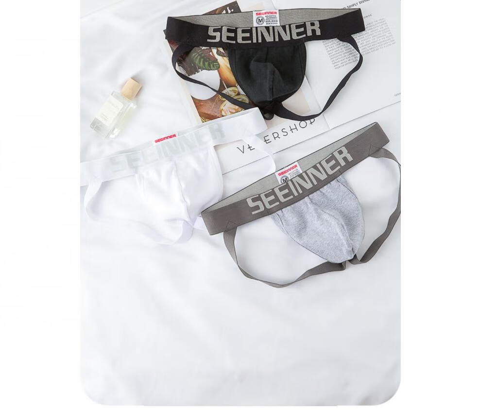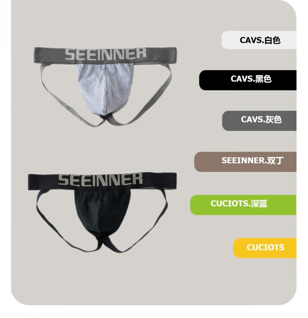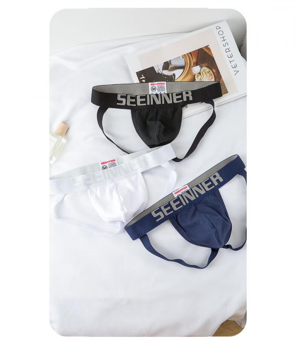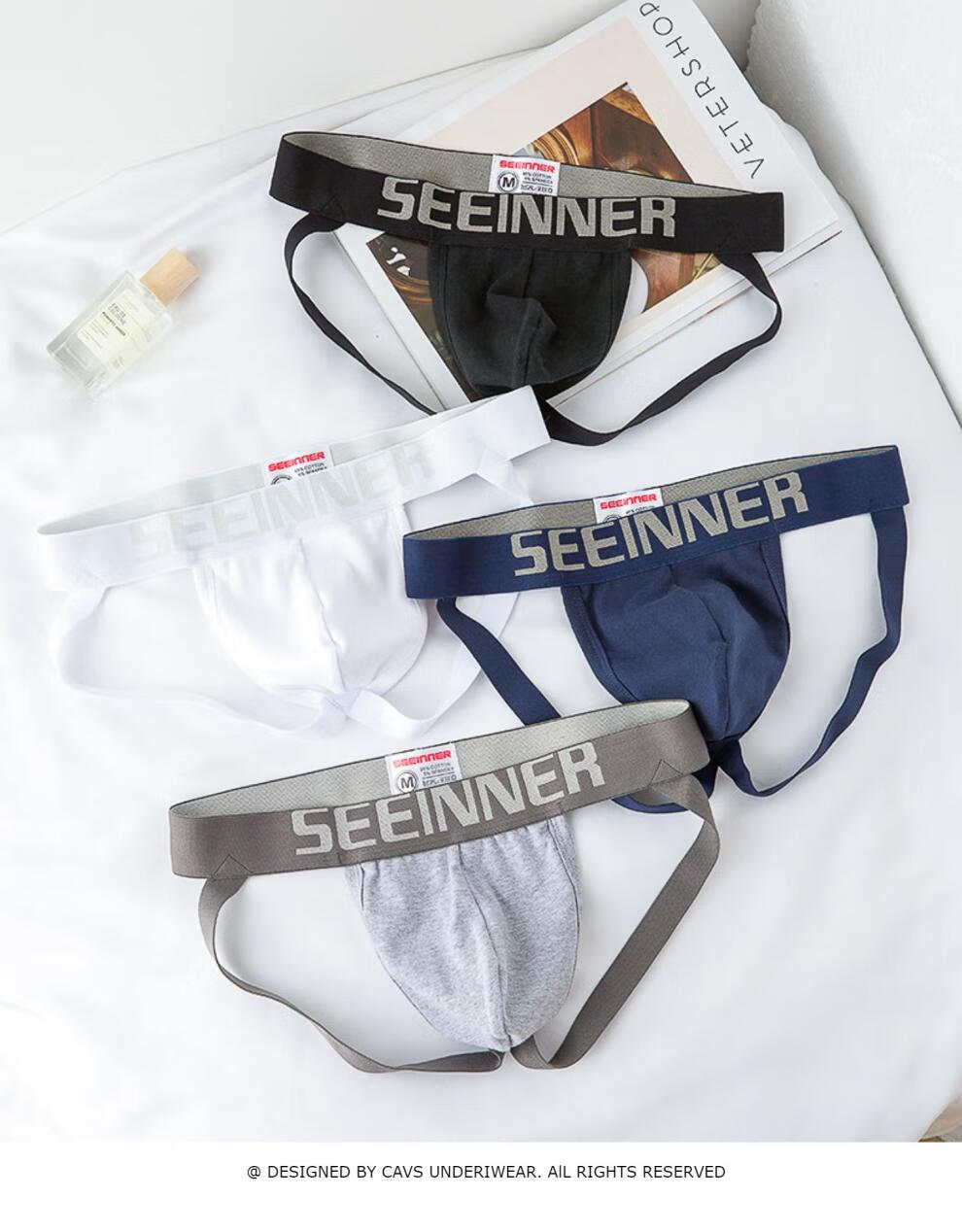 Seeinner men's double-butt underwear sexy cotton U-convex low-waist sports thong underwear for men black + white L 105--125Jin Jin is equal to 0.5 kg