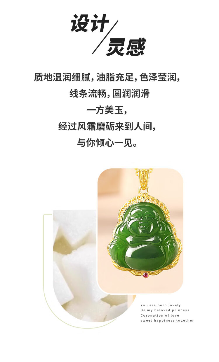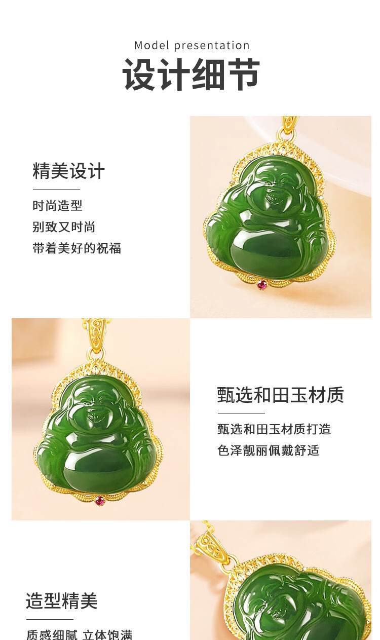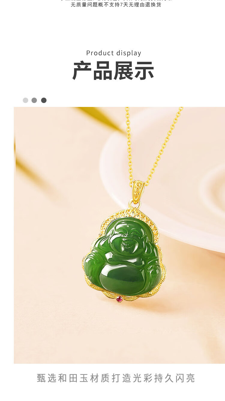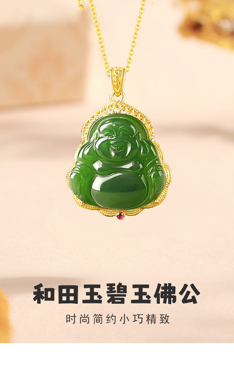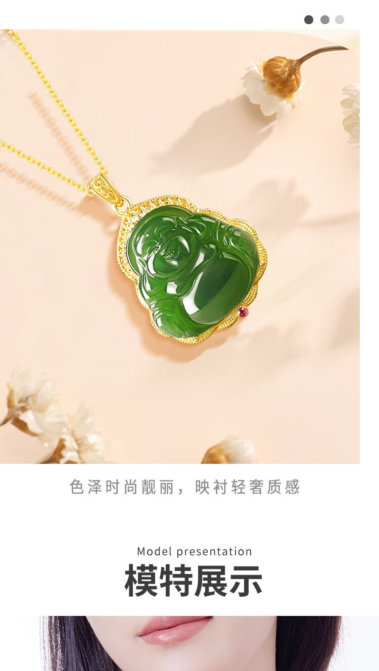 Chinese gold 18K gold inlaid Hetian jade and jasper Buddha pendant female Buddha pendant Valentine's Day birthday gift for wife and mother Hetian jade and jasper Buddha pendant with S925 chain