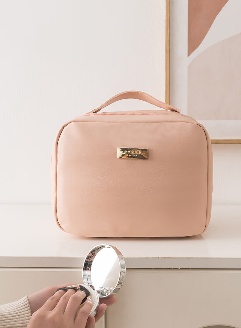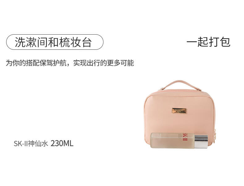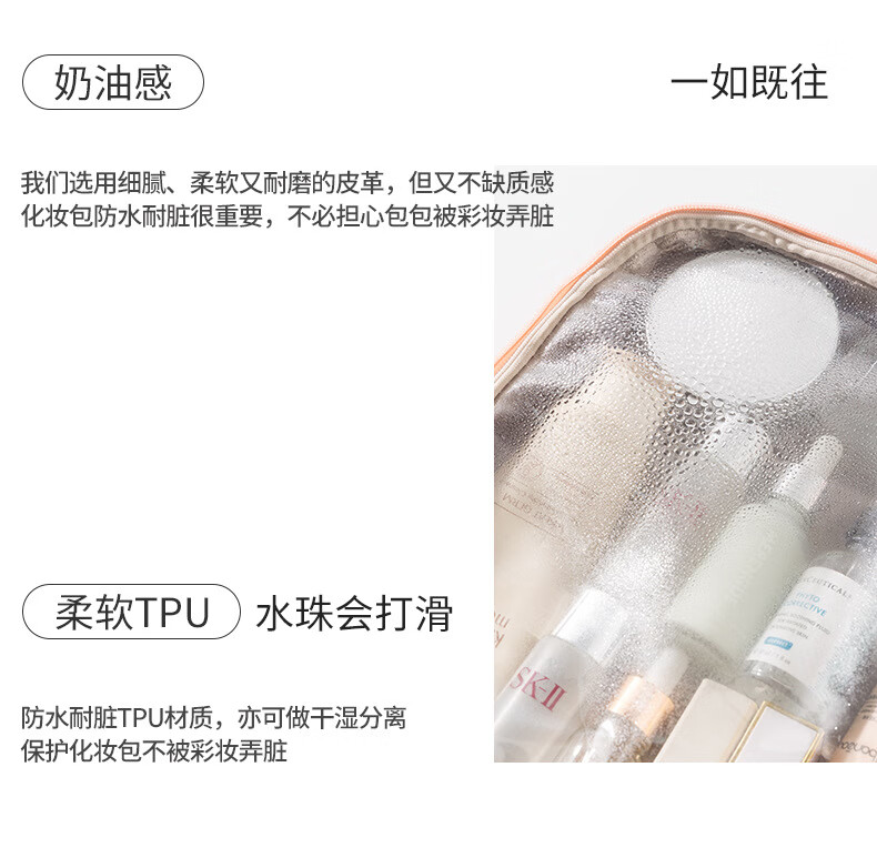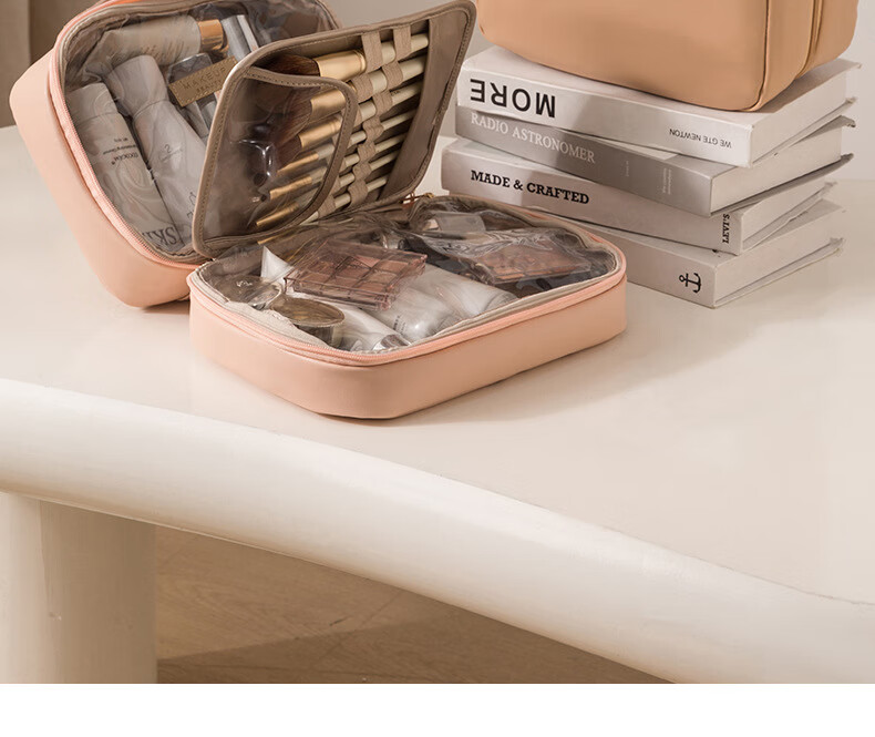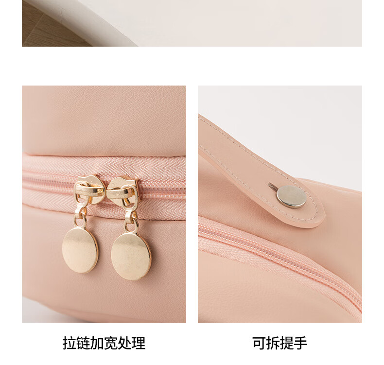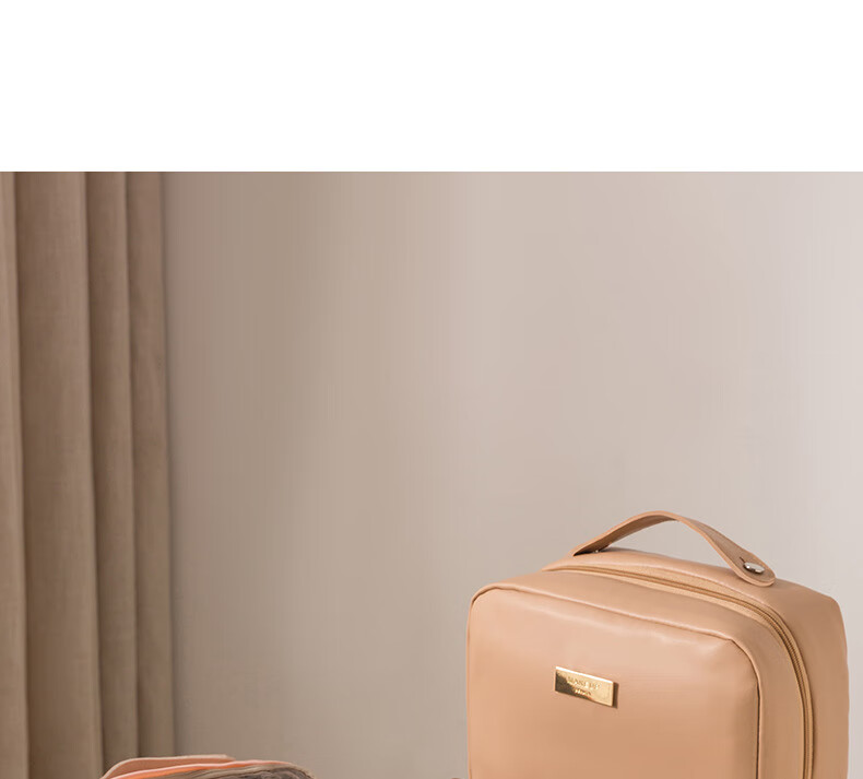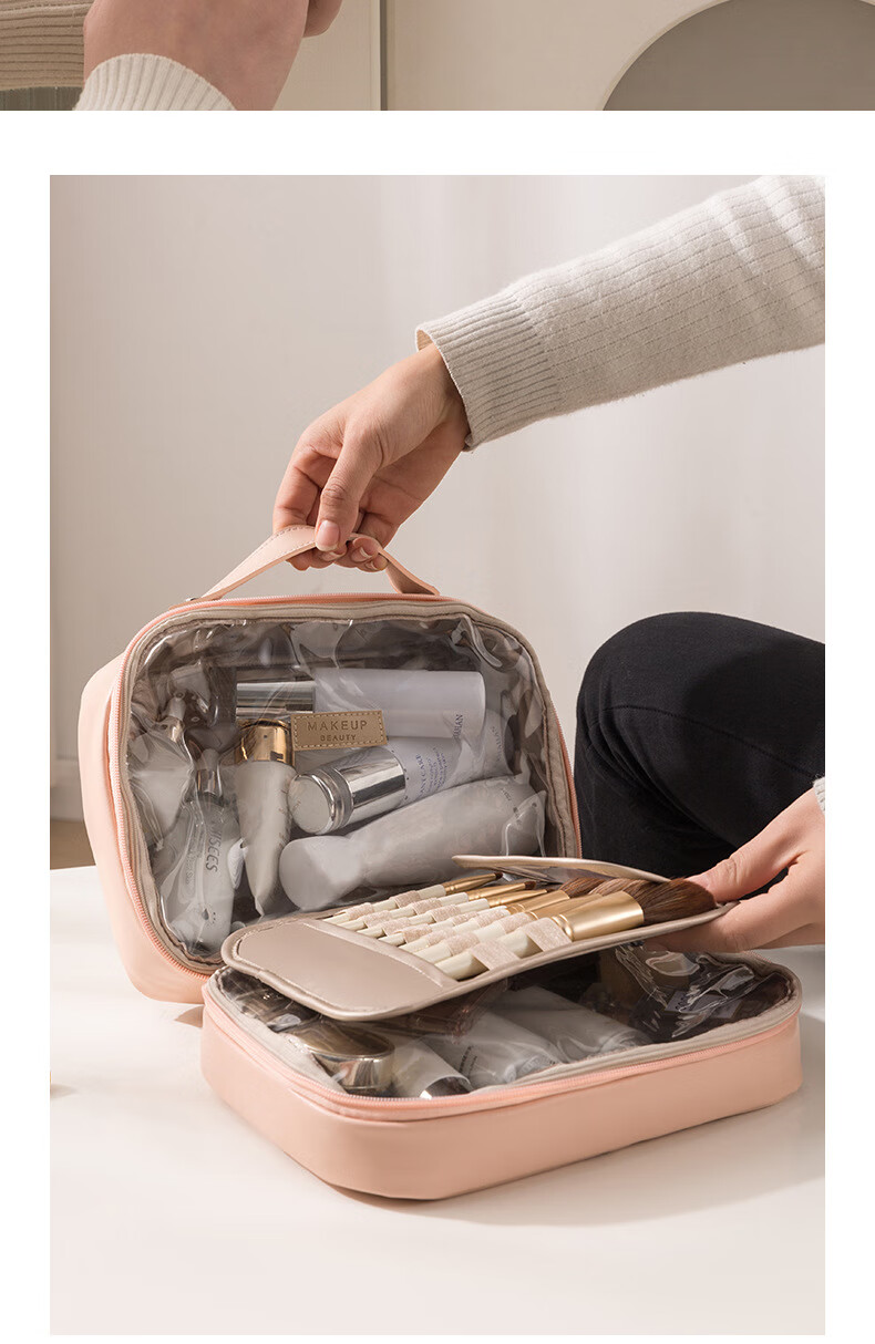 Ershanji portable large-capacity portable makeup brush storage bag high-end travel toiletry bag high-end cosmetic bag flip-top wooden peach color cosmetic bag