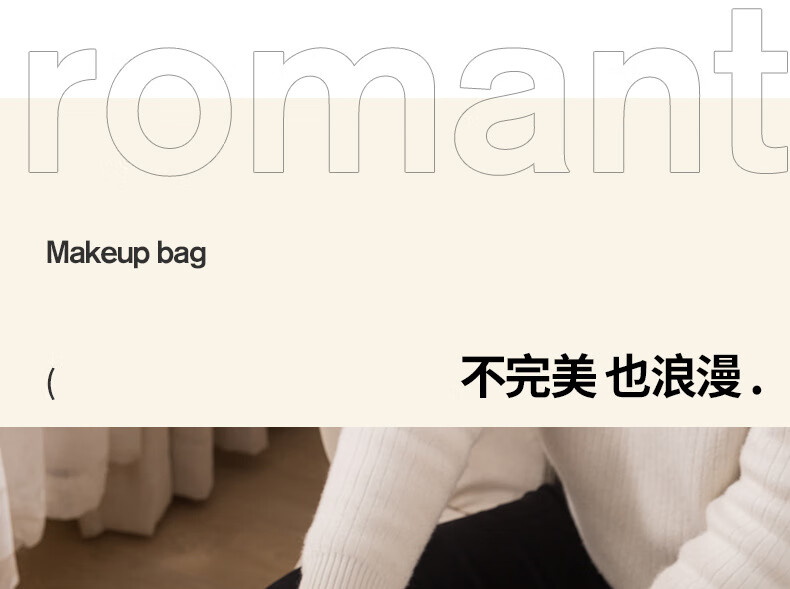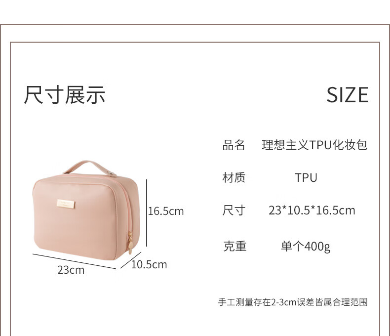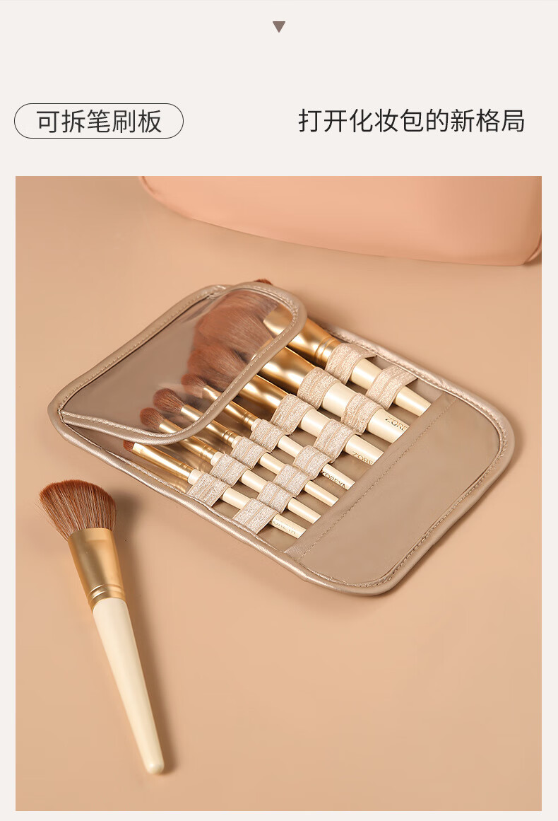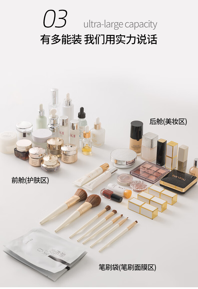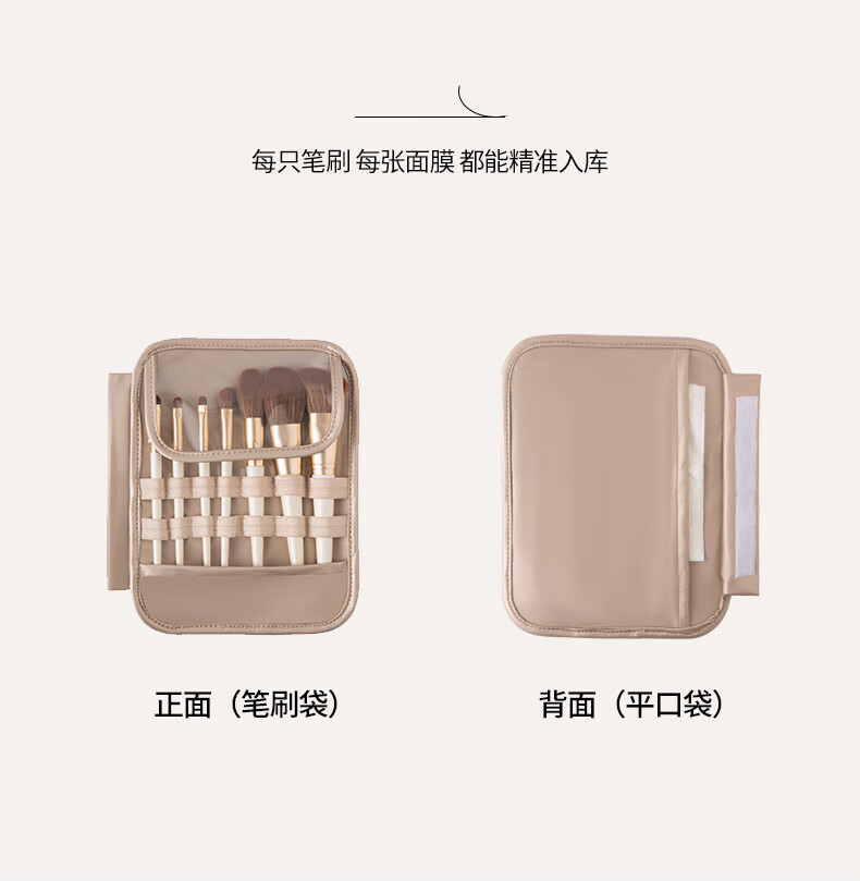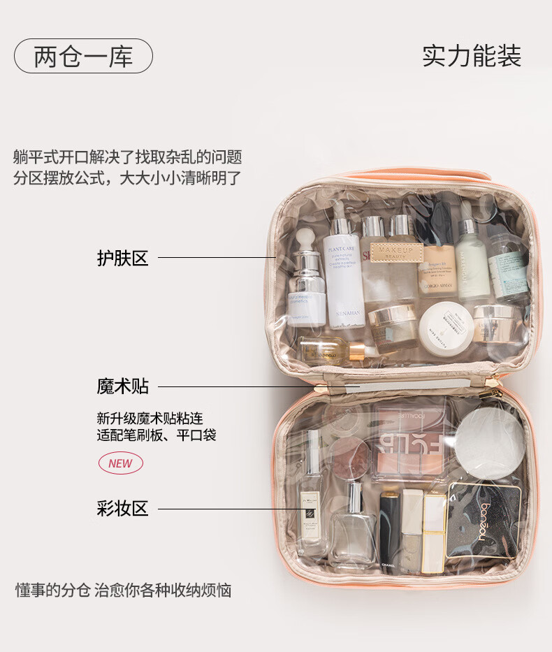 Ershanji portable large-capacity portable makeup brush storage bag high-end travel toiletry bag high-end cosmetic bag flip-top wooden peach color cosmetic bag