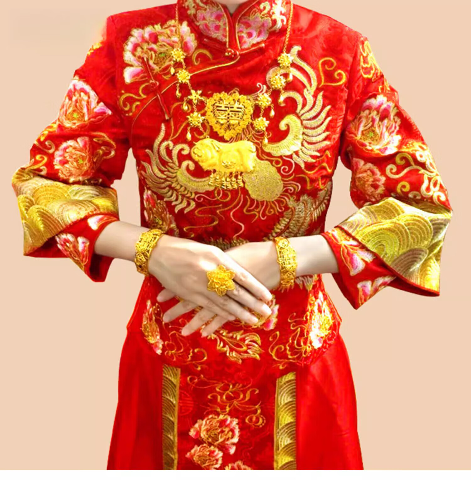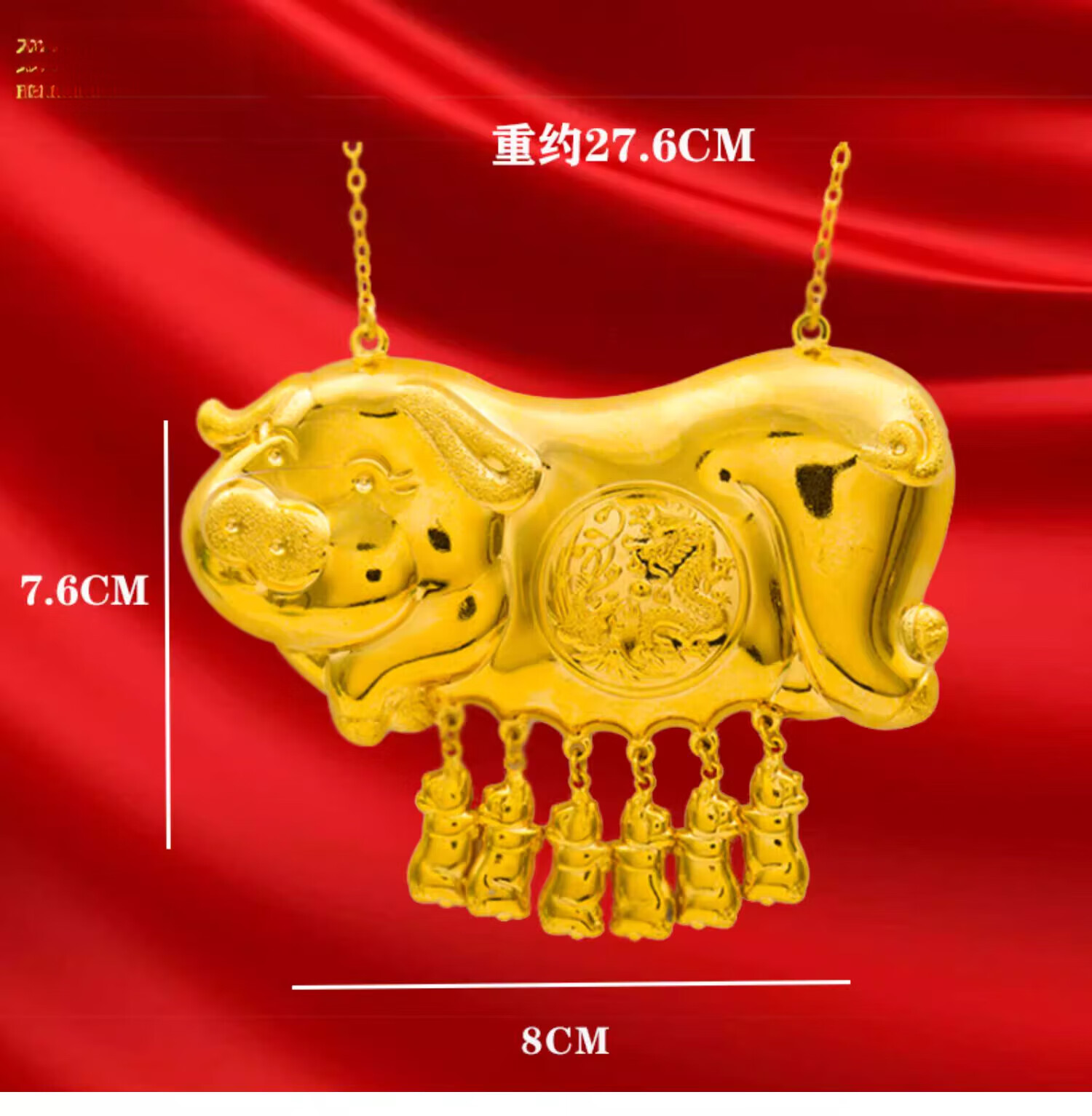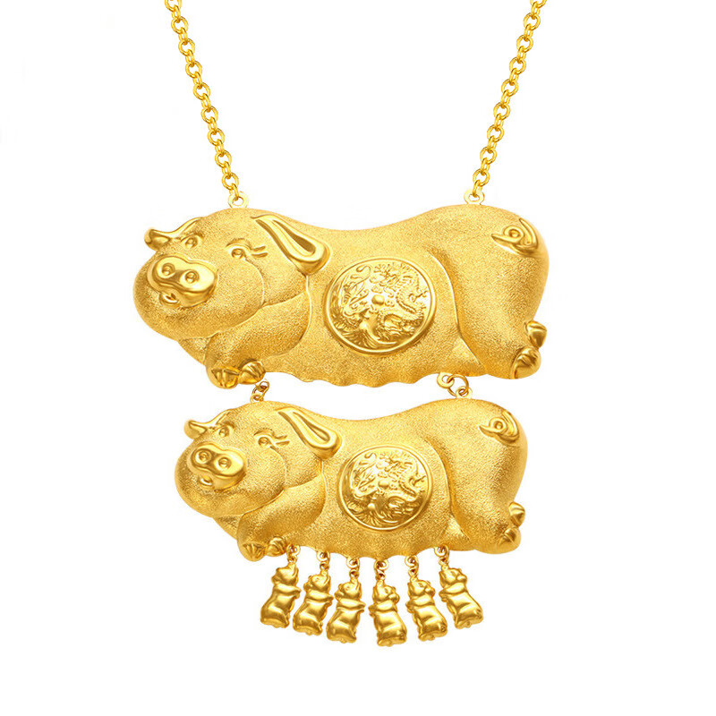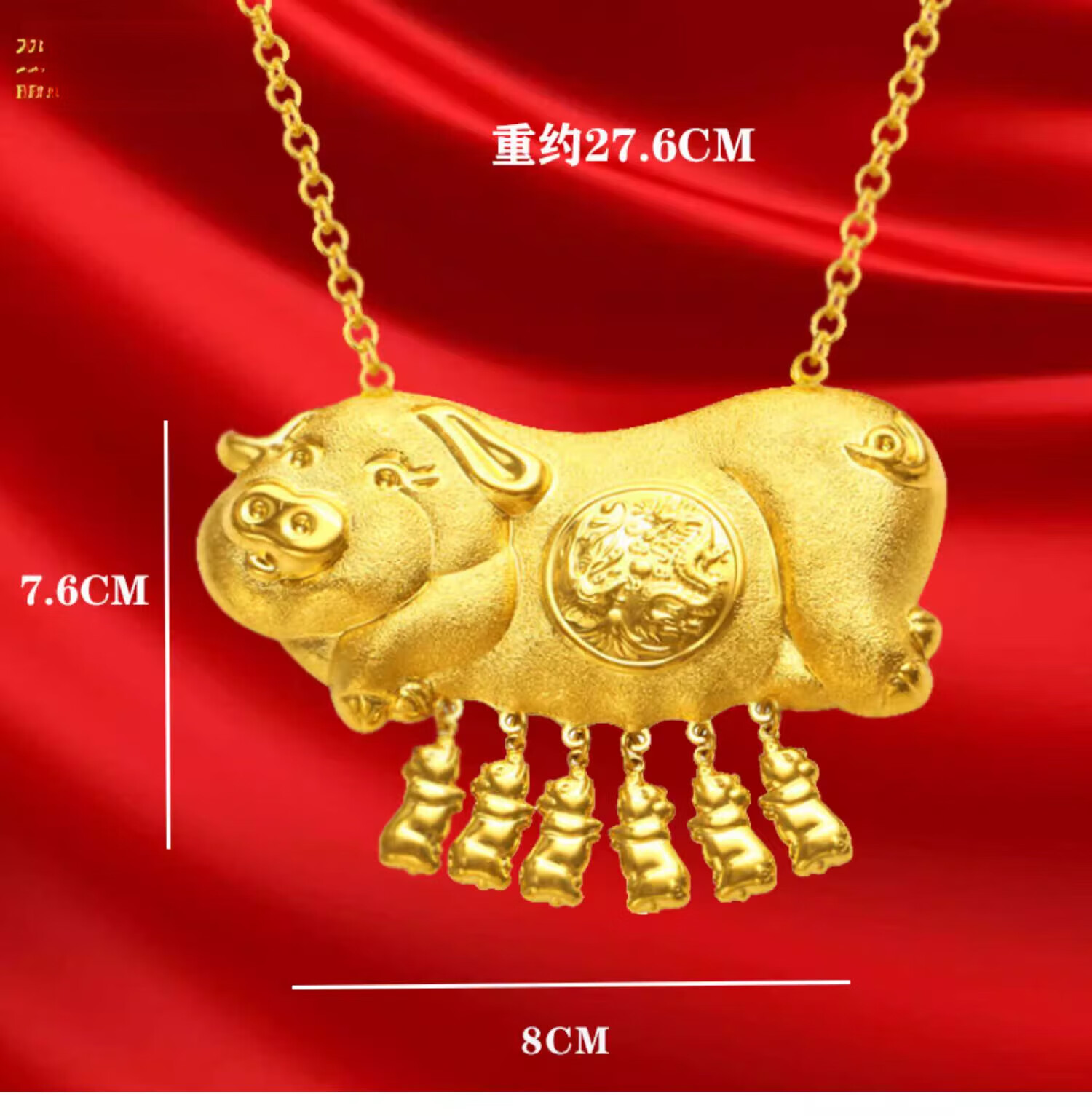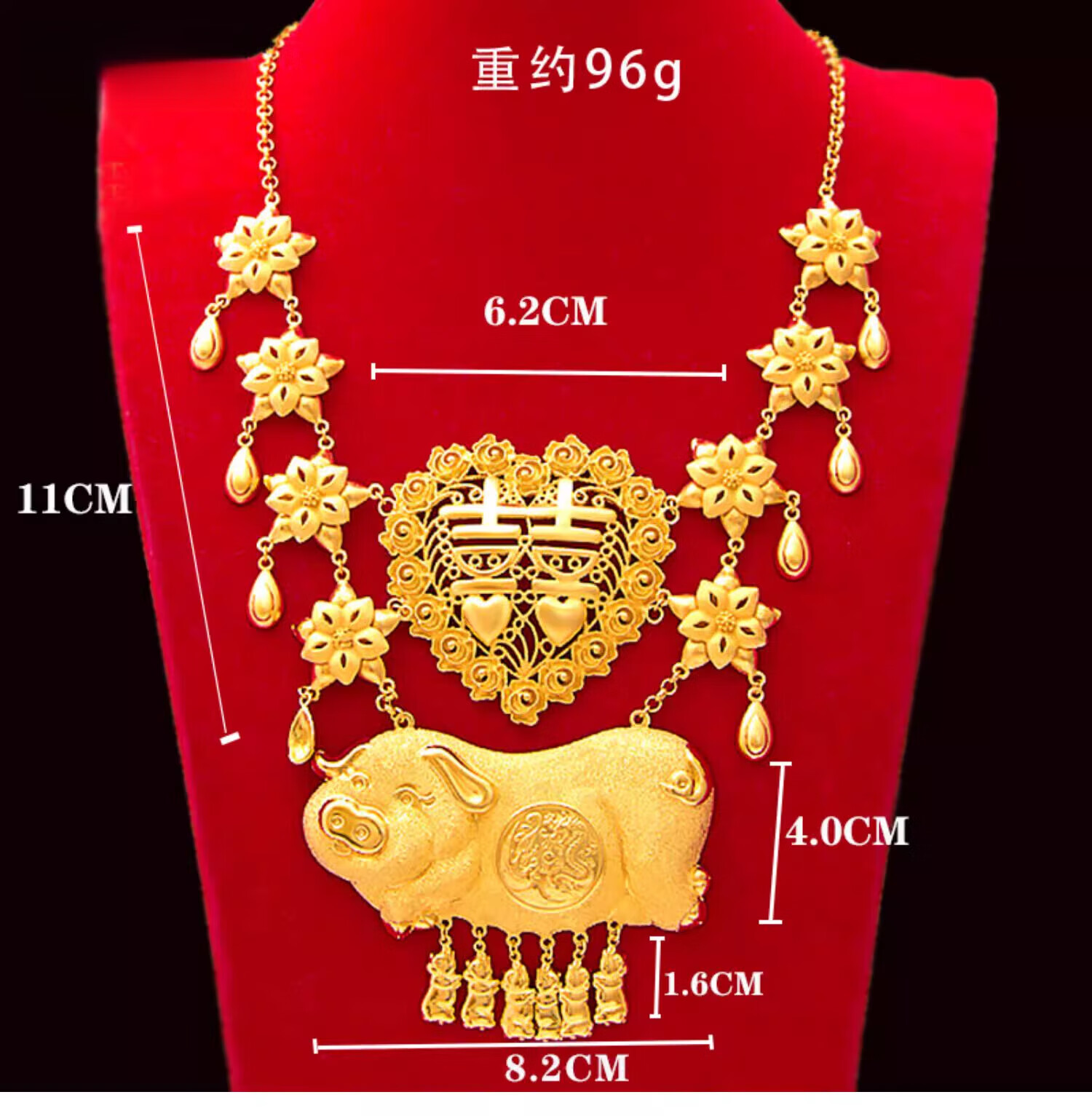 Shijun (SHIJUN) Sand Gold Pig Brand Necklace Women's Bridal Wedding Accessories Simulated Gold Dragon Phoenix Gold Pig Pendant Wedding Three Gold Jewelry Double Lucky Pig Necklace + Gift Box (Including Real Gold Gift Box)