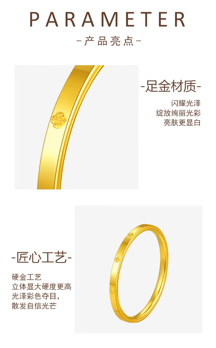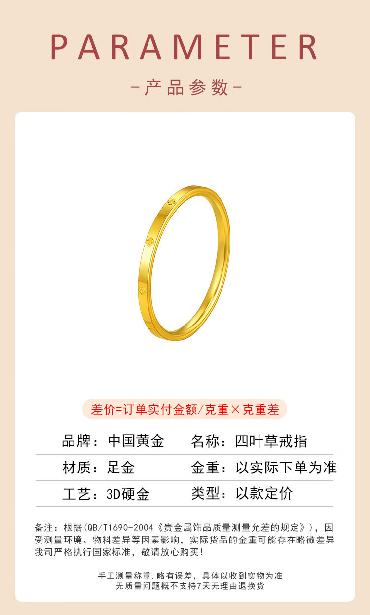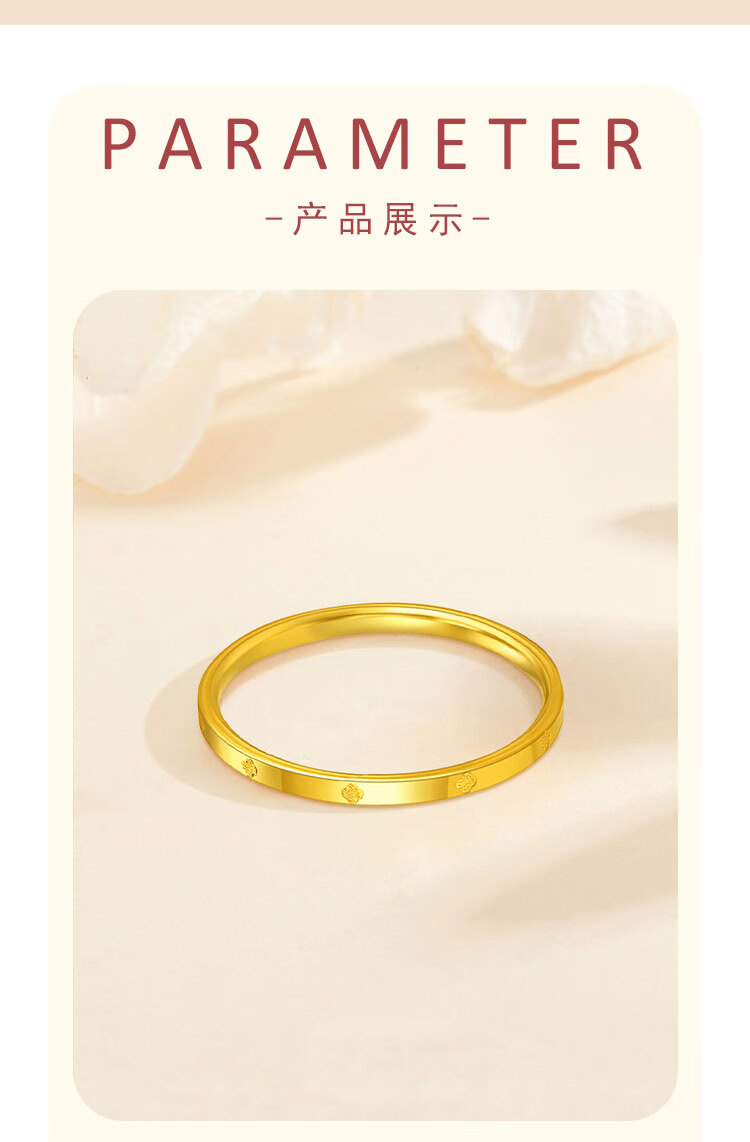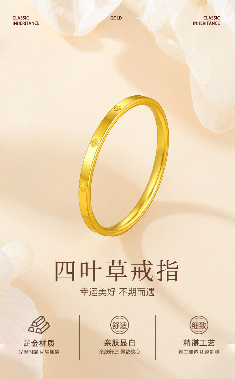 CHINA GOLD gold ring for women, pure gold lucky four-leaf clover solid ring, Valentine's Day birthday gift for girlfriend and lover, four-leaf clover ring, about 0.8g, circle number 16