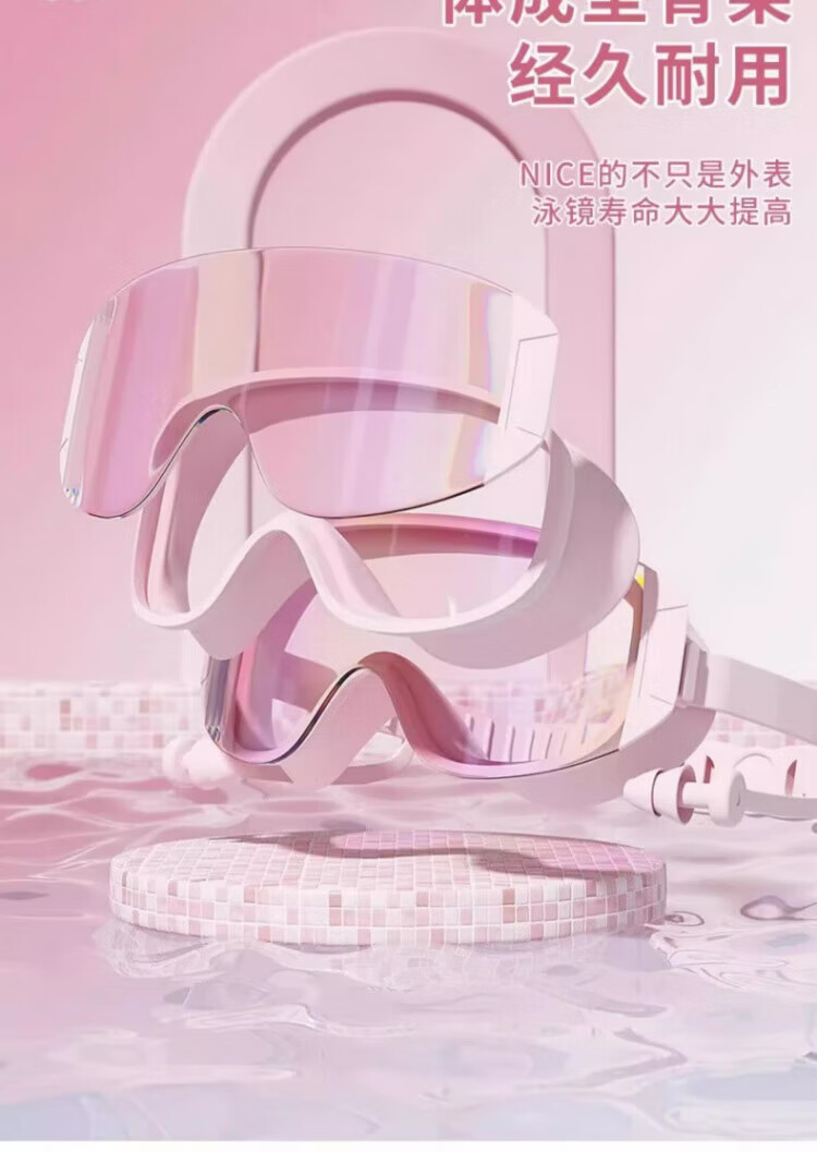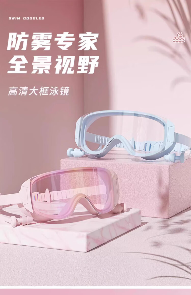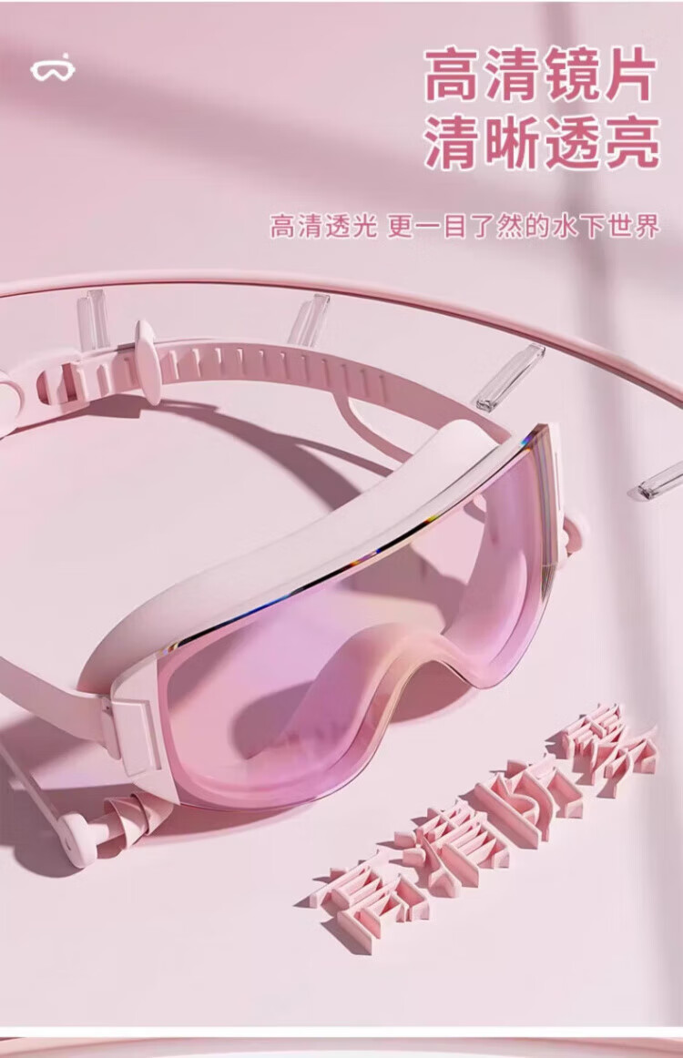 JCZS German brand children's swimming goggles high-definition waterproof and anti-fog swimming earplugs one-piece large frame high-definition parent-child boys and girls special for adults and children colorful powder conjoined ears