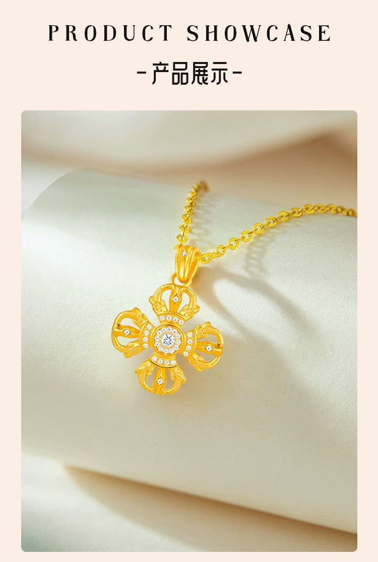 CHINA GOLD 18K gold necklace for women, versatile niche cross vajra pendant, Valentine's Day birthday gift for girlfriend and lover 18K cross vajra pendant with S925 chain