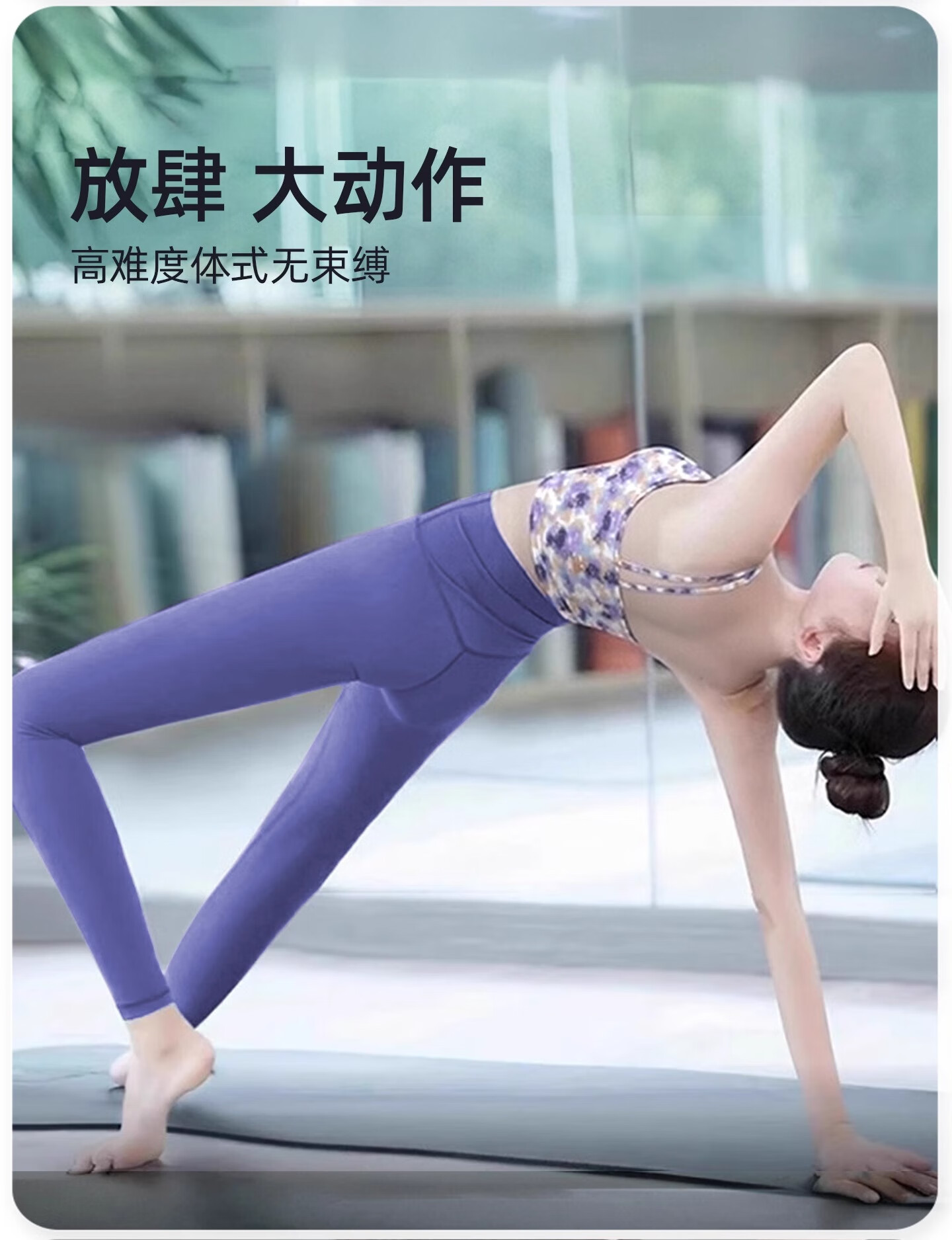Shuangxiu Chinese Style Yoga Clothes for Women New Tie Dye Printed Pilates Training Clothes with Chest Pads Running Sports Vest Set Summer Smudged Purple Top + Lavender Purple Pants Set XL 120-135