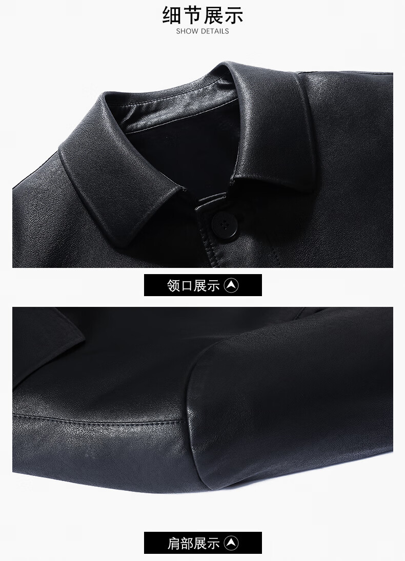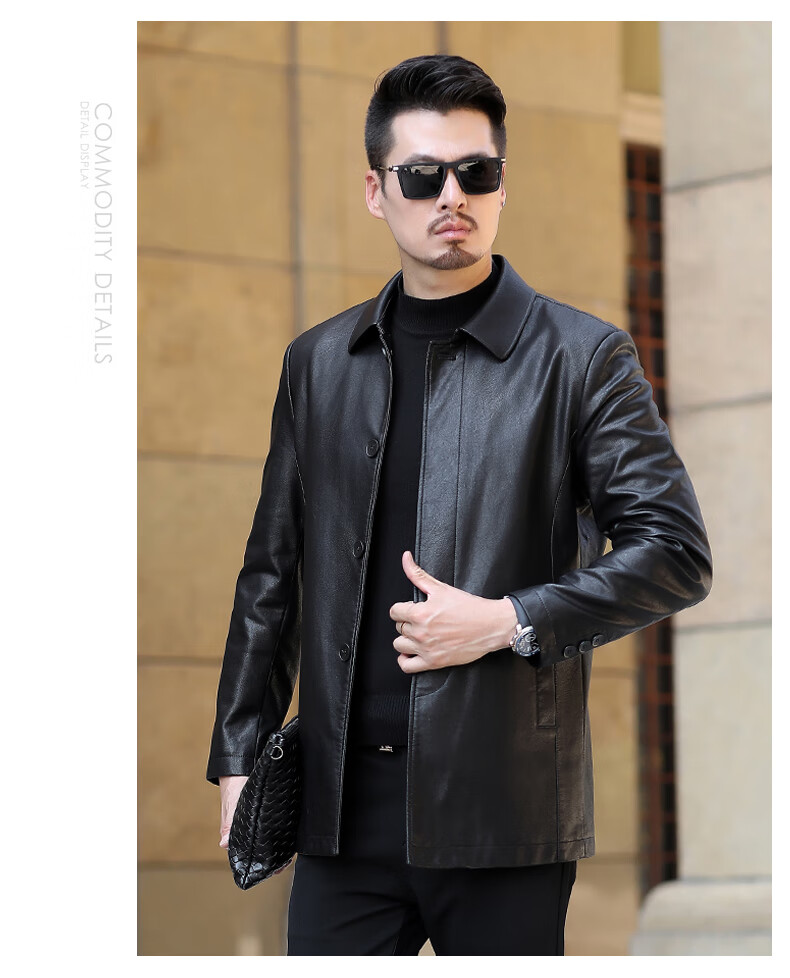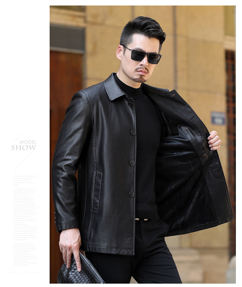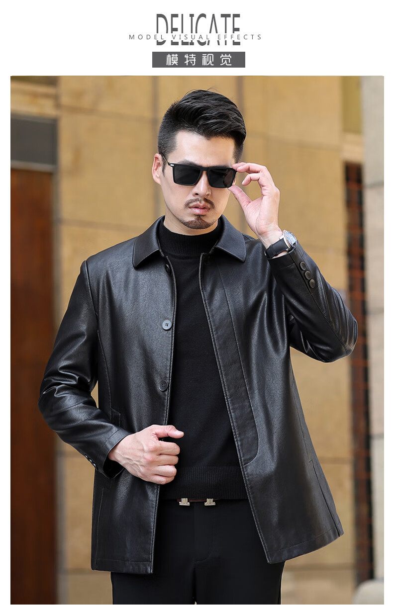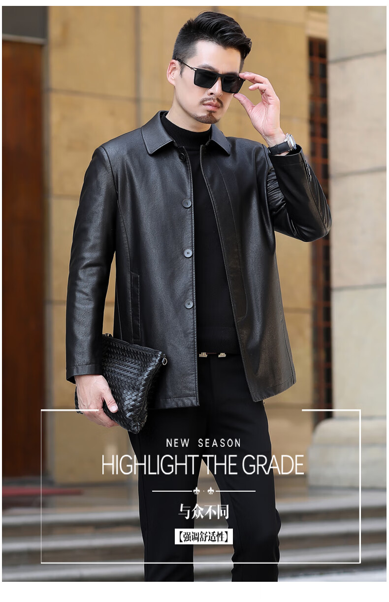 Hengyuanxiang middle-aged and elderly men's leather jacket spring and autumn thin 40-year-old 50-year-old dad winter velvet thickened leather jacket men's 9907 black thin XL 180 suitable for 130 to 150 Jin Jin equals 0.5 kg