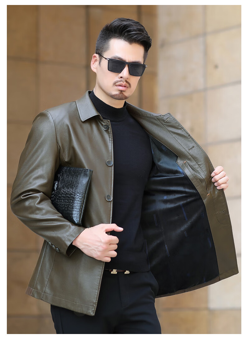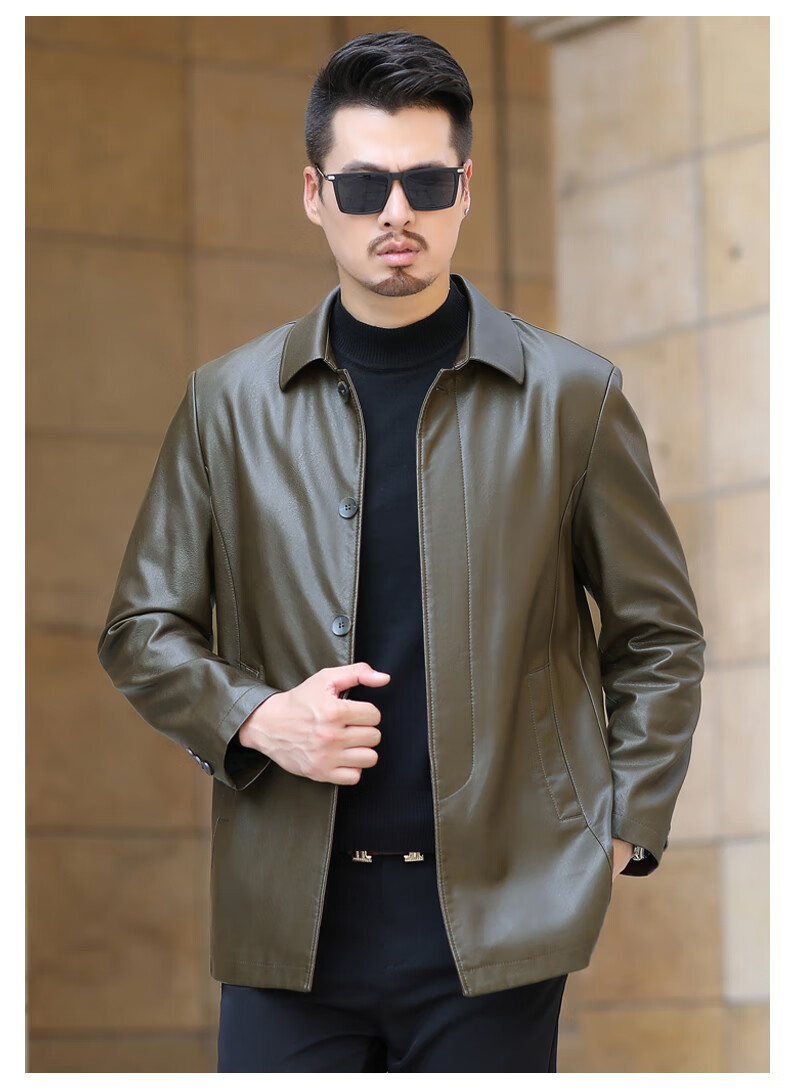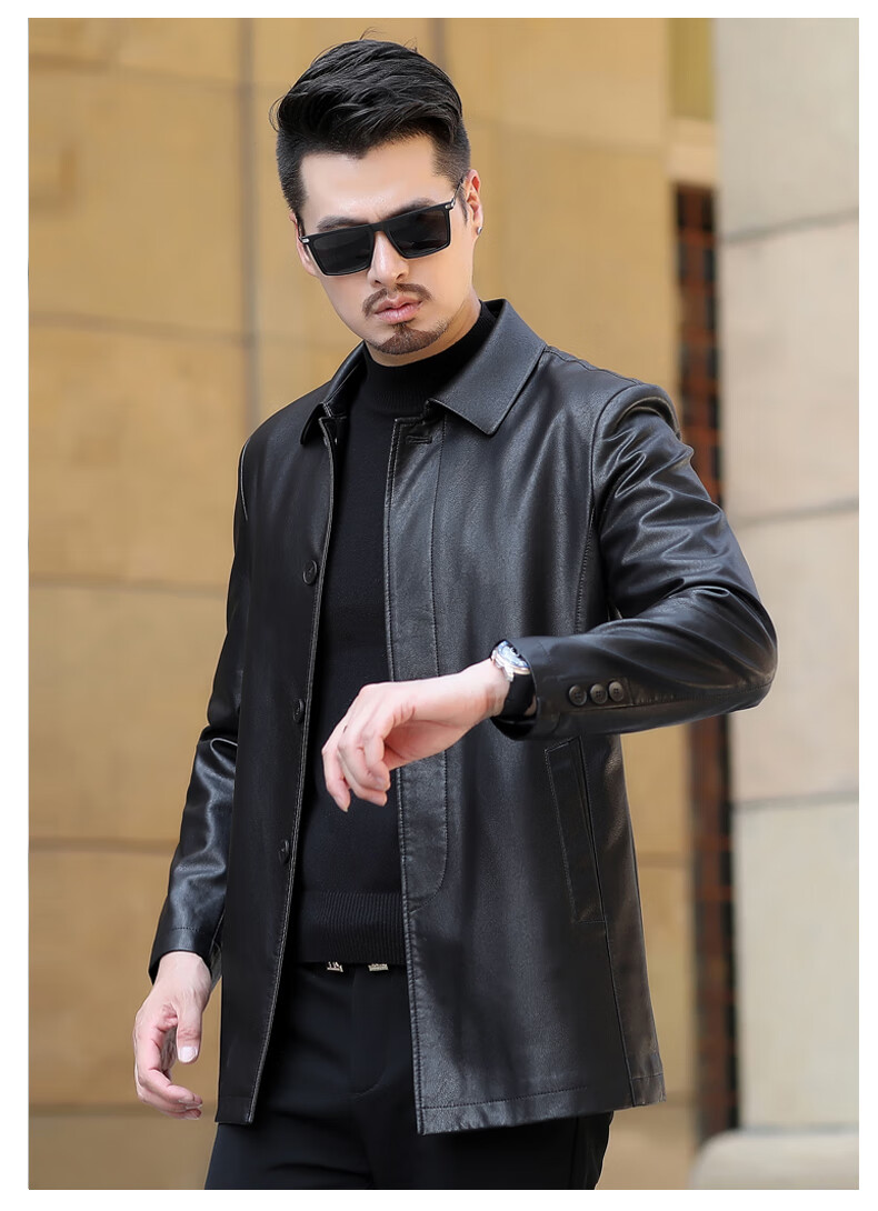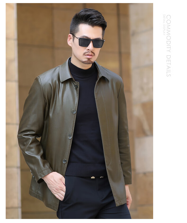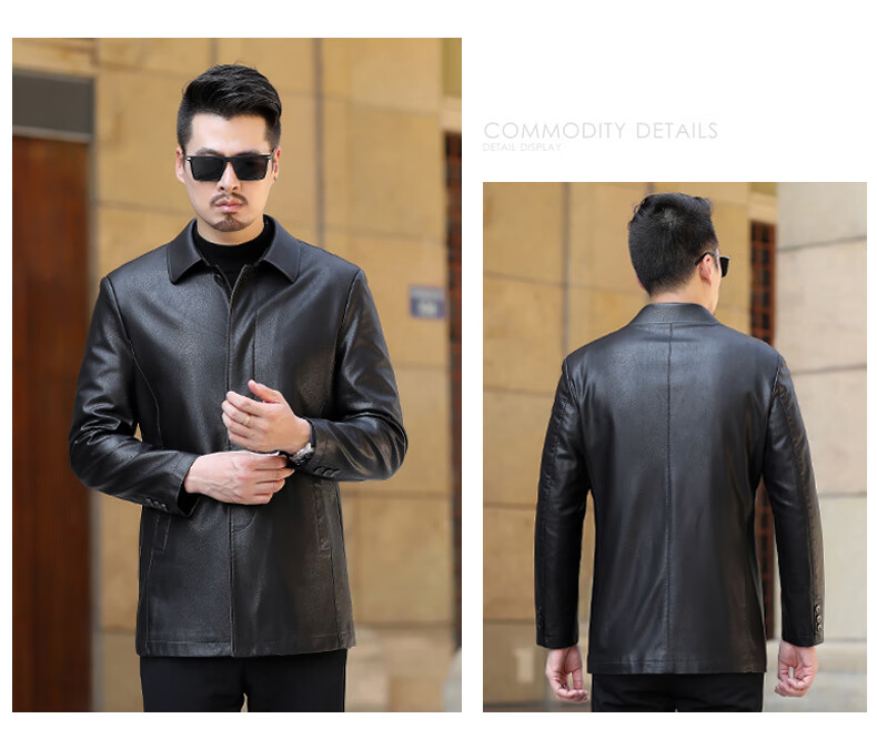 Hengyuanxiang middle-aged and elderly men's leather jacket spring and autumn thin 40-year-old 50-year-old dad winter velvet thickened leather jacket men's 9907 black thin XL 180 suitable for 130 to 150 Jin Jin equals 0.5 kg