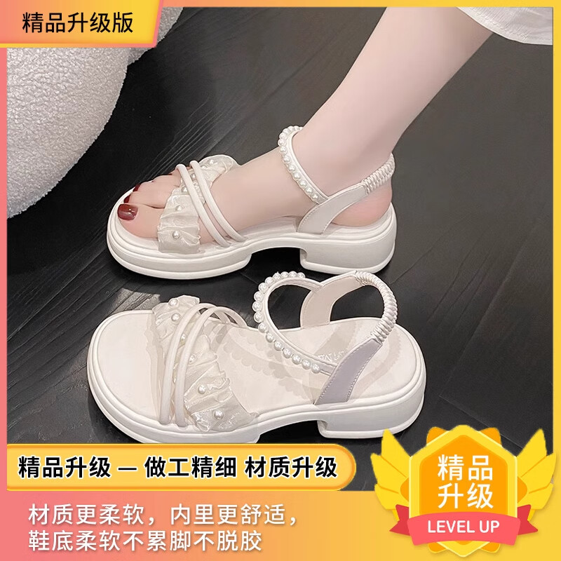 Girls Princess Sandals Summer New Soft Sole Non-Slip Breathable Children's Shoes Beach Shoes Elementary School Students Summer 6 to 8 Beige Yizhou&YZ-555 28 Inner Length 17.8cm