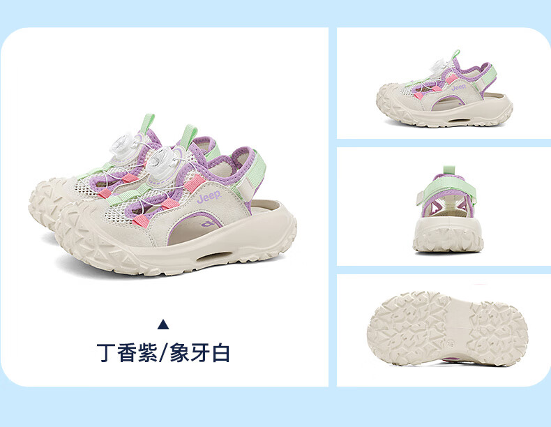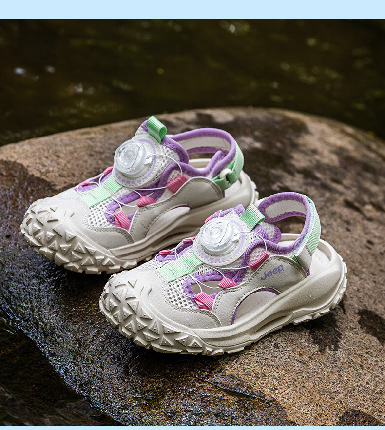 Children's shoes, children's sandals, boys' summer 2025 new breathable girls' soft-soled outdoor river shoes, sports beach shoes, lilac/ivory white 29, inner length of the shoe is about 19cm