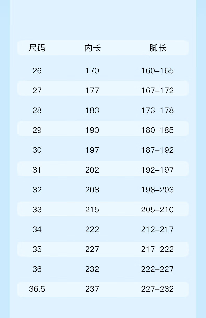 USA(inch) 28-30 30-32 32-34 34-38 38-42