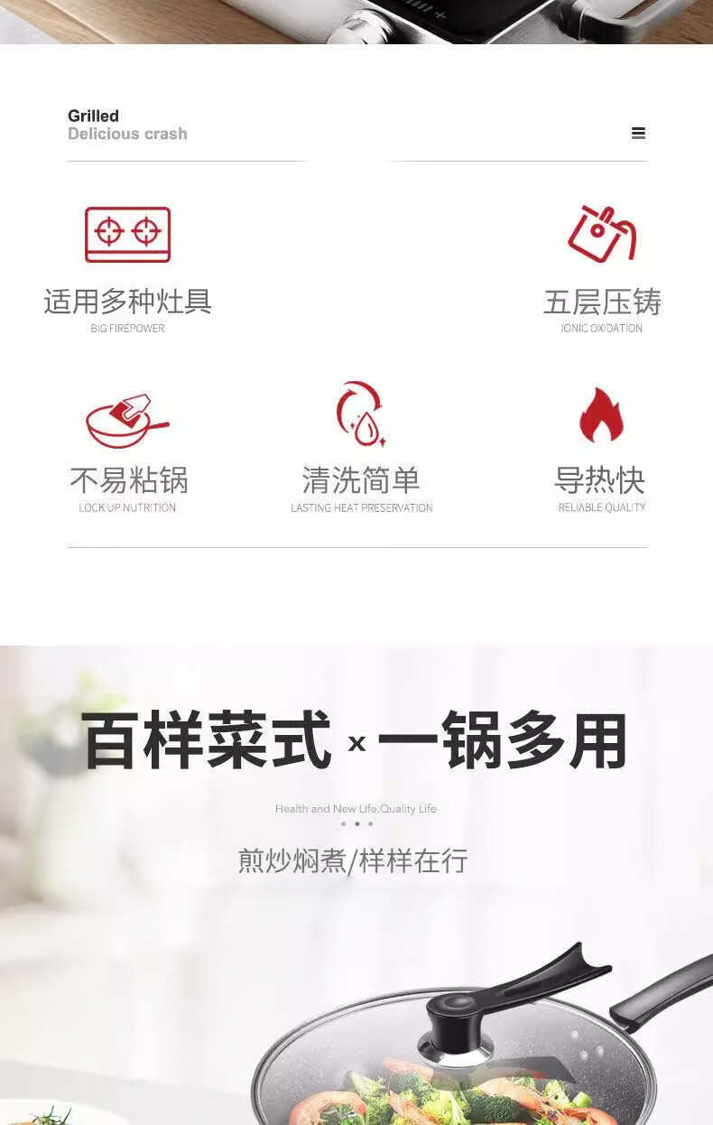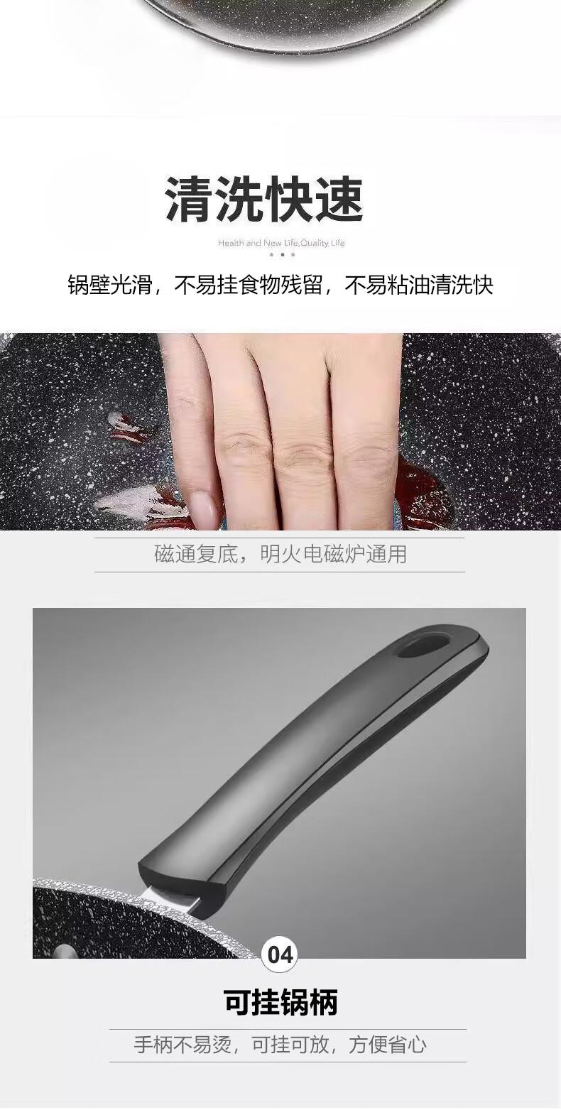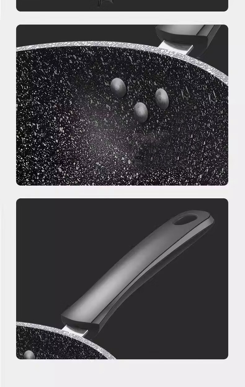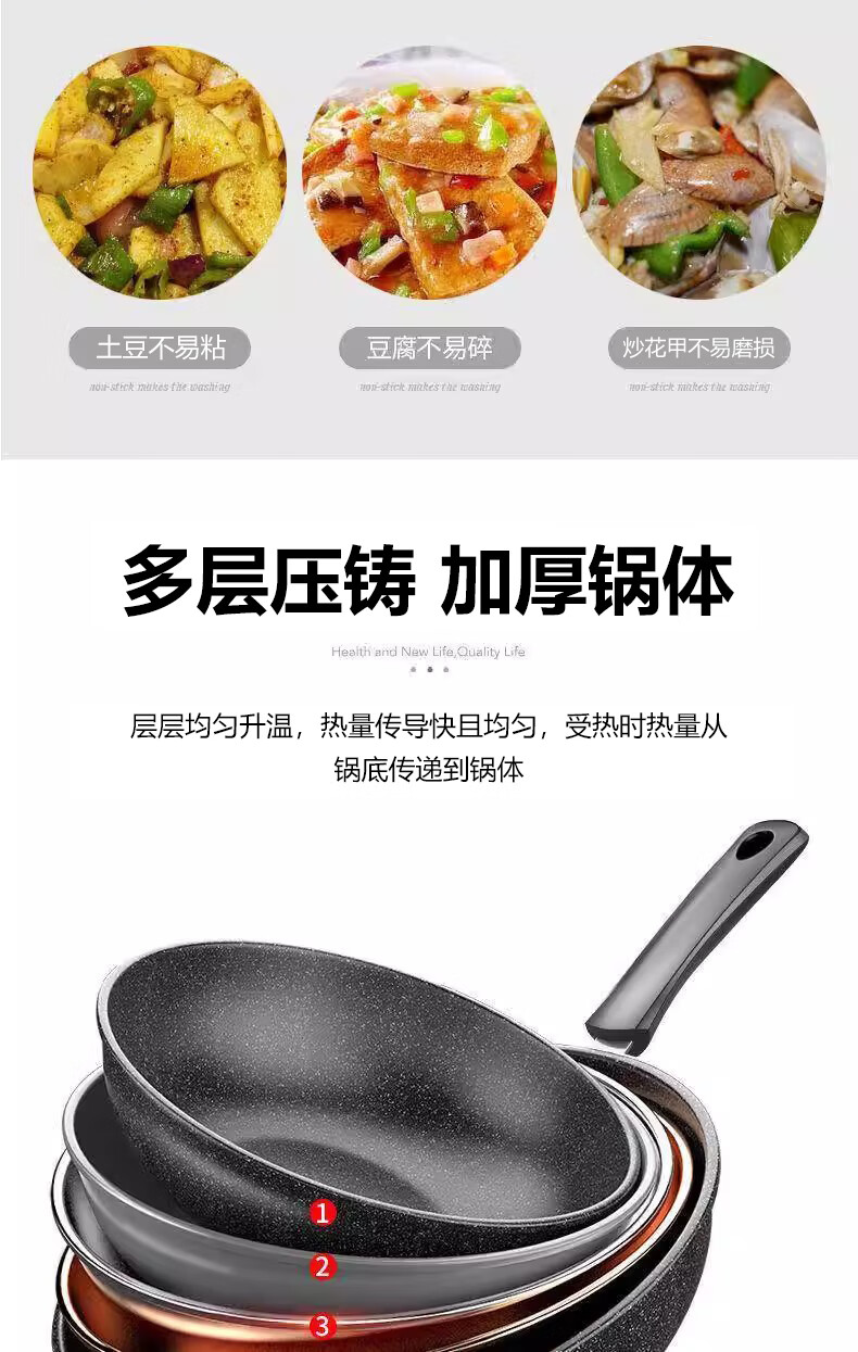 Wanjiaquan wok with lid, non-stick wheat rice stone color, induction cooker, gas stove, special frying small pot, household set, iron pot, wok + lid, free wooden spatula + sponge block 30cm