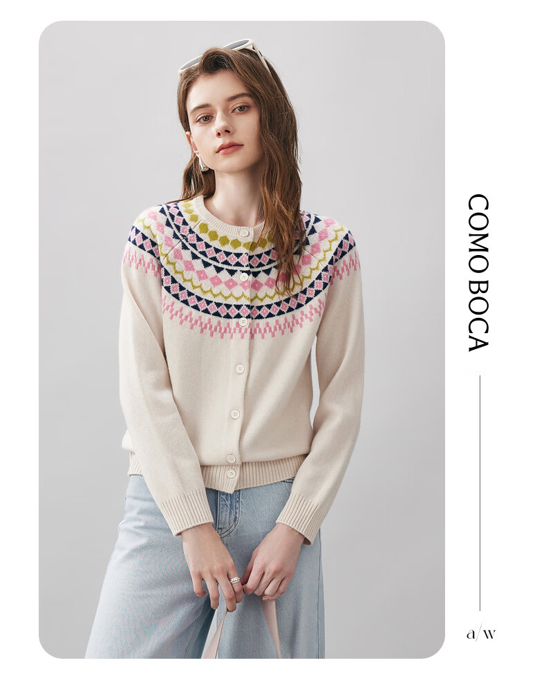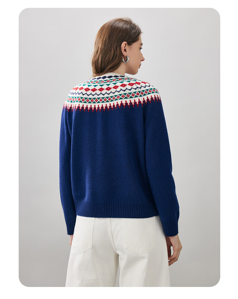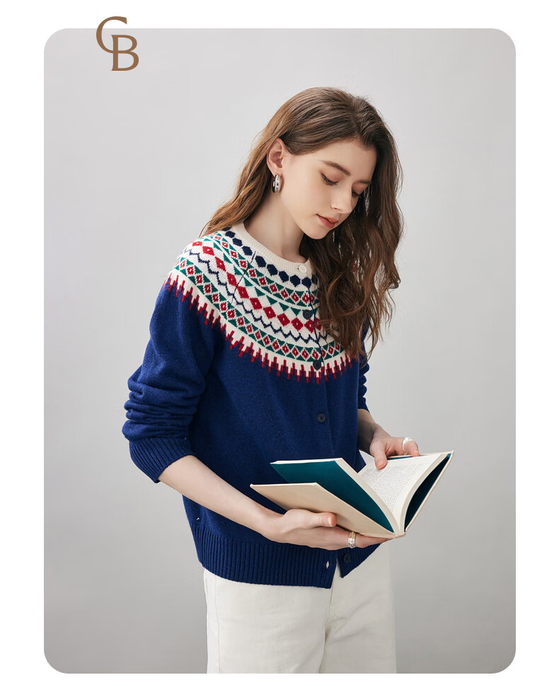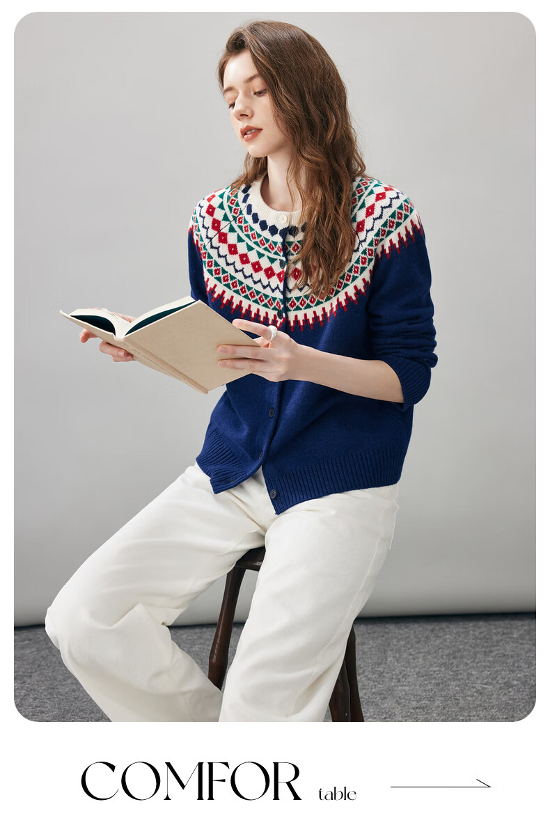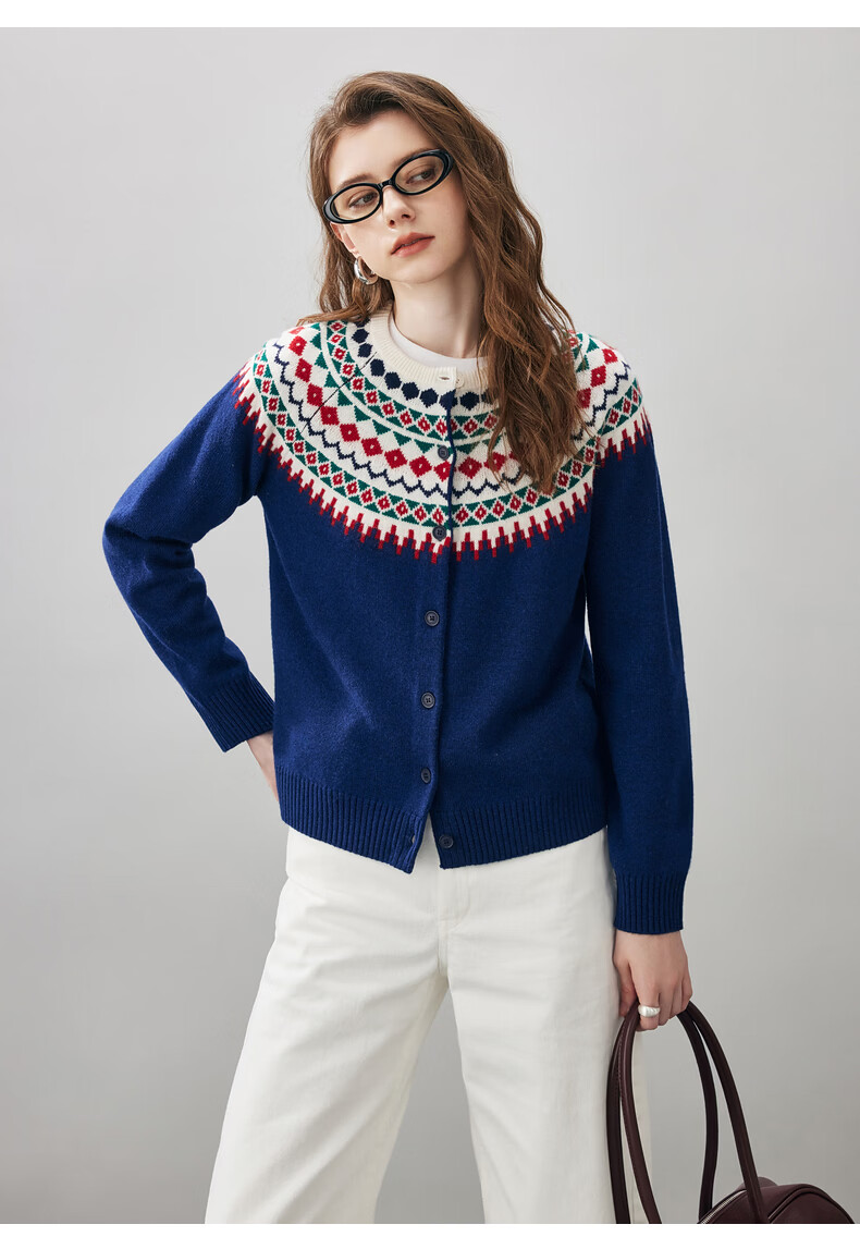 Comonboca 2025 autumn and winter new Fair Isle jacquard cardigan women's thickened cardigan coat loose knitted sweater navy blue L