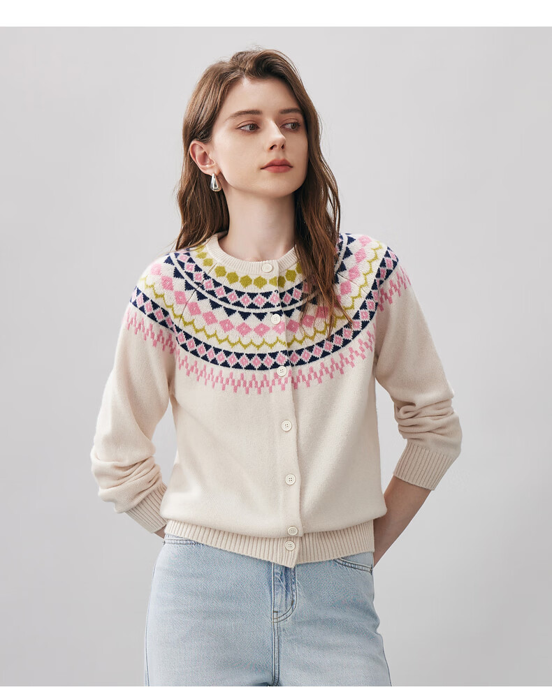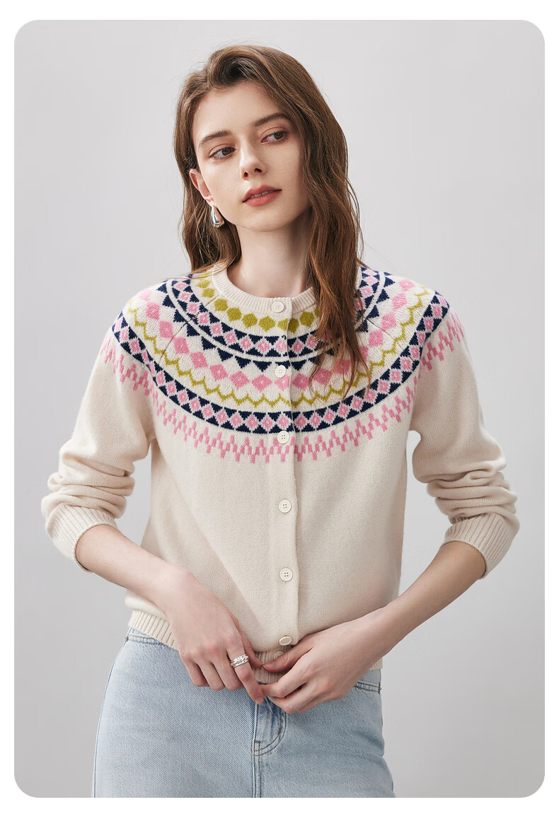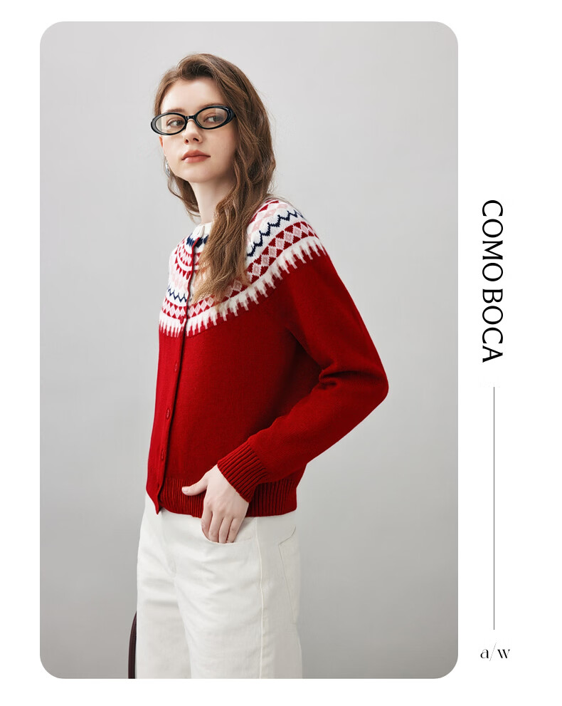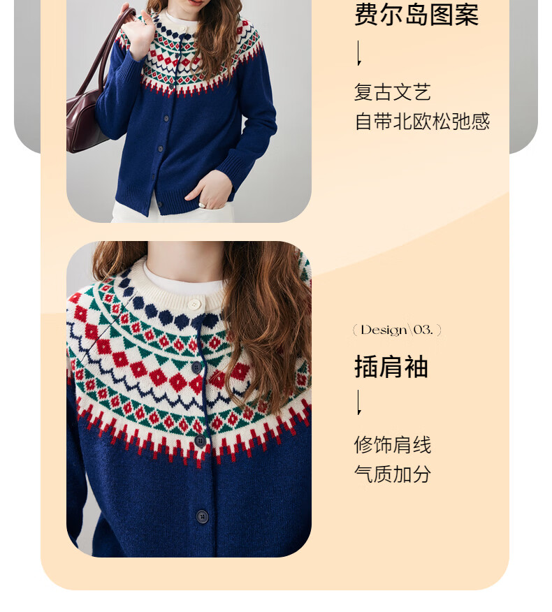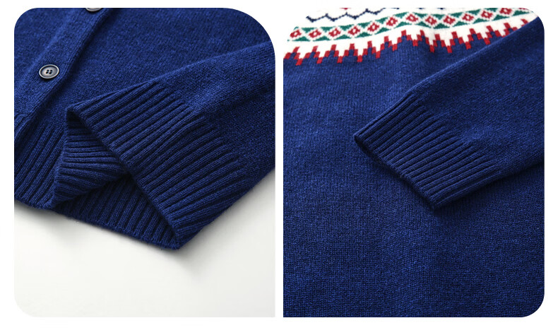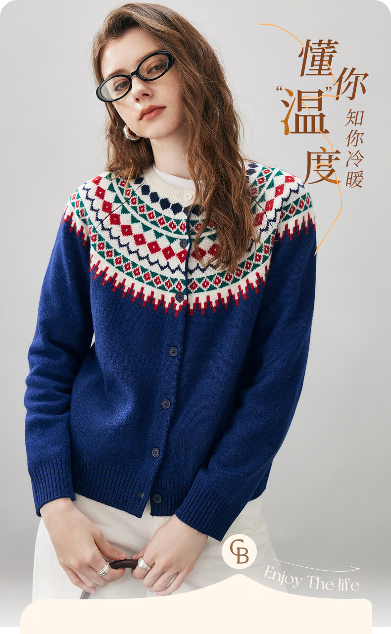 Comonboca 2025 autumn and winter new Fair Isle jacquard cardigan women's thickened cardigan coat loose knitted sweater navy blue L