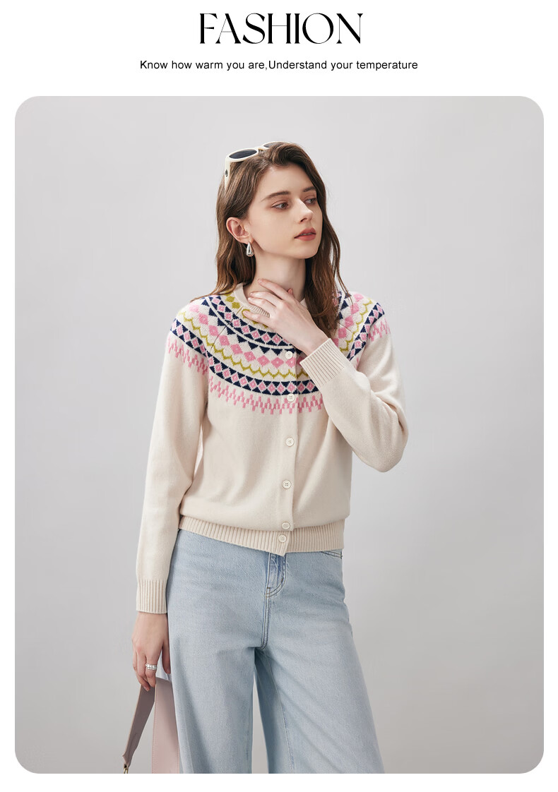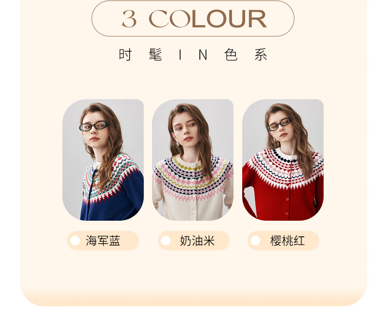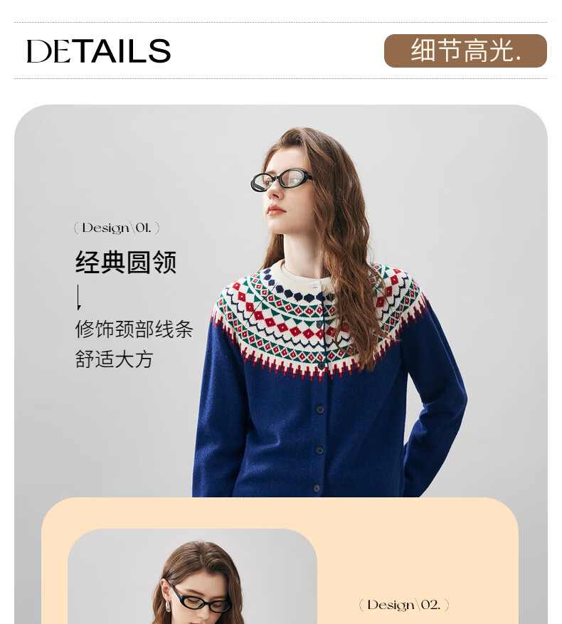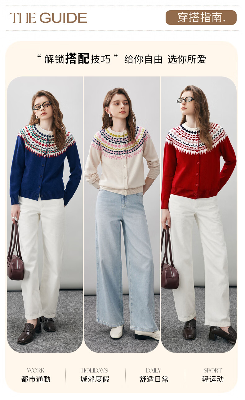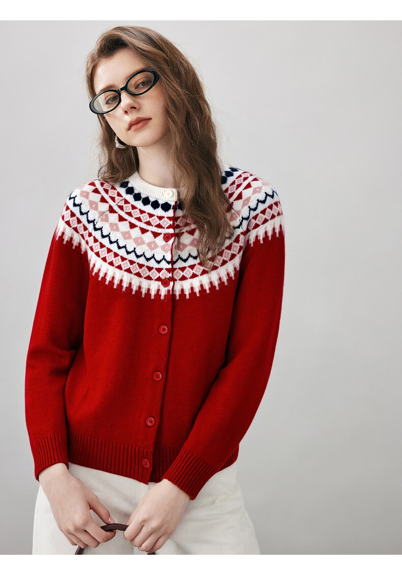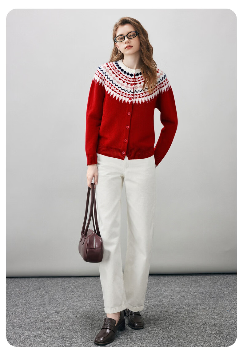 Comonboca 2025 autumn and winter new Fair Isle jacquard cardigan women's thickened cardigan coat loose knitted sweater navy blue L