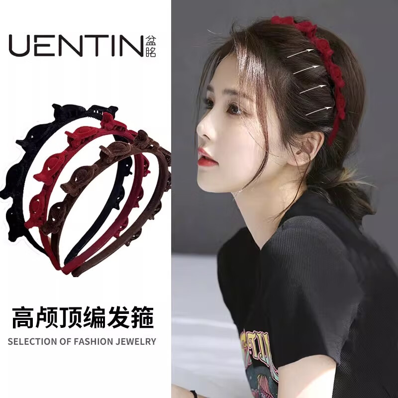 New high-end flocked braided hair hoop textured bangs hairpin side hairpins for women with broken hair artifact headband headwear black flocked braided hair hoop