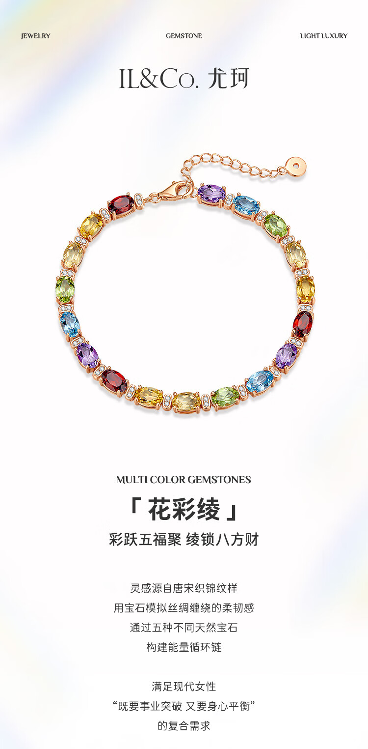 IL&CO Youke Huacai Ling Natural Color Gemstone Bracelet Women's Silver Tourmaline Bracelet Birthday Valentine's Day Gift for Girlfriend Gift Box Lucky Tourmaline Multi-Color Tourmaline Bracelet