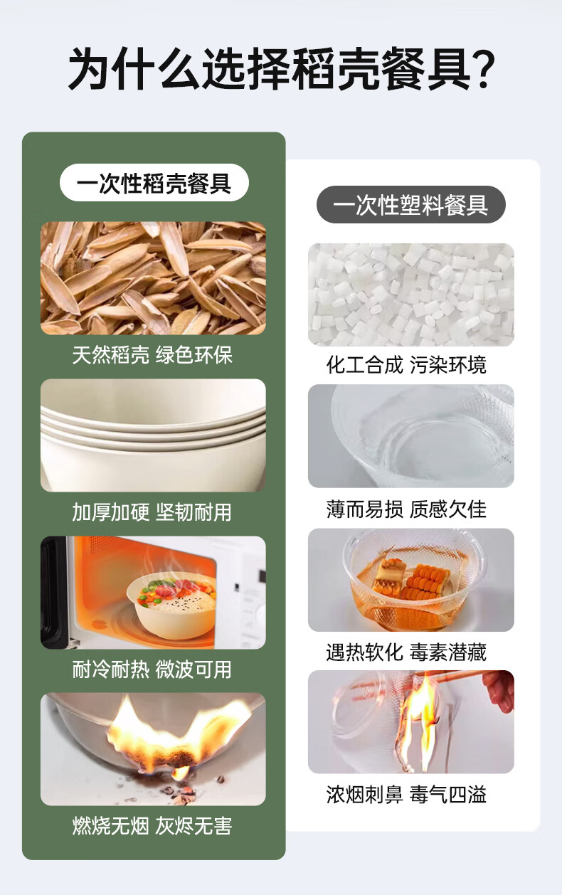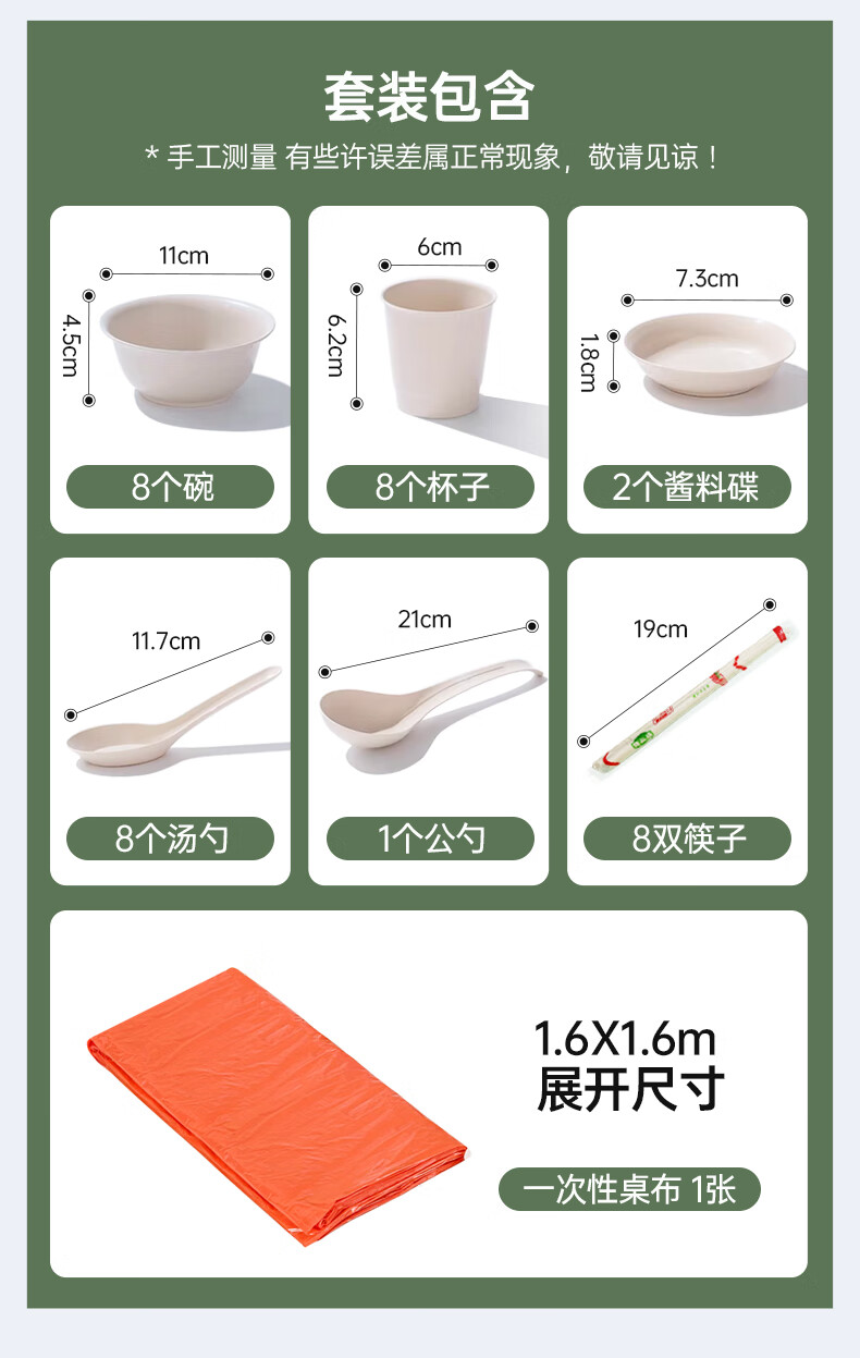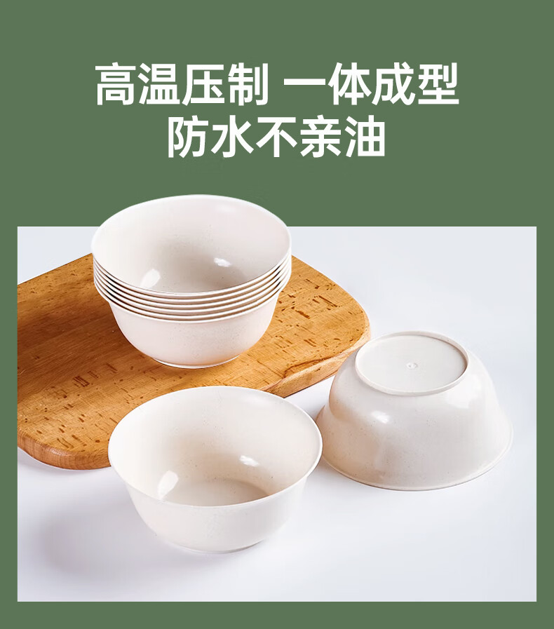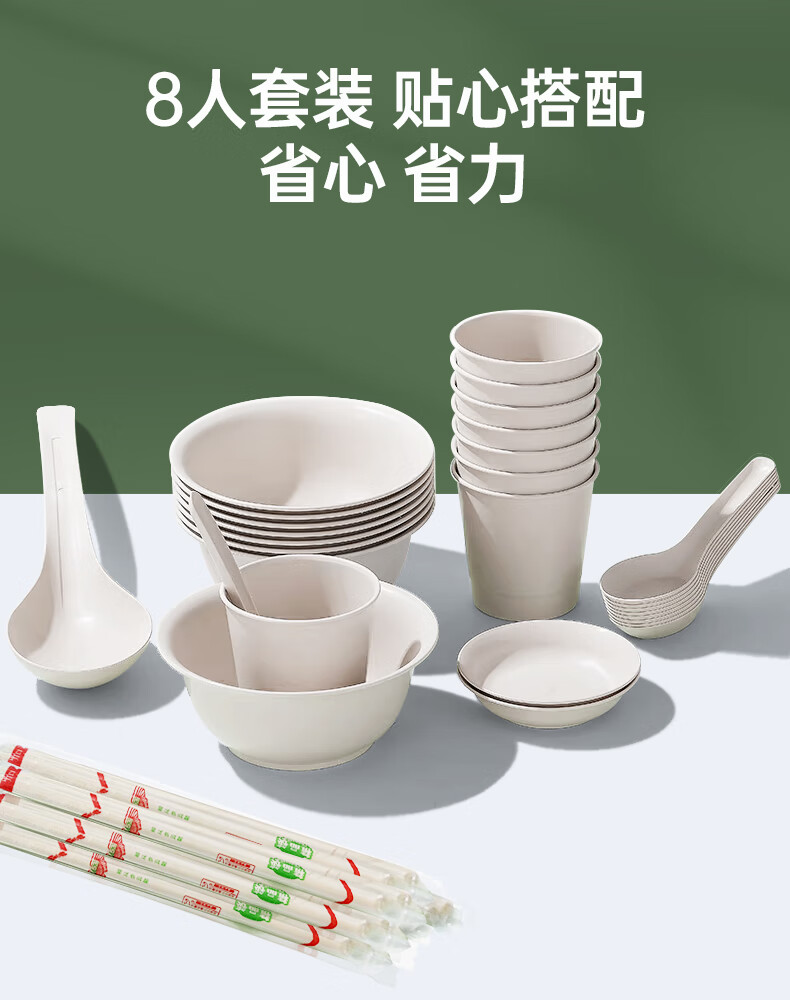 GRAREY rice husk disposable tableware bowls, chopsticks and spoon set barbecue catering banquet four-piece set food grade rice husk tableware 8 people set/bag*3 packaging