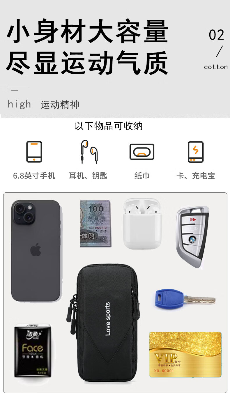 Running mobile phone bag mobile phone bag unisex outdoor running fitness arm sleeve multifunctional sports wrist bag storage hand dark gray - extra large 7.2 inches, dual-purpose arm and wrist